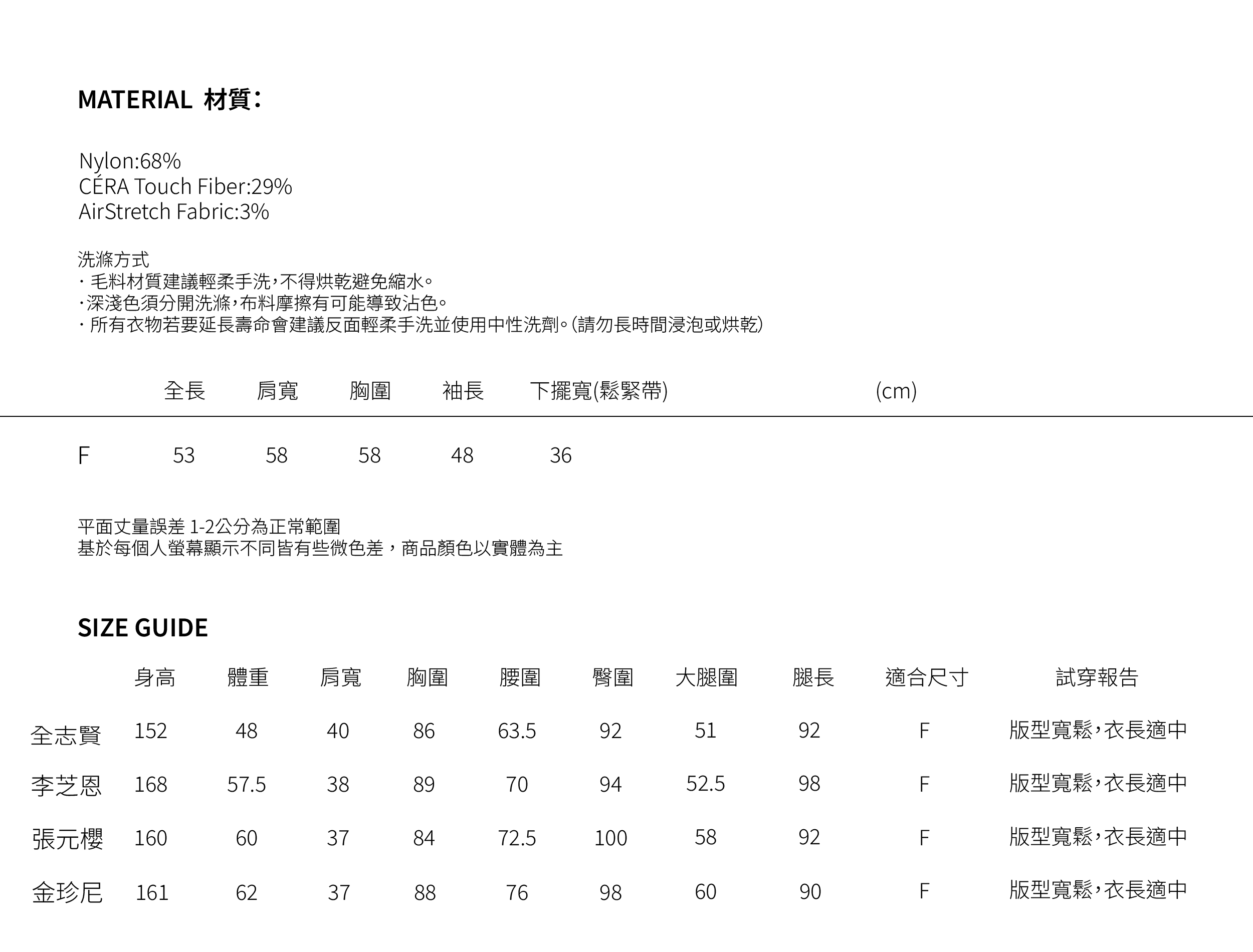 告訴我們您的身型資訊,我們請身材與您相仿的同事傳給您實穿照!讓您選擇時尚更加精準💕