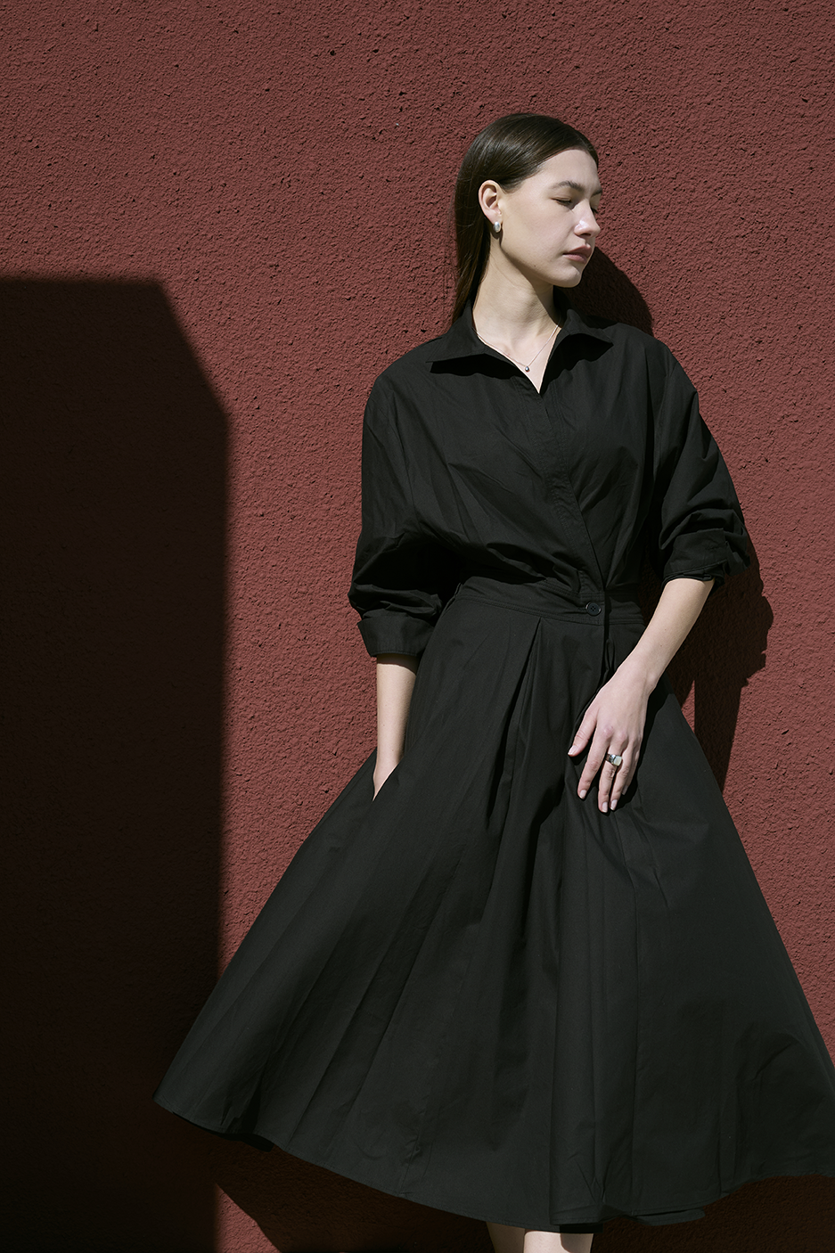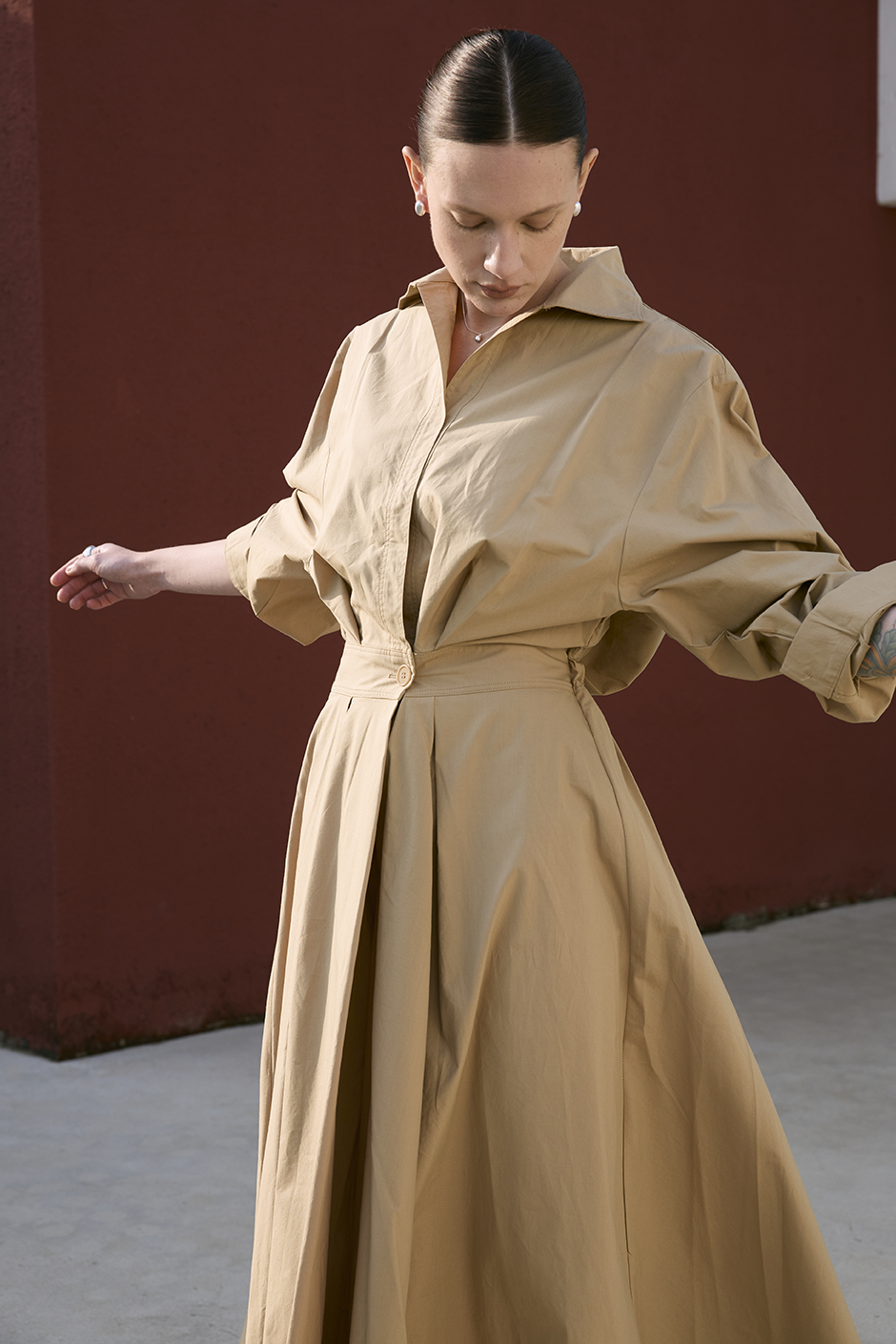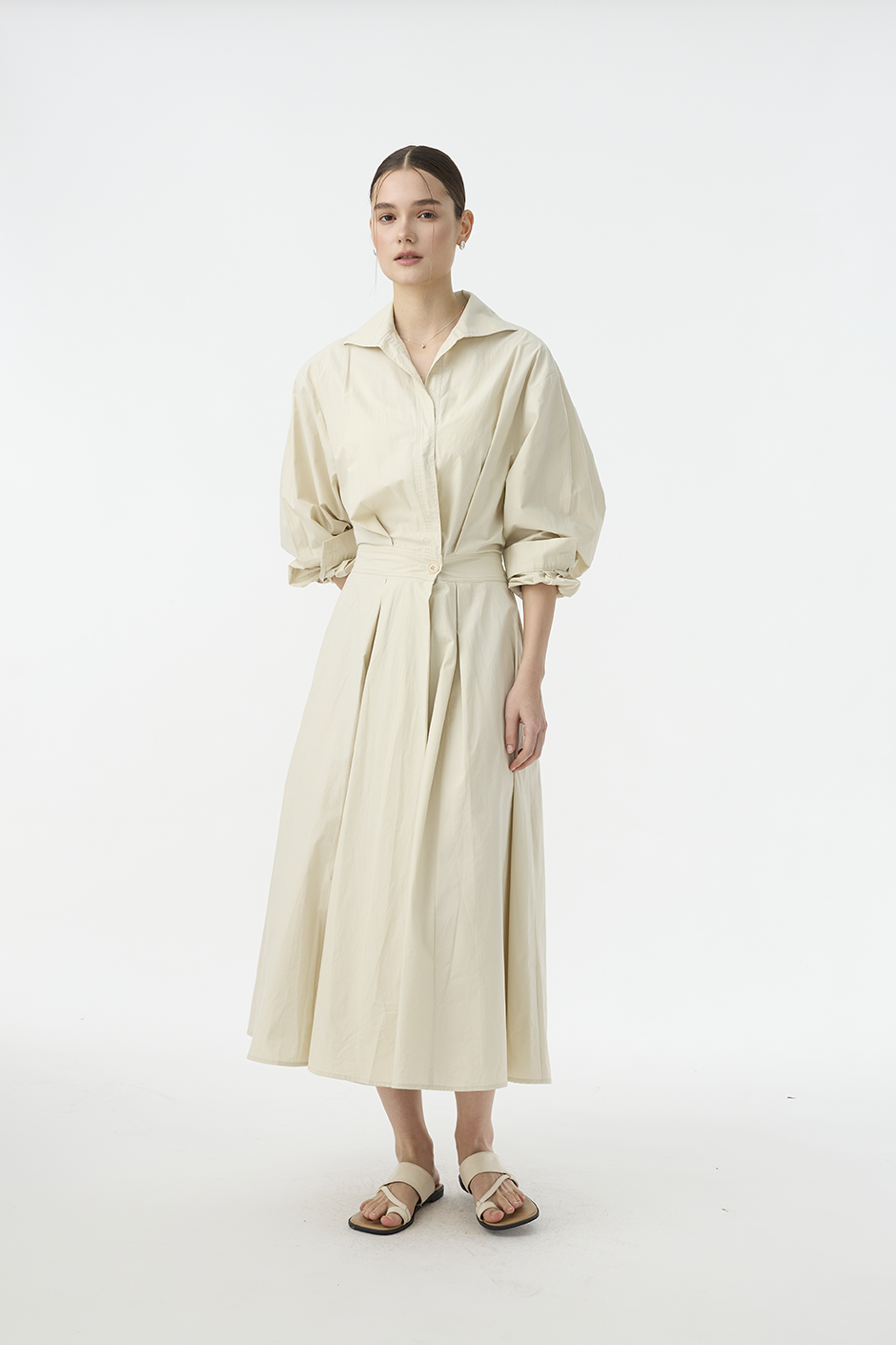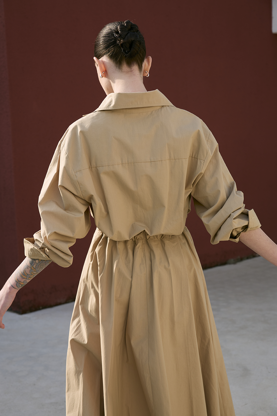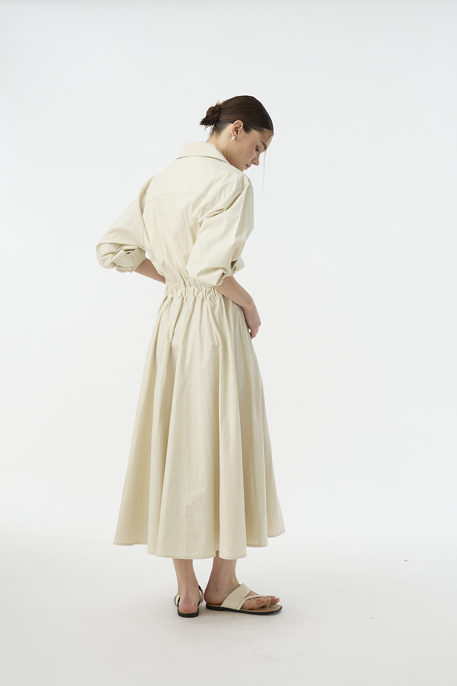 最具代表性的春夏浪漫力作!薄挺面料讓視覺與舒適度得到最大加分,後腰處有鬆緊設計,讓腰圍28~34的顧客都能擁有有腰身的長洋穿搭,A字裙襬讓整體視覺修適度更佳。