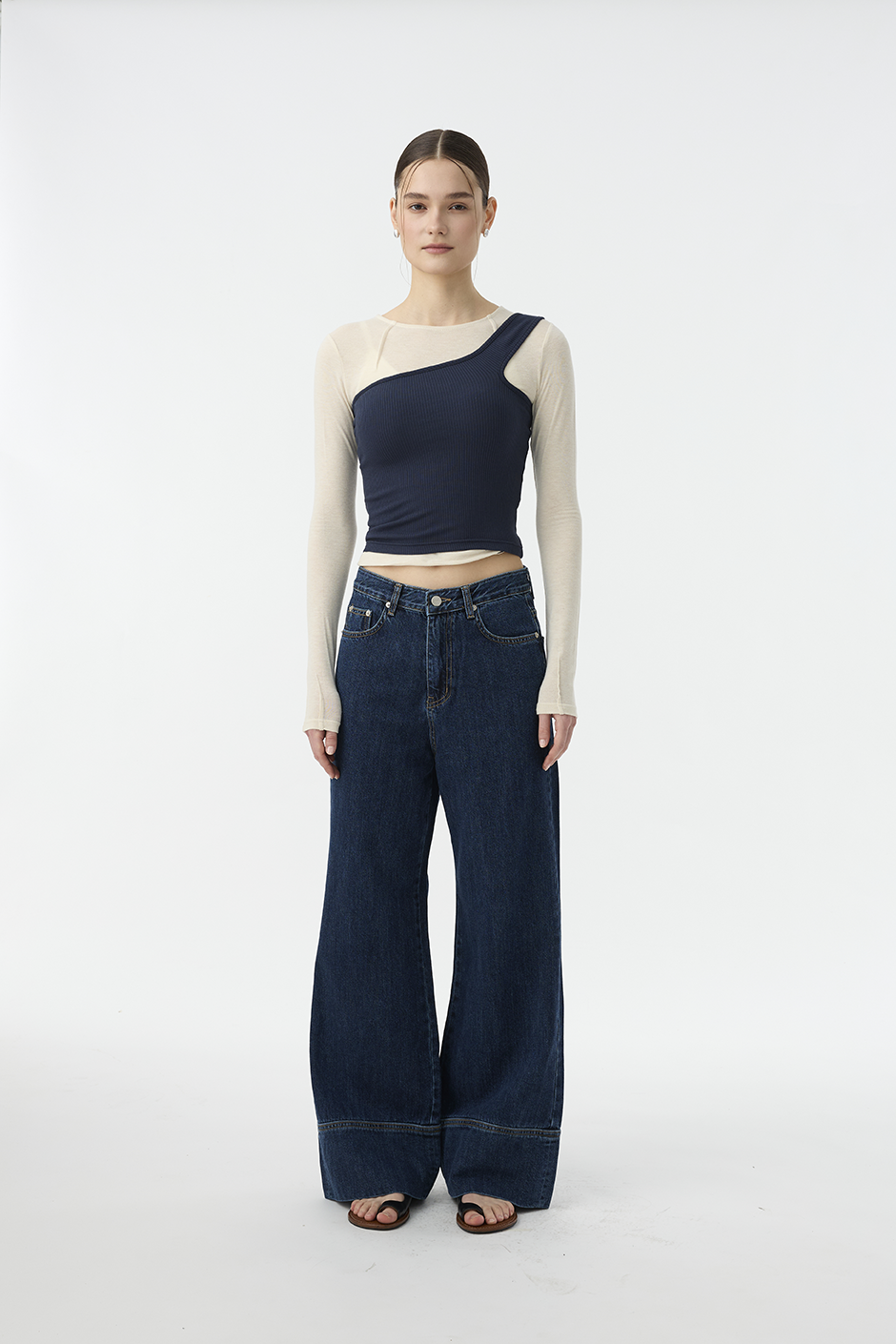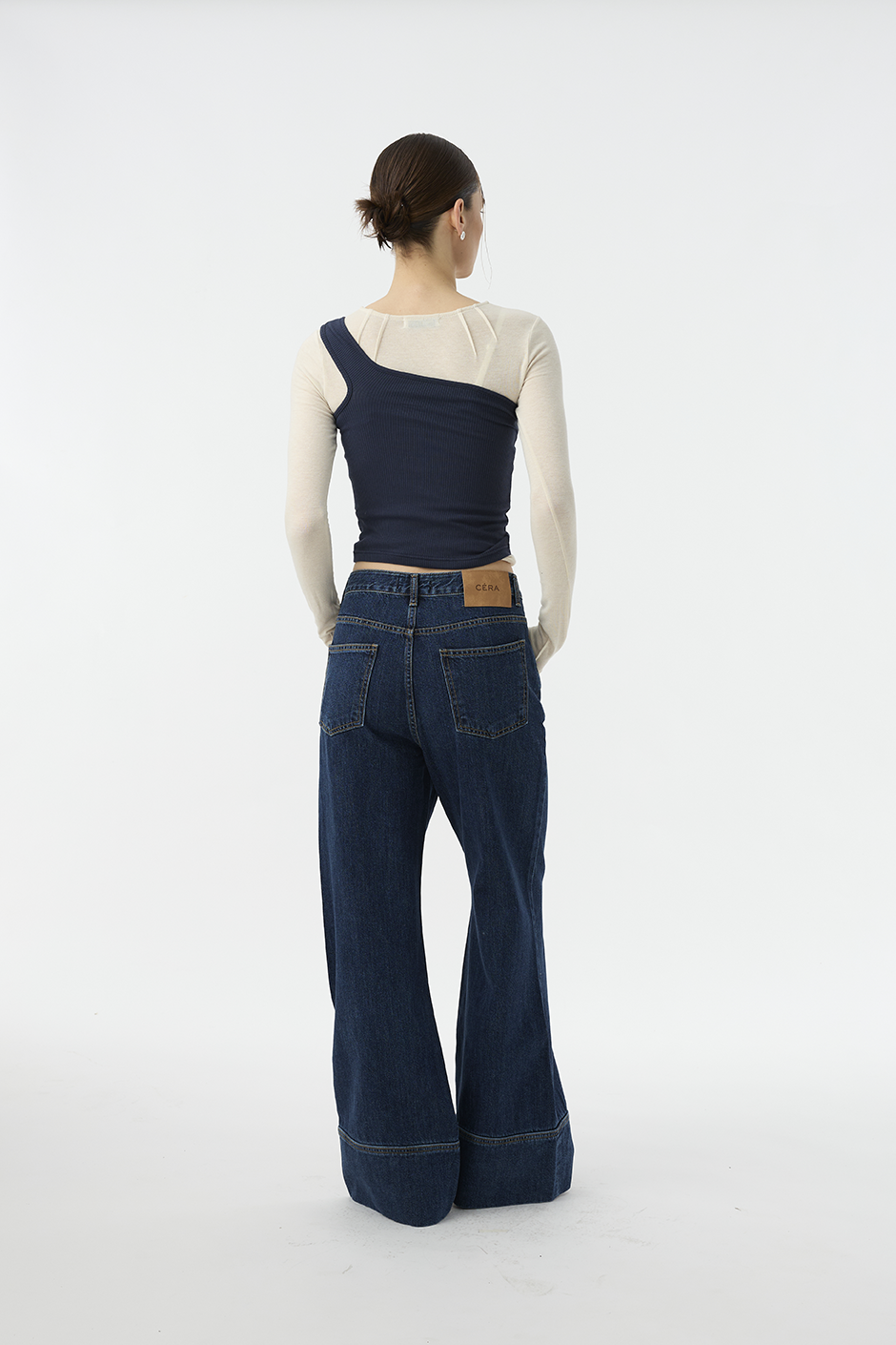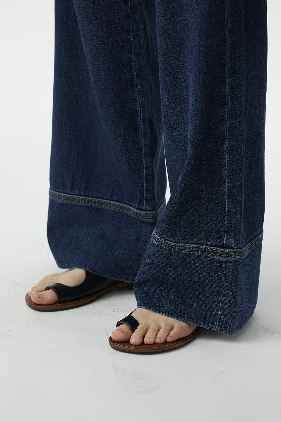 中高腰牛仔褲,加強修飾腰部比例以及腿部線條,落地設計褲管,讓整體身形視覺更加長。