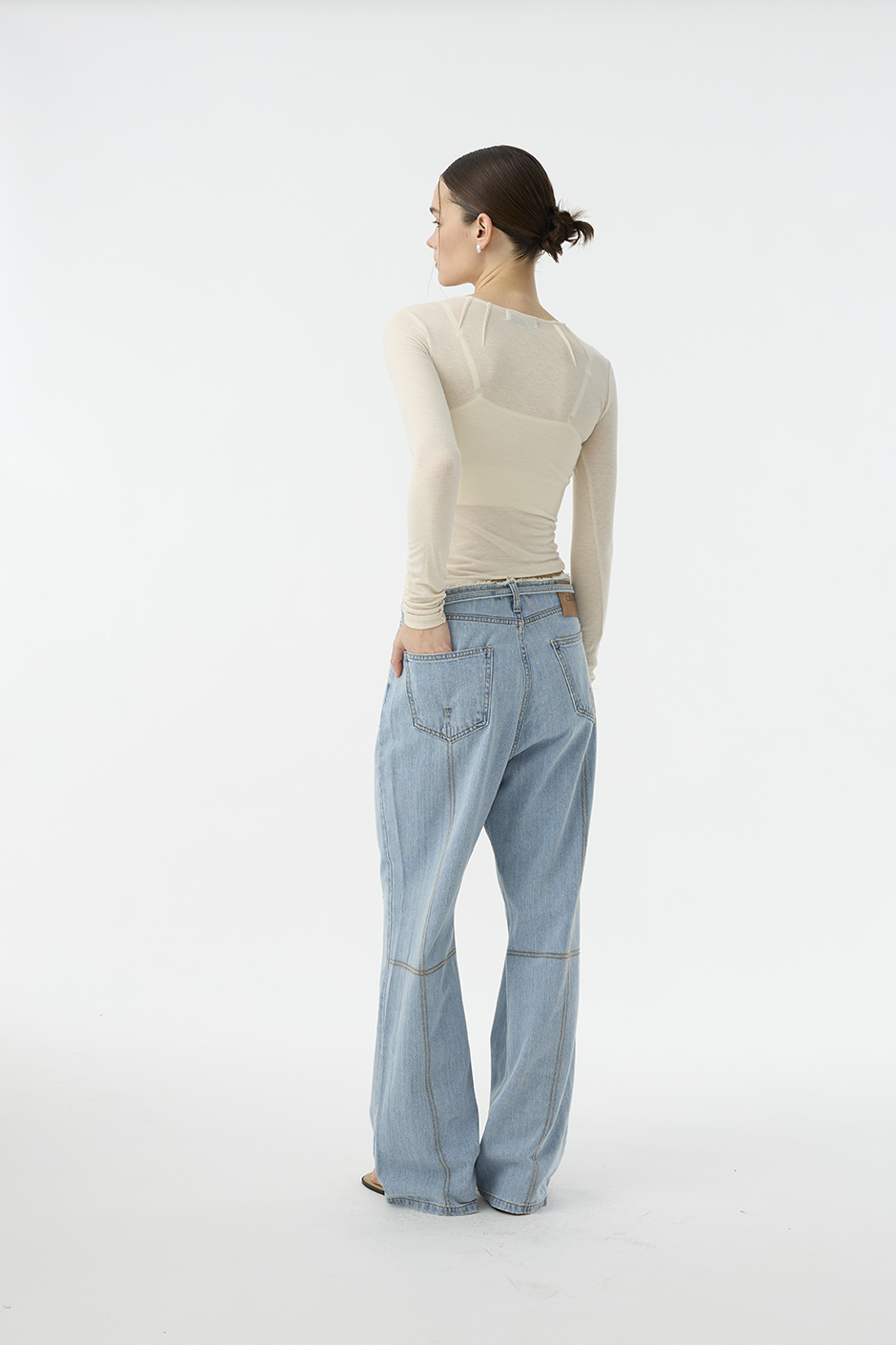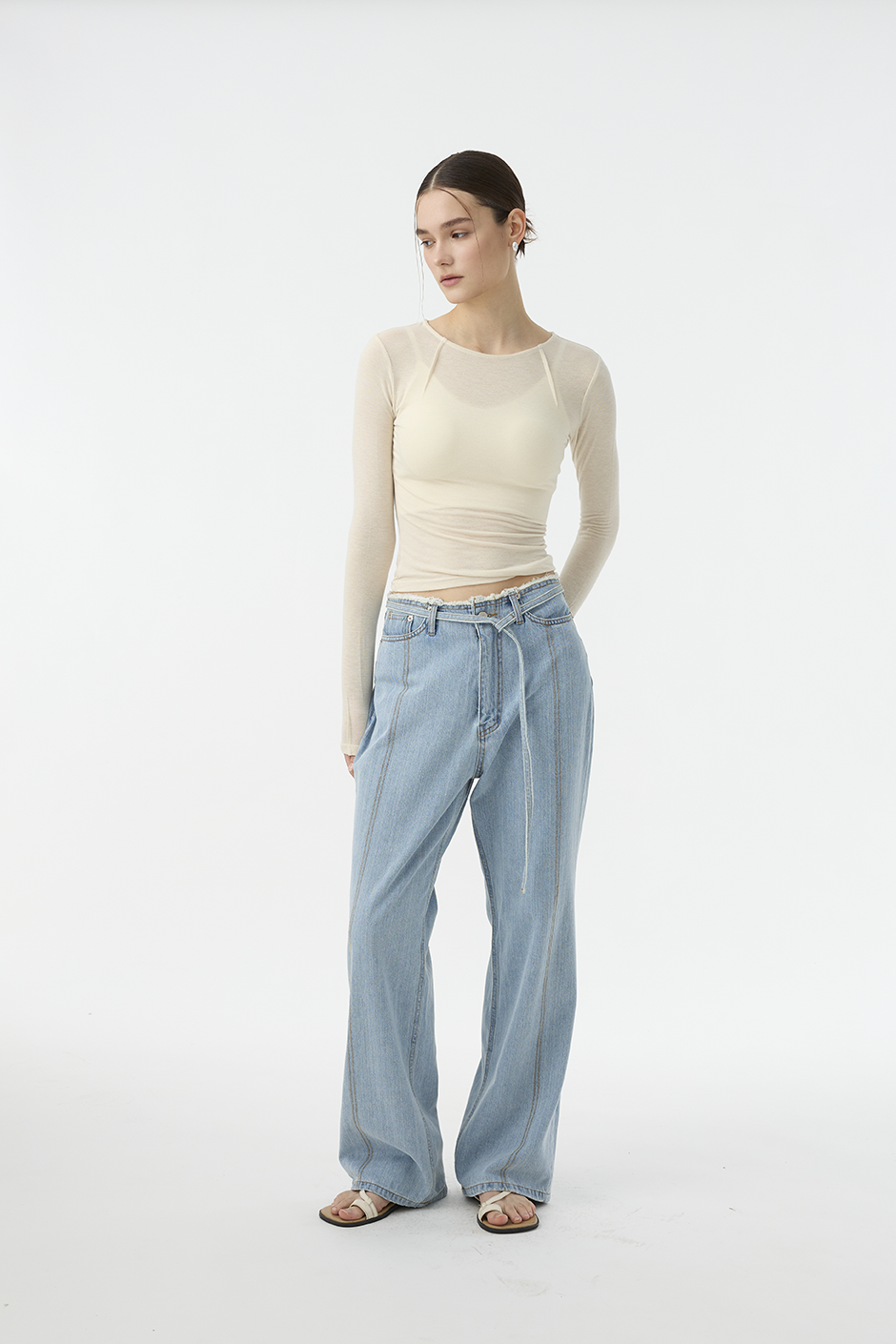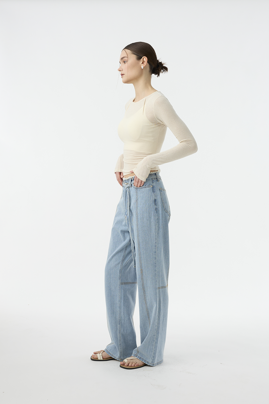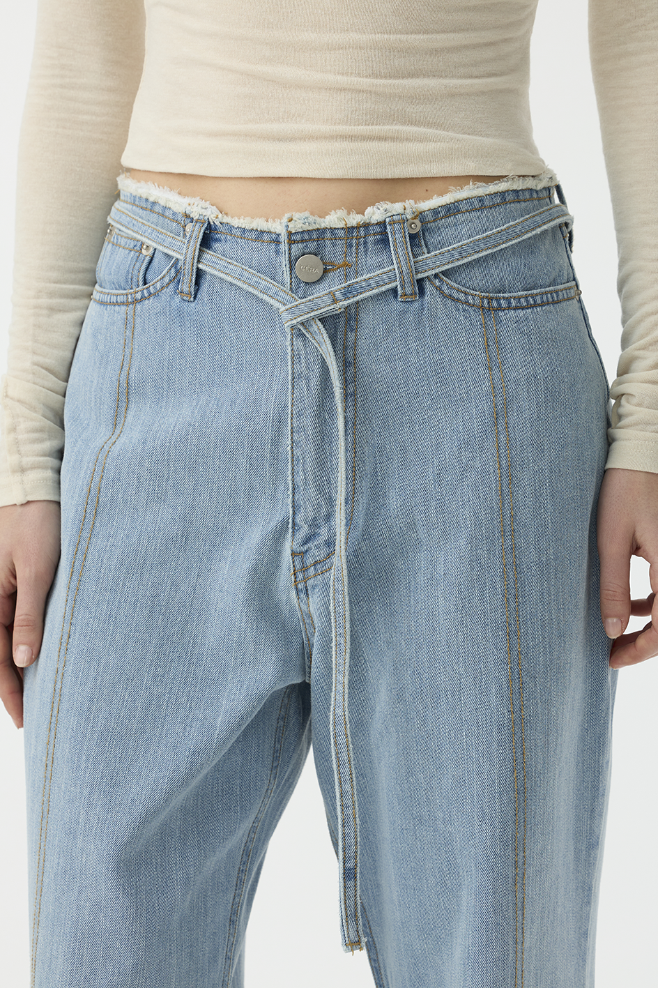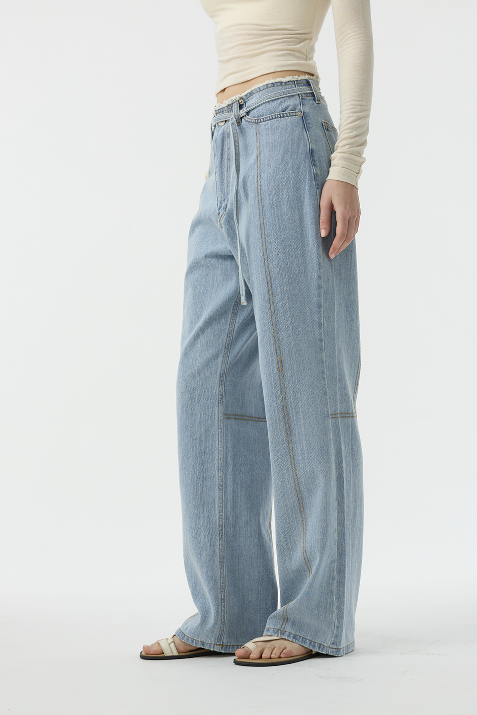 CERA引以為傲的舒適中性款,獨家剪裁讓男女都能夠輕鬆駕馭!此款有特別的綁繩設計以及車線設計細節,落地設計讓整體視覺更佳修身顯瘦,有別其他一般中性款,讓牛仔褲多了更多設計感!