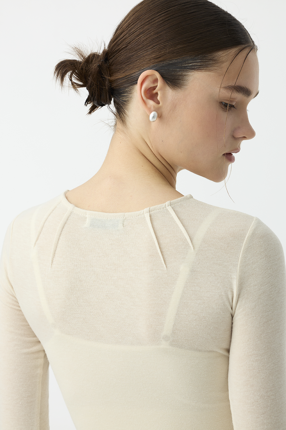 極舒適系列的主打力作。適合日常穿XS~L的顧客,輕盈薄透的舒適感,領口特殊剪裁讓內搭再也不無聊!單穿也非常合適!