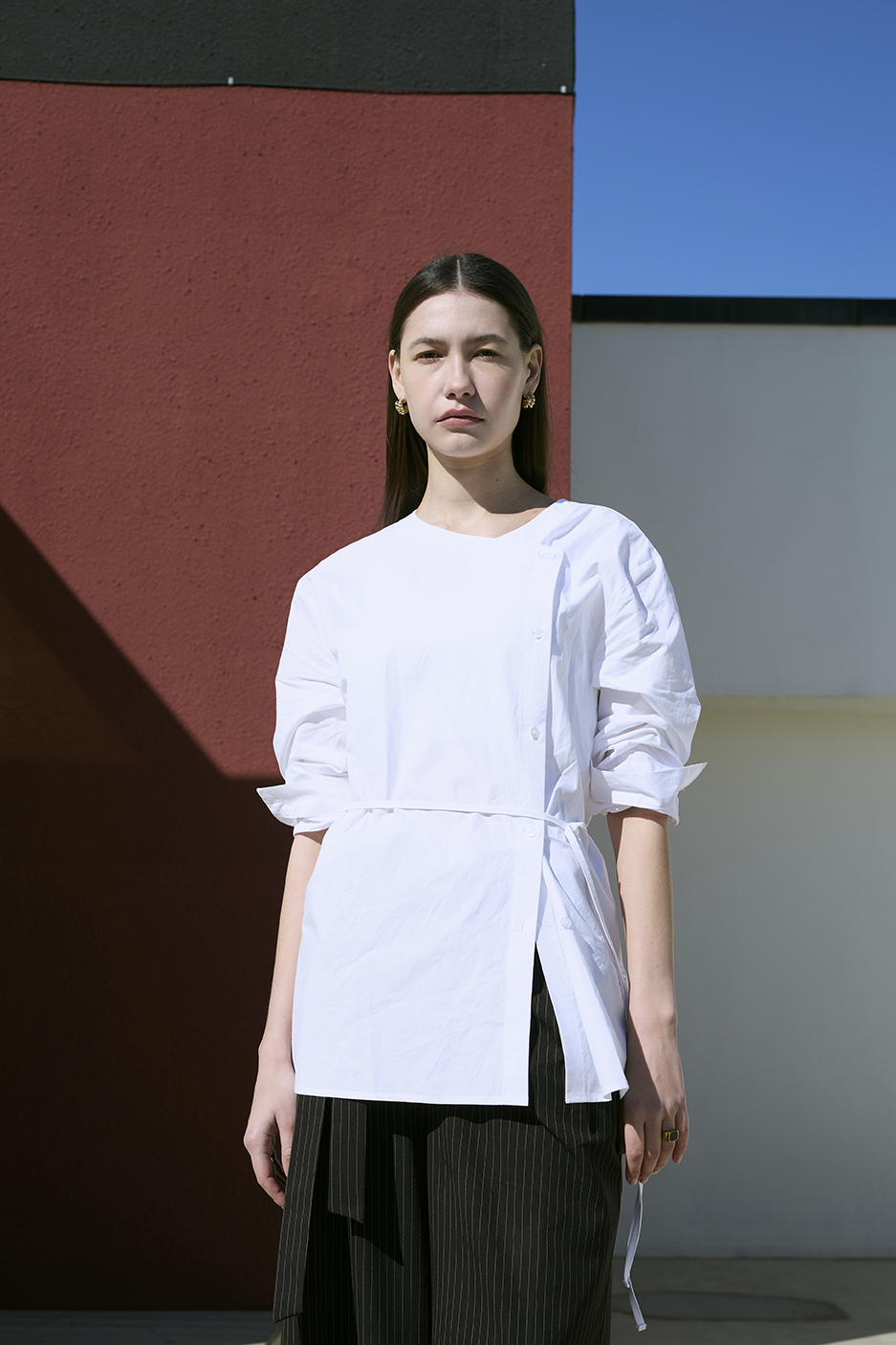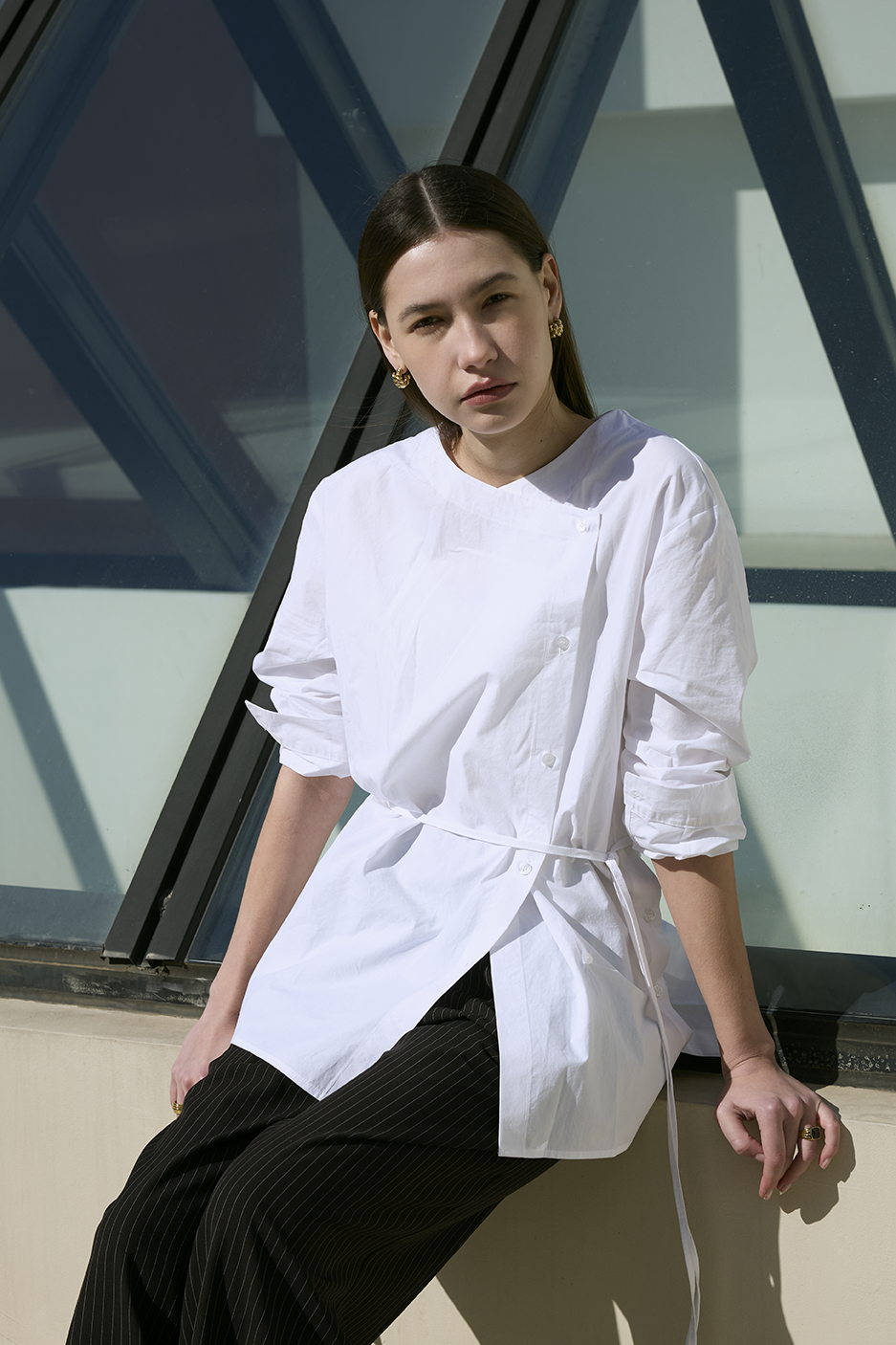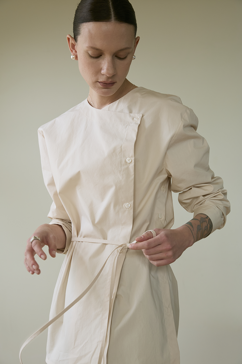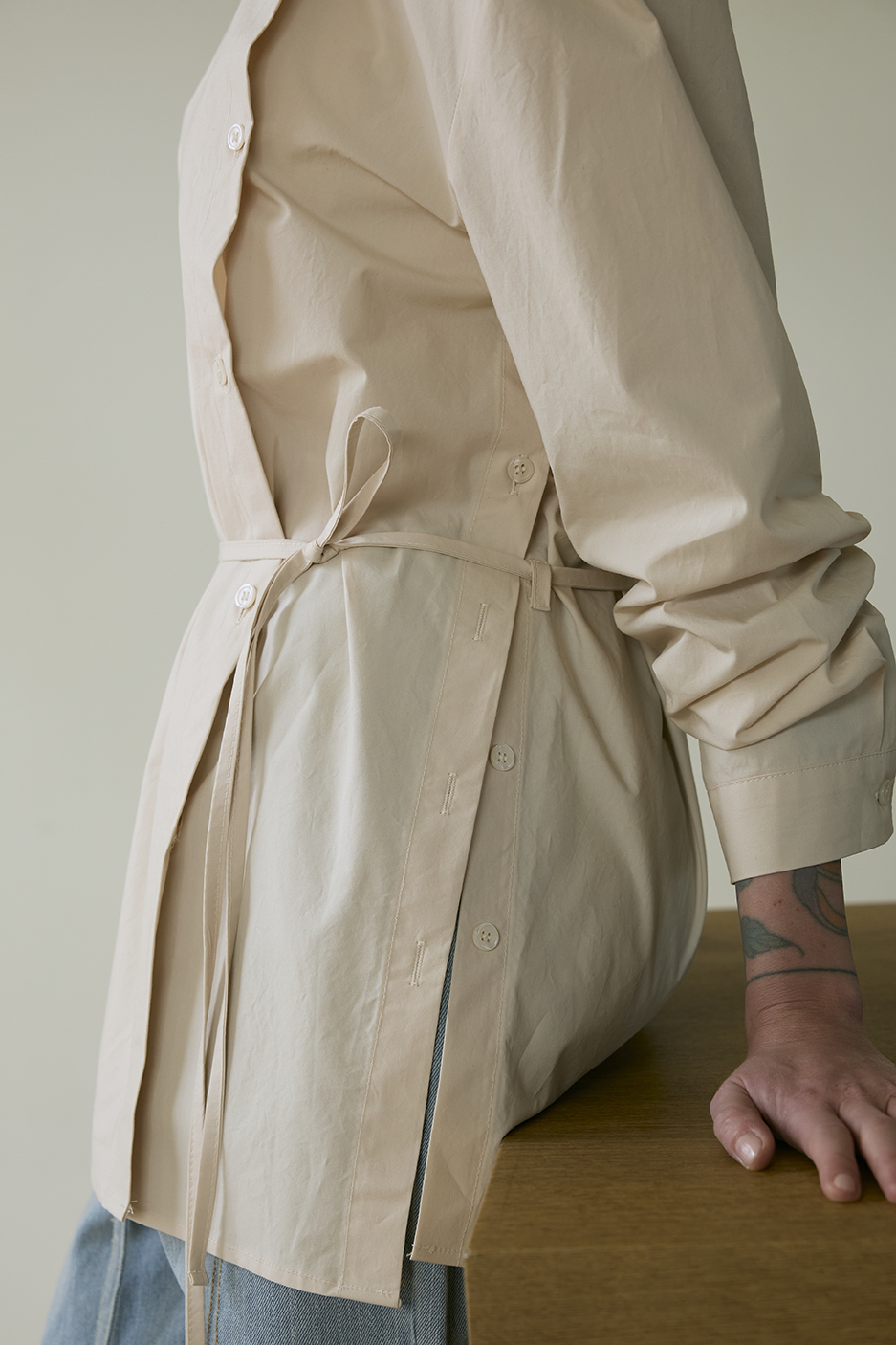綁帶設計明星款!側邊以排扣設計增加細節,綁繩能夠松放也能加強腰部線條,所有身形都能夠享受鬆弛時髦。