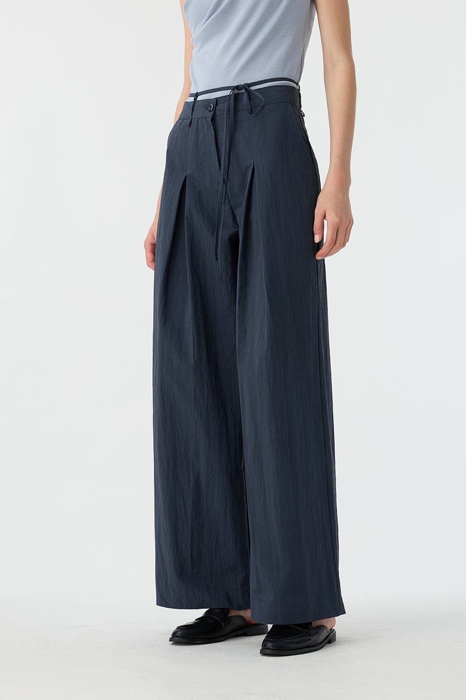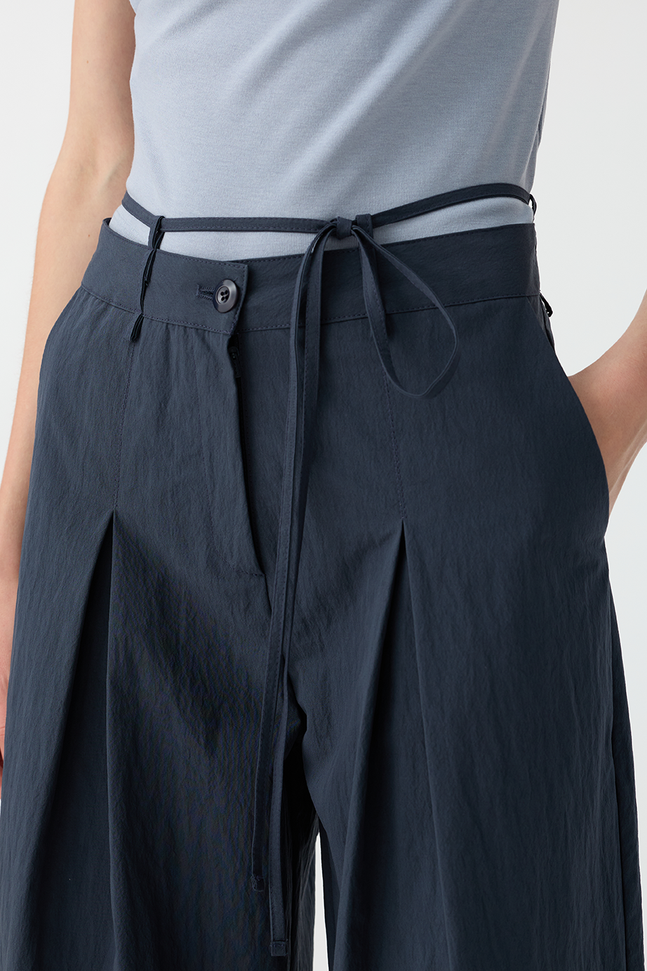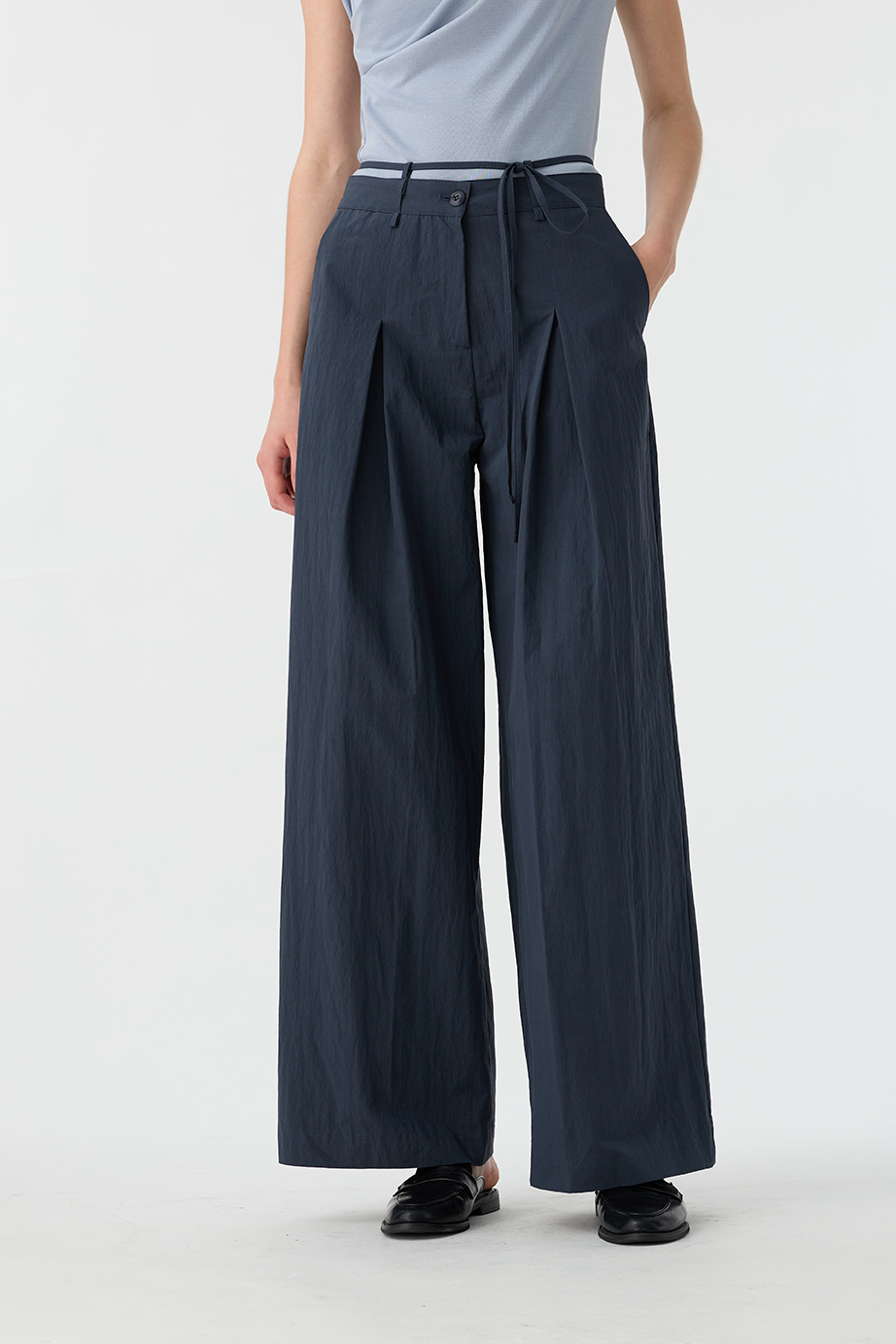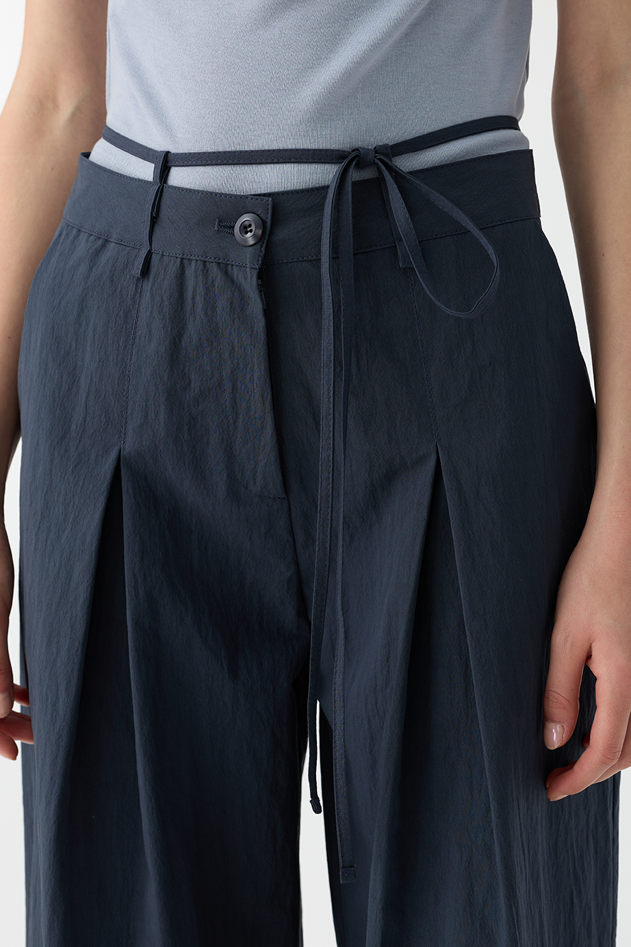 綁繩打褶休閒褲