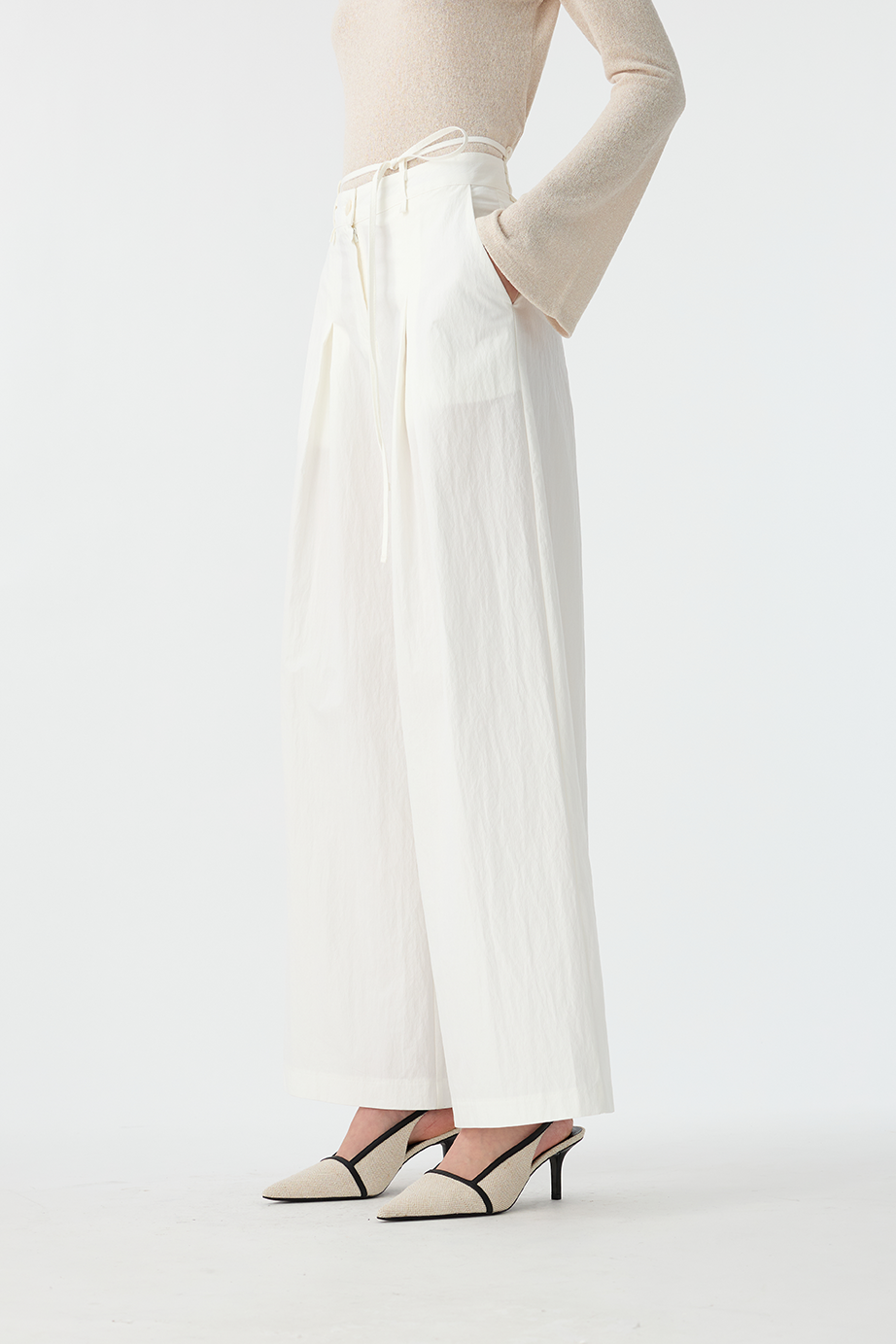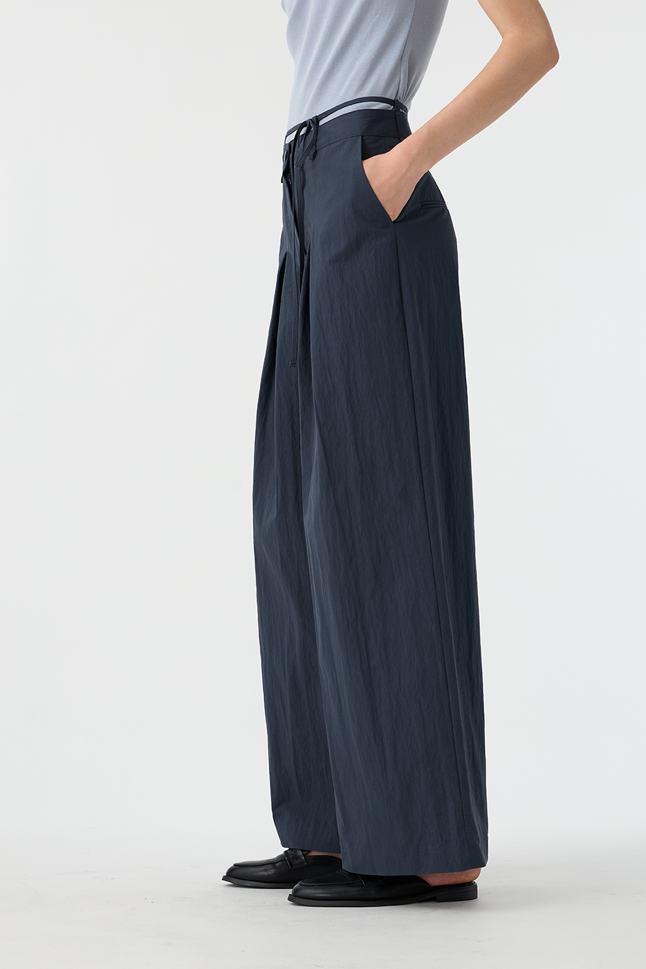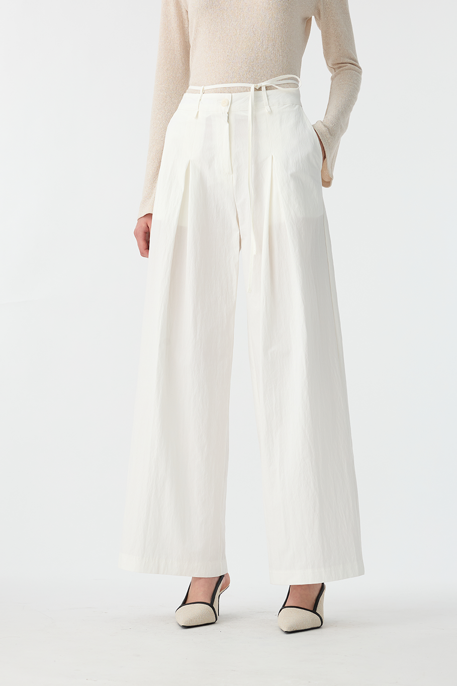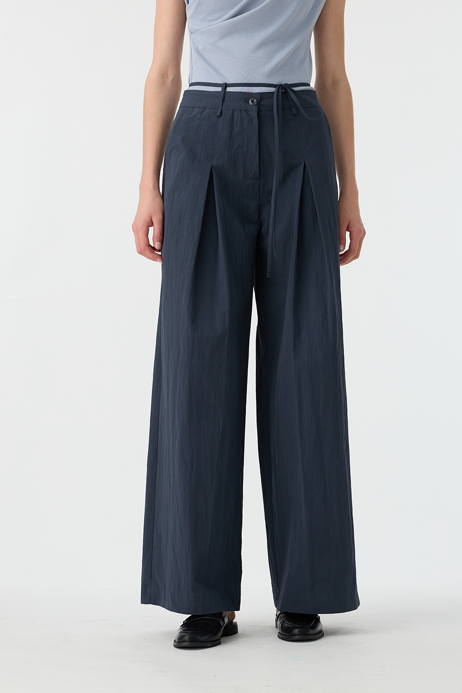 綁繩打褶休閒褲