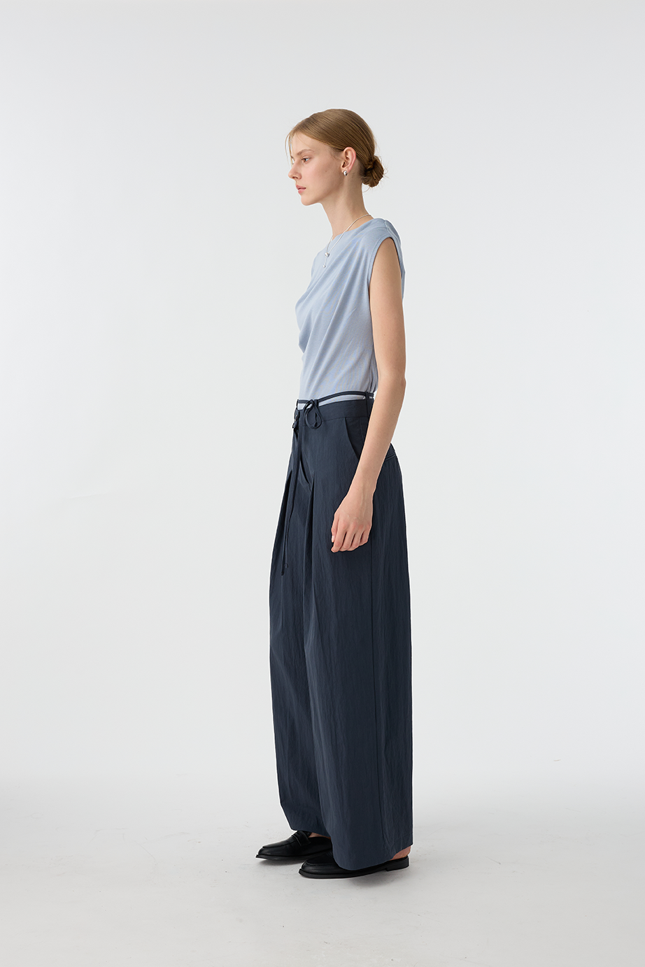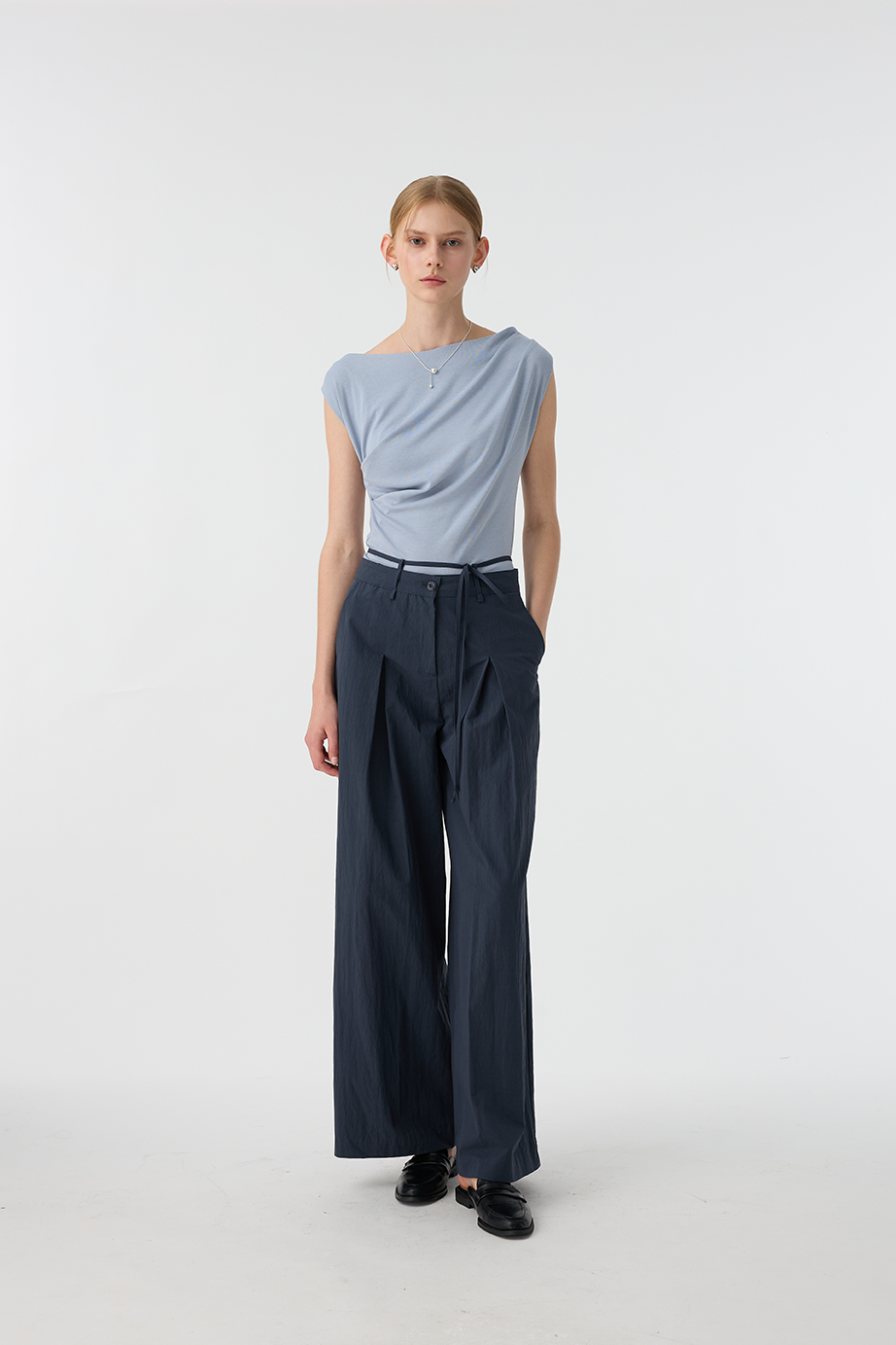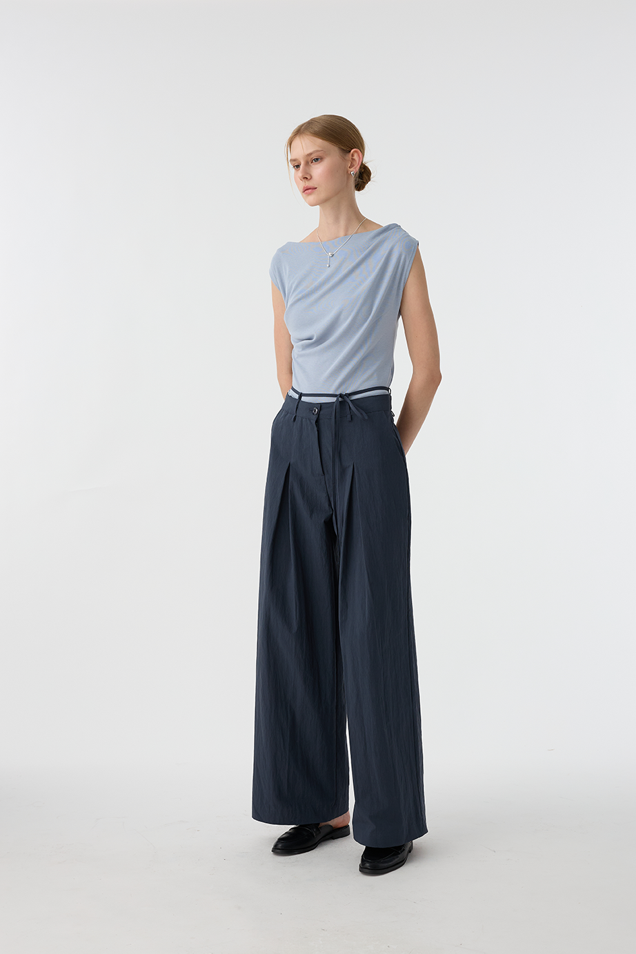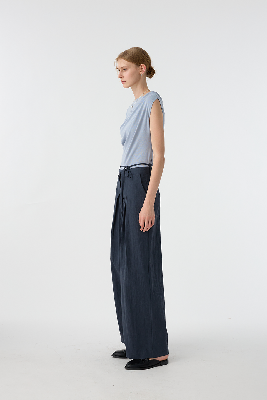 綁繩打褶休閒褲