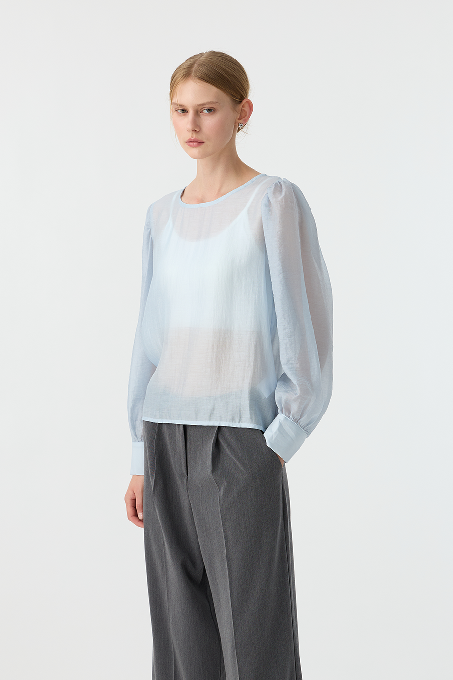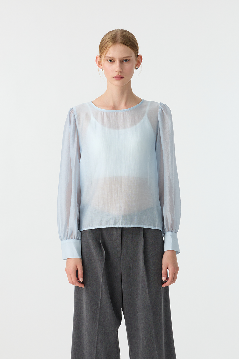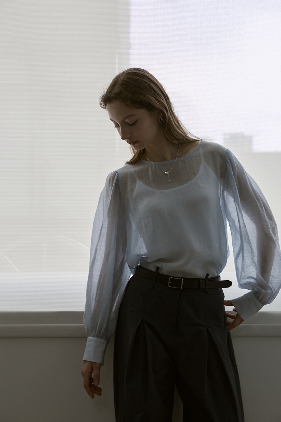 本單品有多處抓皺設計,修身的同時還能有透視性感。