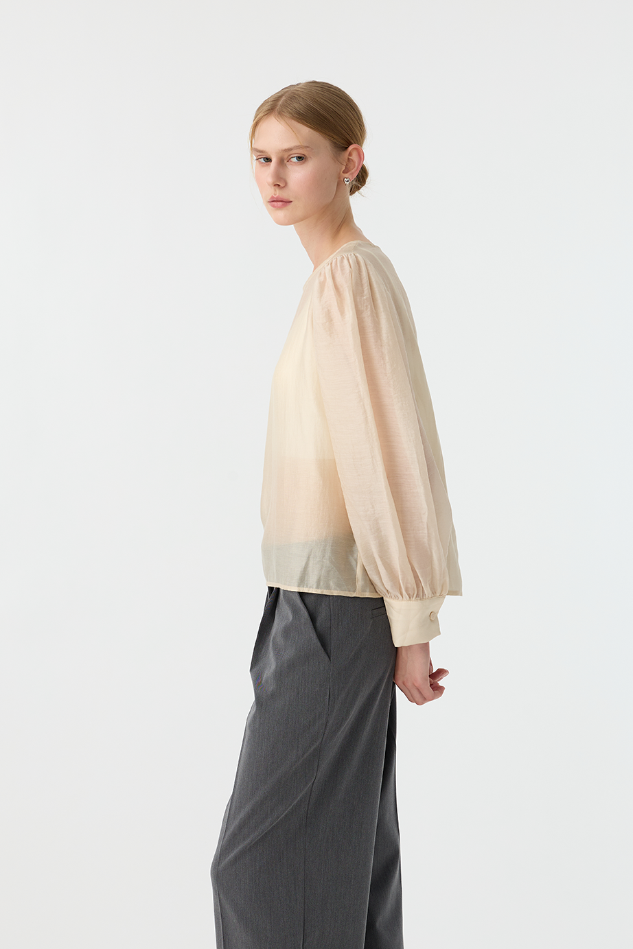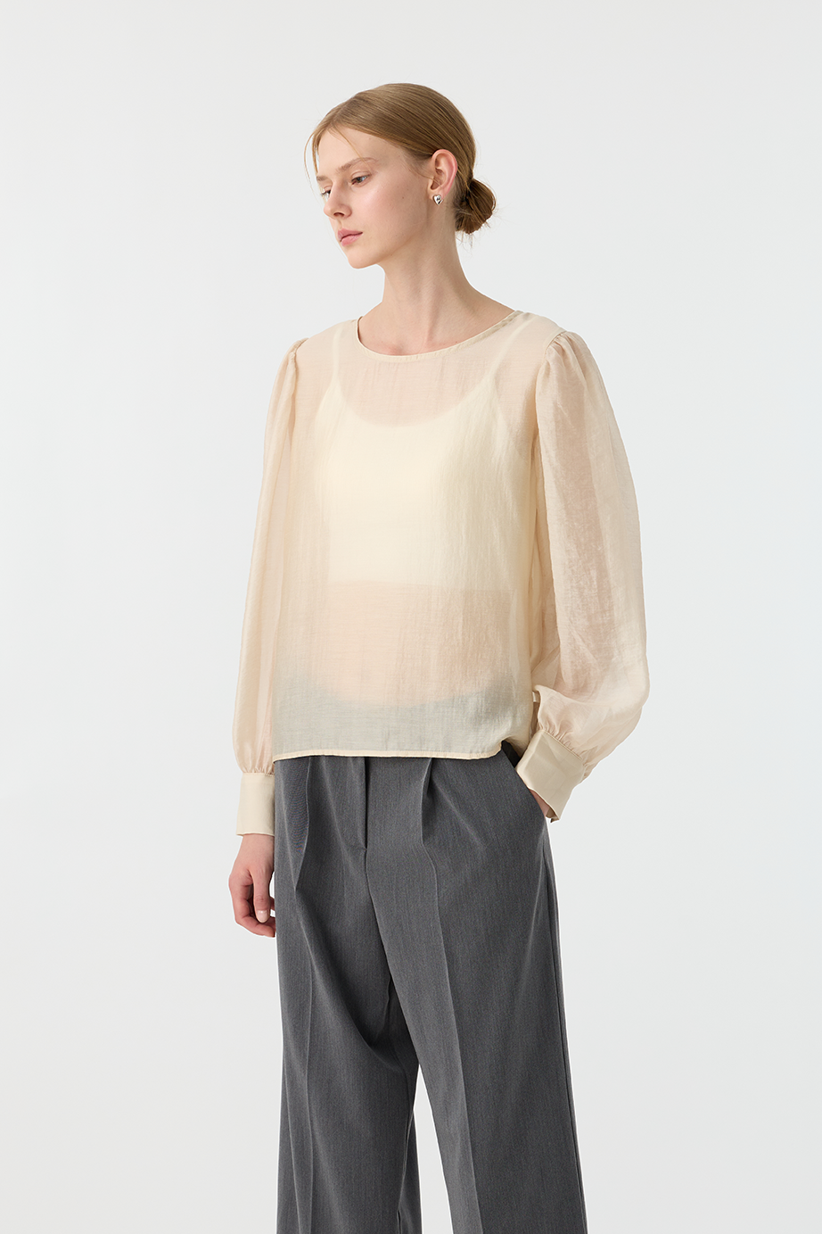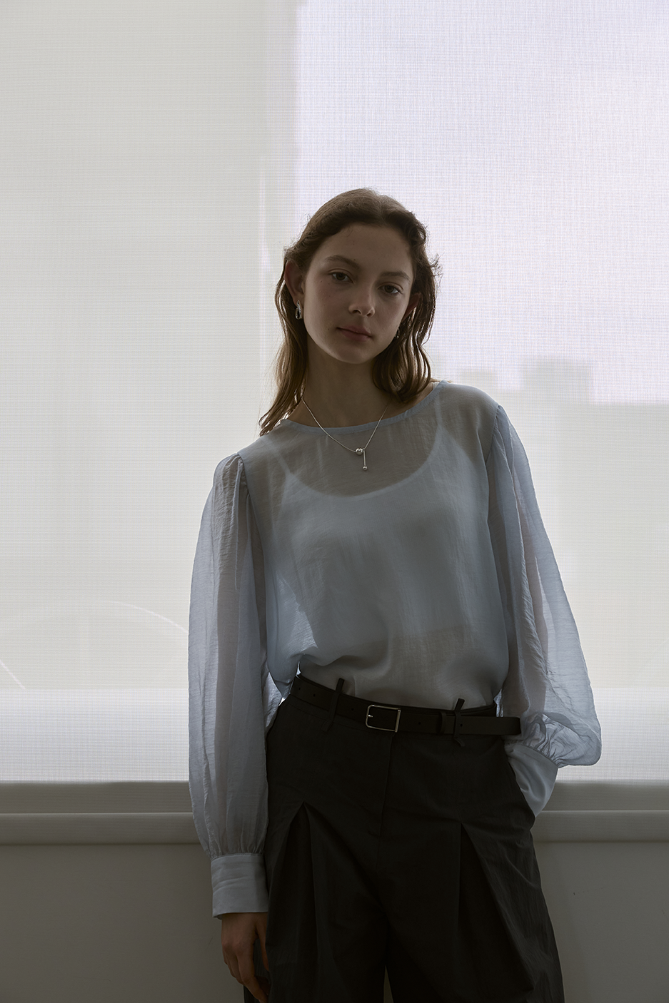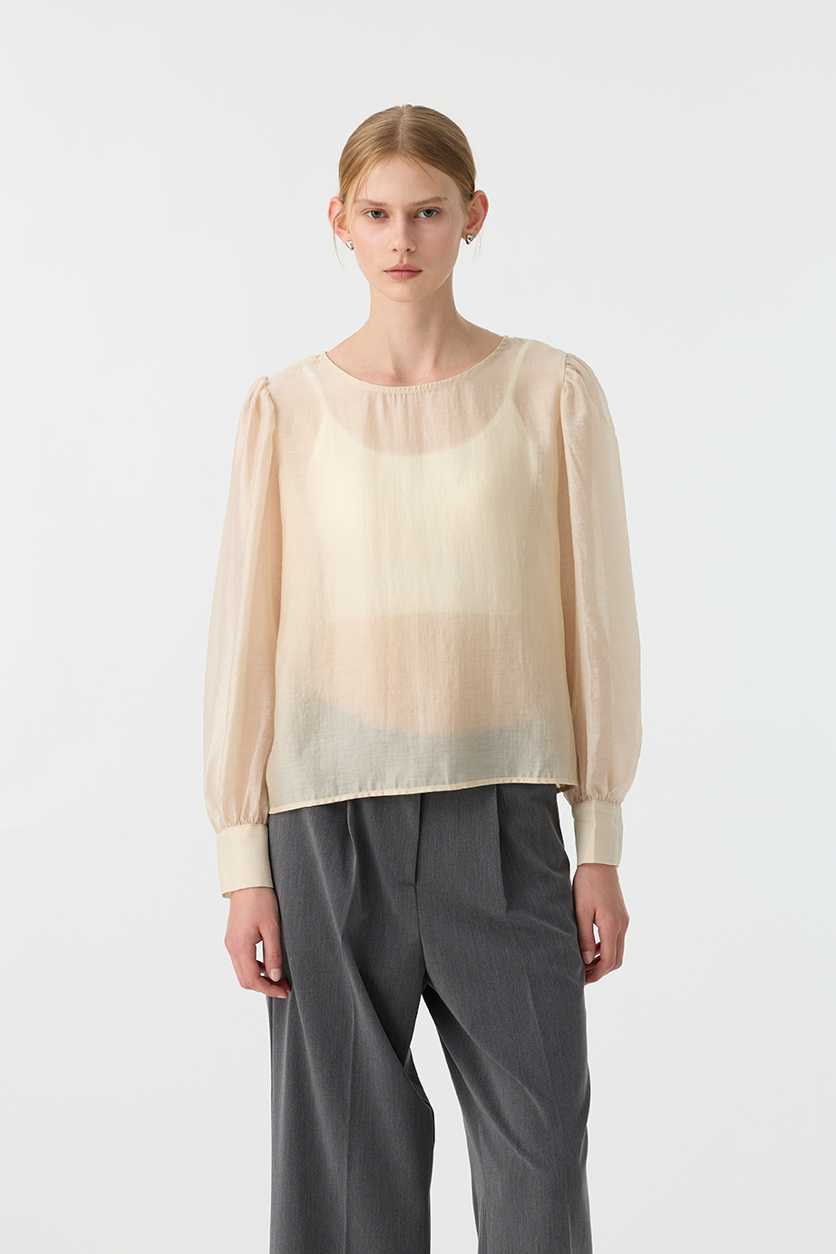 本單品有多處抓皺設計,修身的同時還能有透視性感。