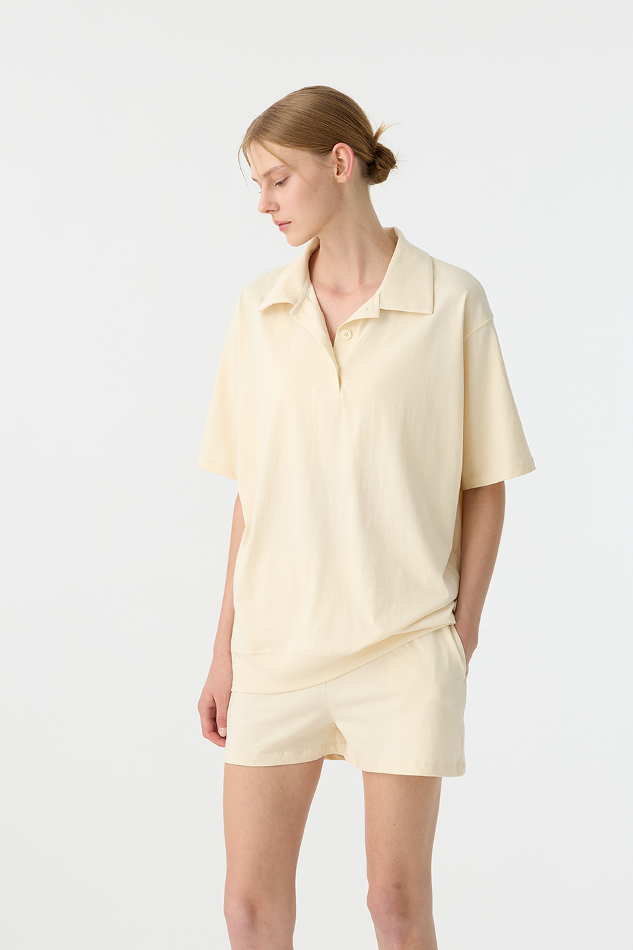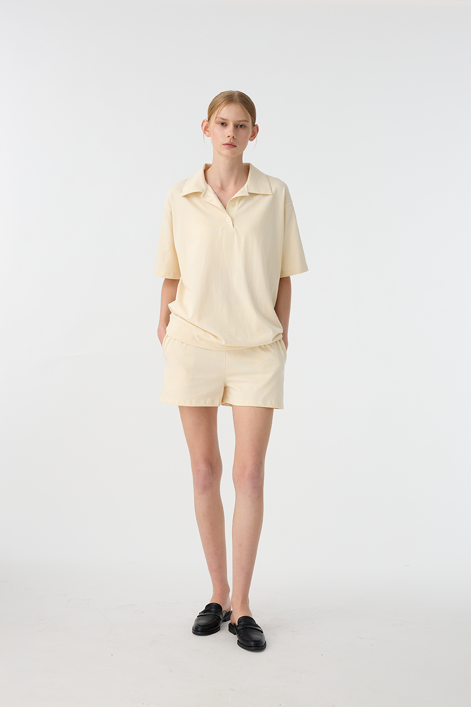 剪裁寬大輕鬆,當做外出套裝或是居家套裝都相當適合。
