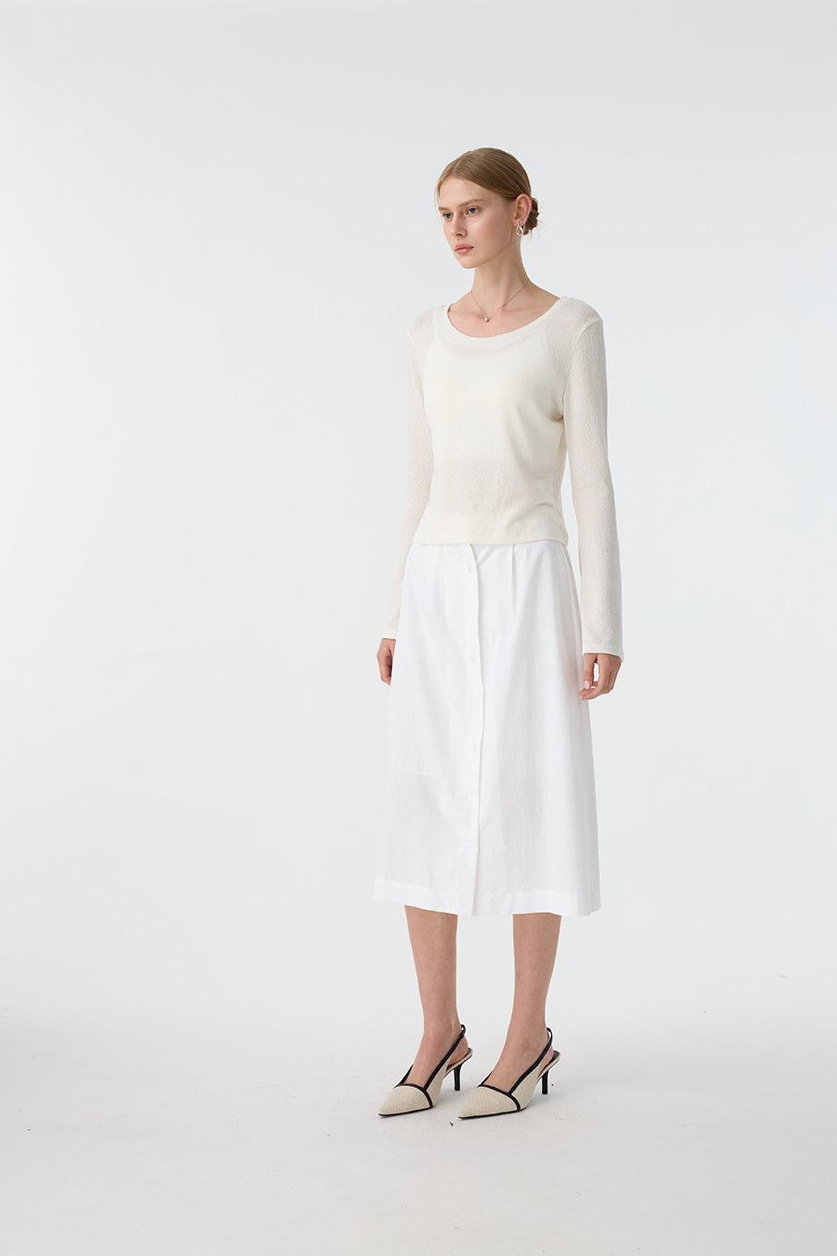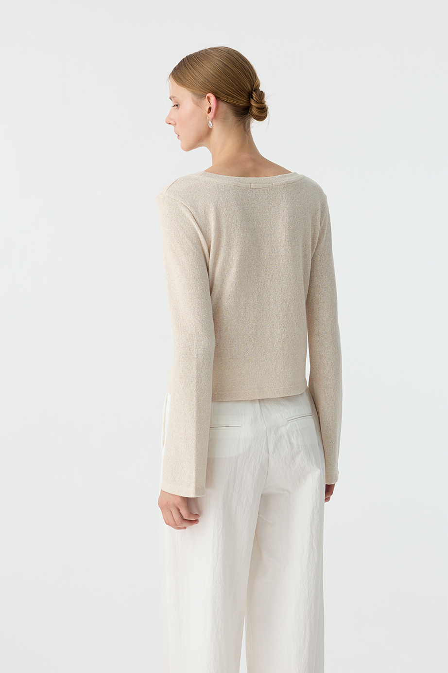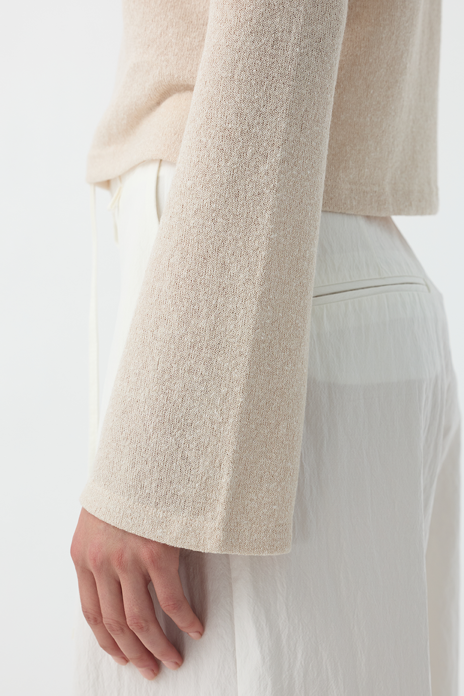 袖口大開的設計,讓手軸視覺拉長,上身比例更好