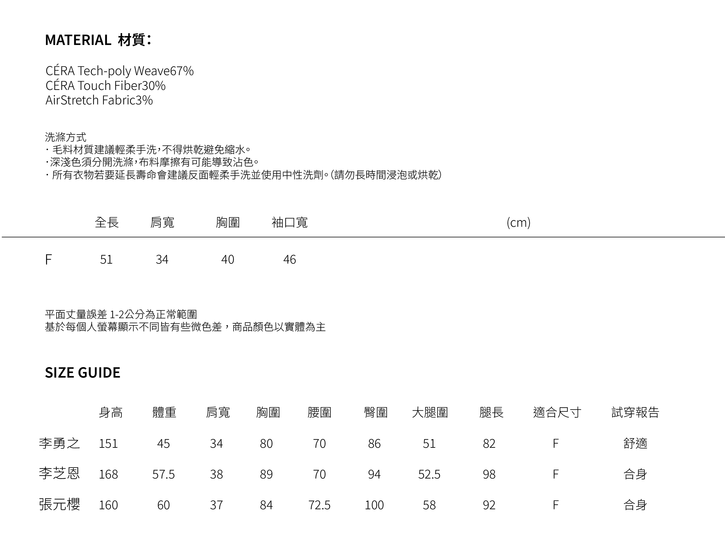 告訴我們您的身型資訊,我們請身材與您相仿的同事傳給您實穿照!讓您選擇時尚更加精準💕
