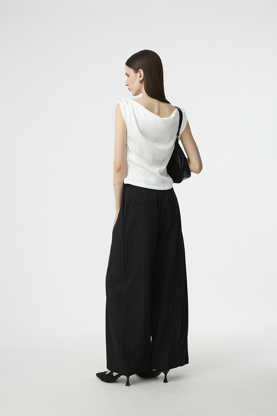 高腰與大落寬褲管視覺上拉長雙腿比例,布料具挺度卻不失柔軟手感,日常通勤或風格穿搭皆宜。無論搭配貼身上衣或寬鬆襯衫,皆能呈現簡約卻不無聊的穿搭層次。