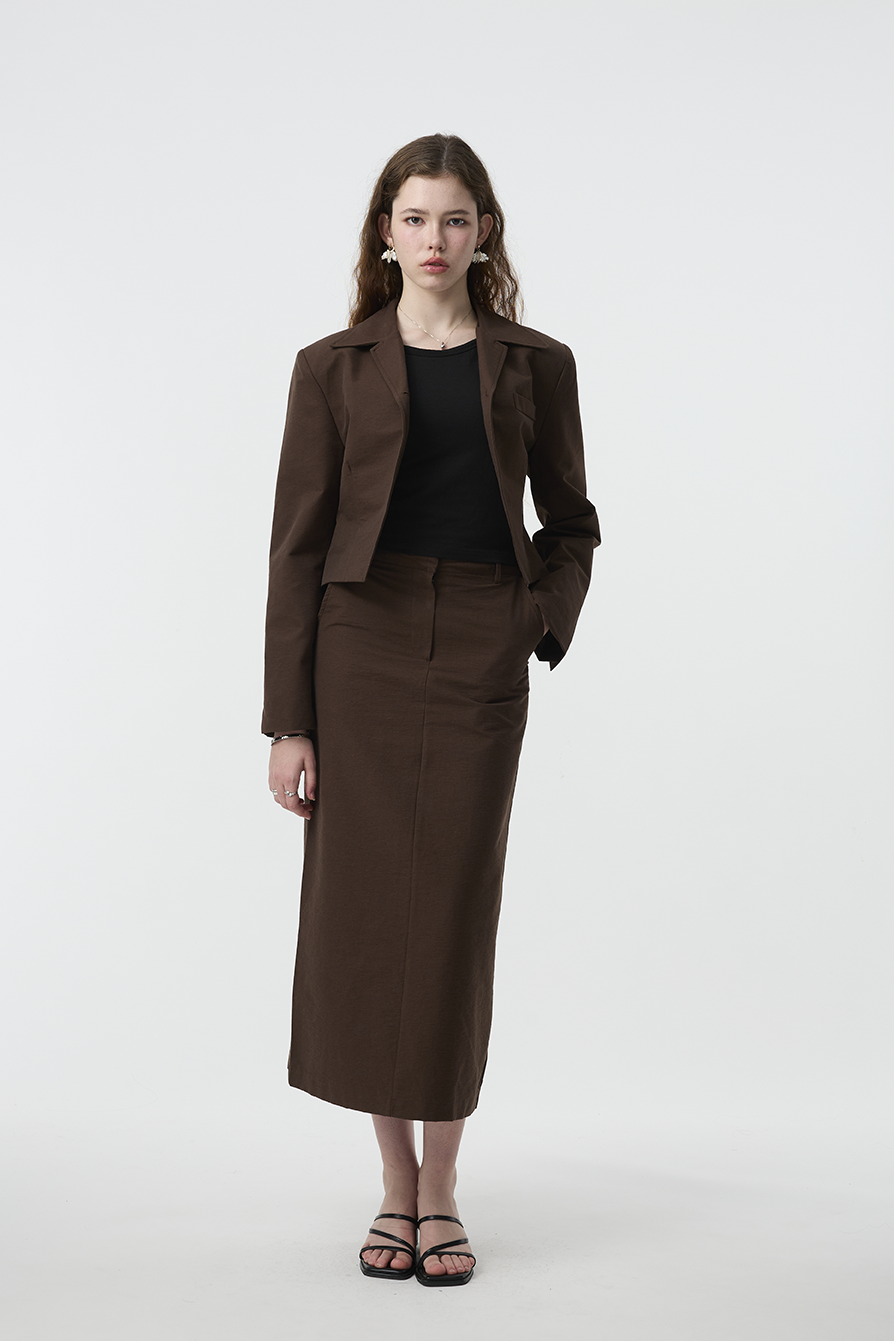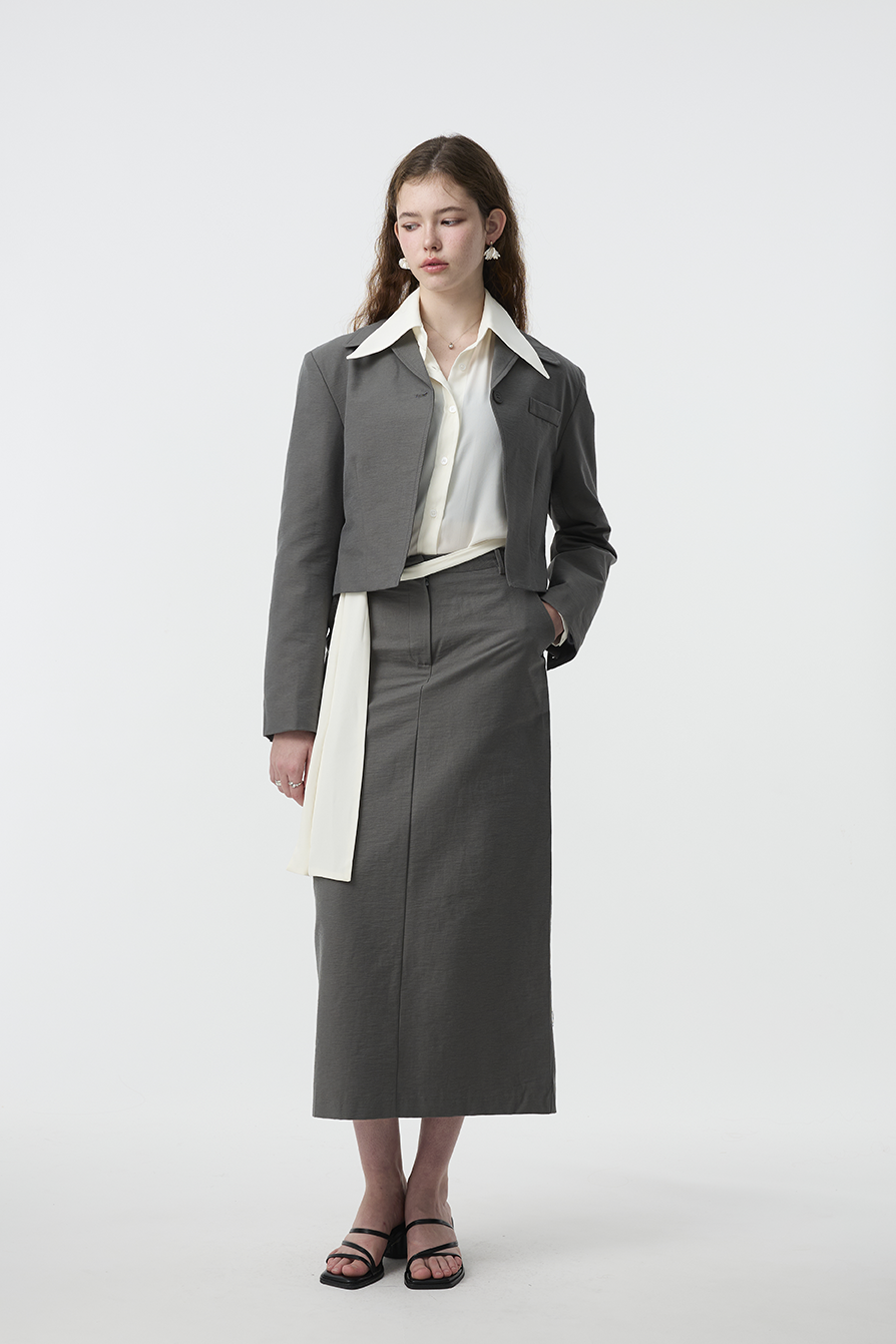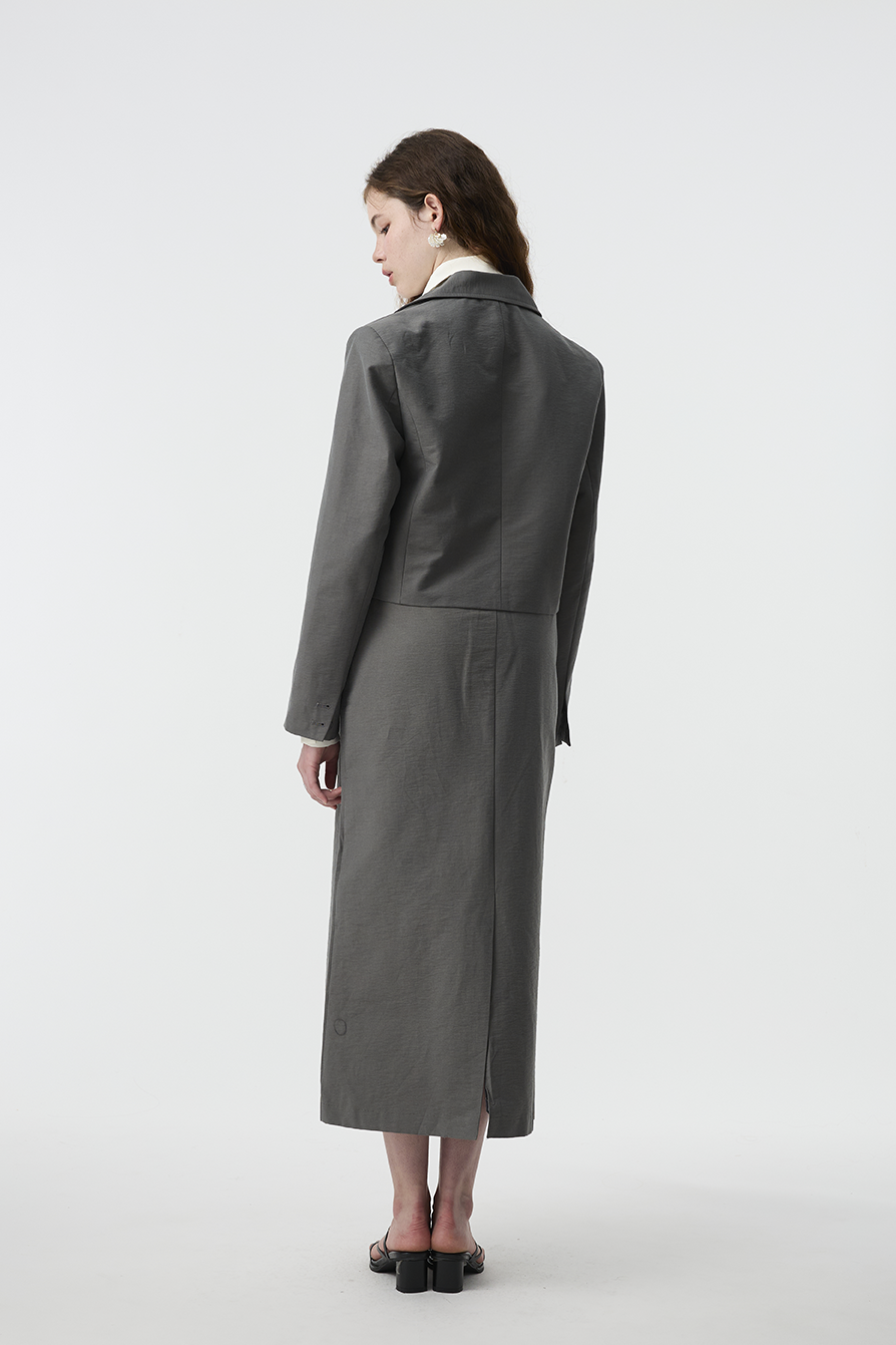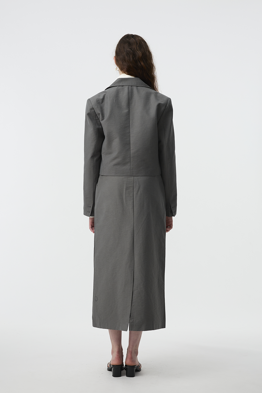 中長版長度帶來優雅沉穩氣質,後開衩細節則兼顧行走舒適度!