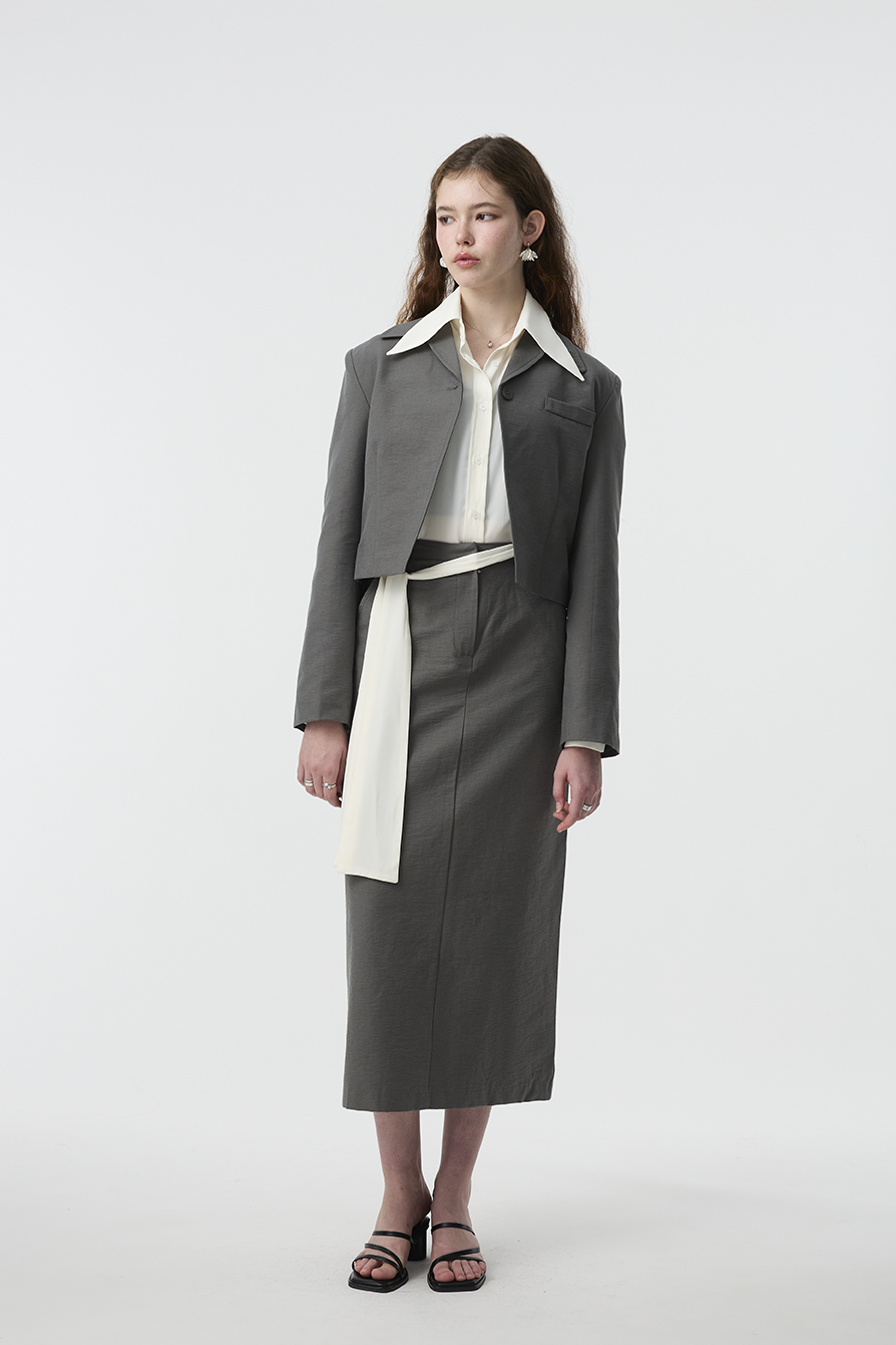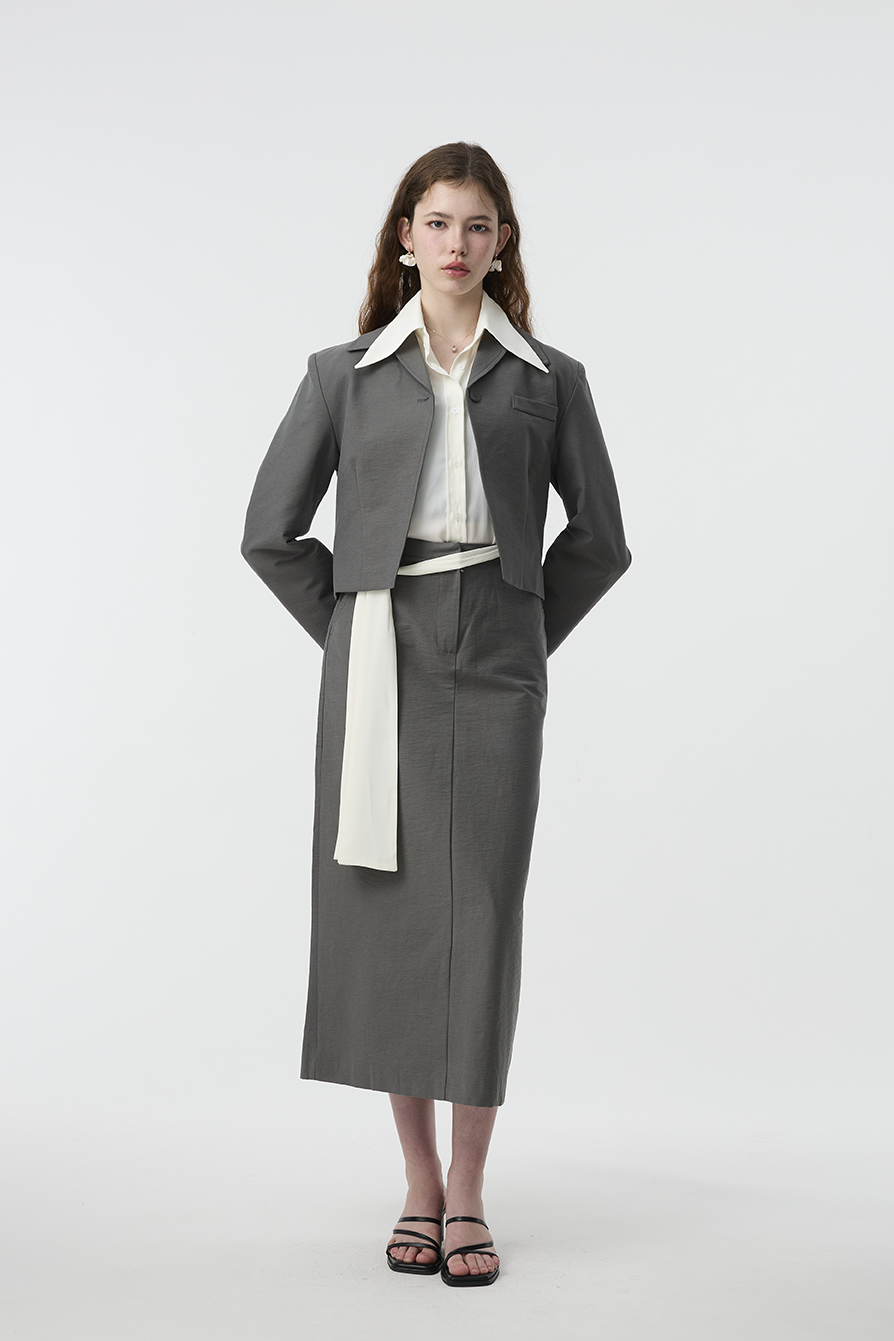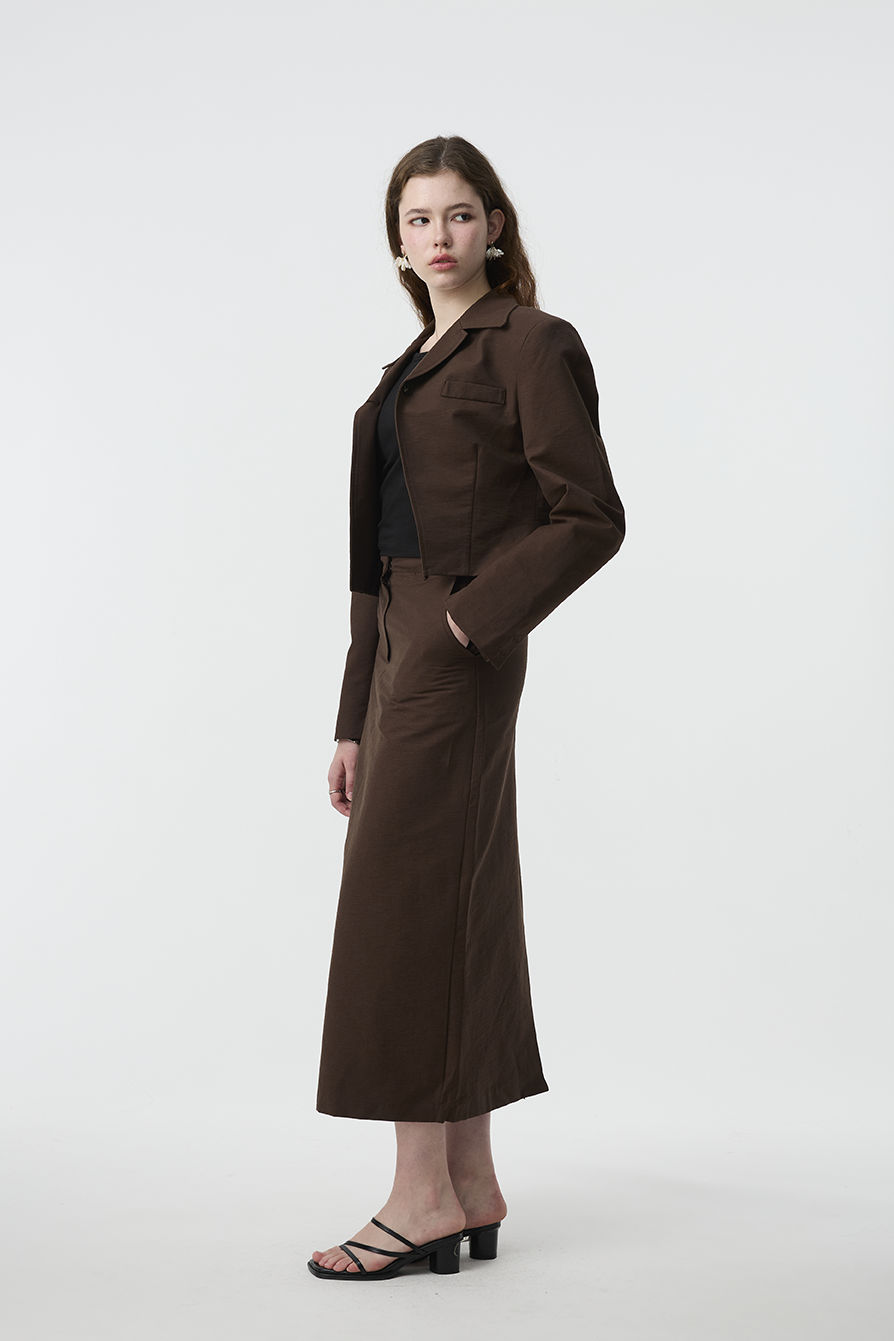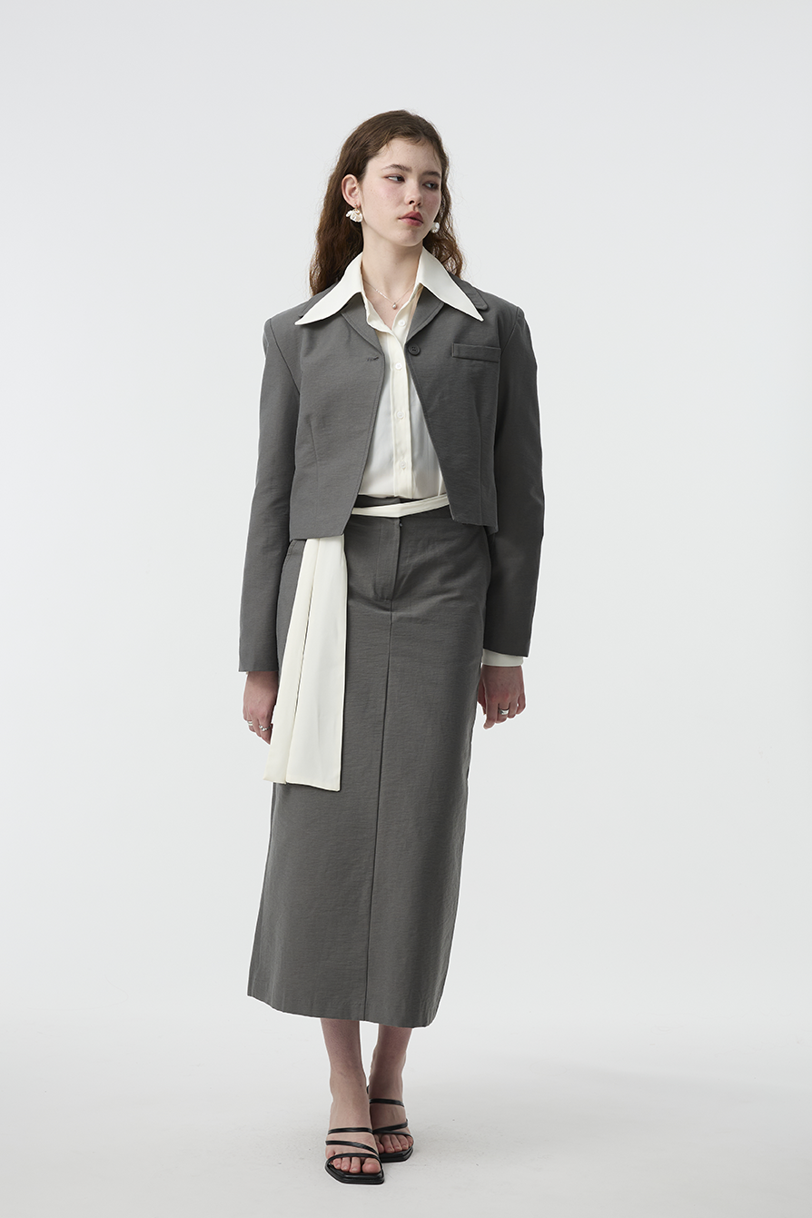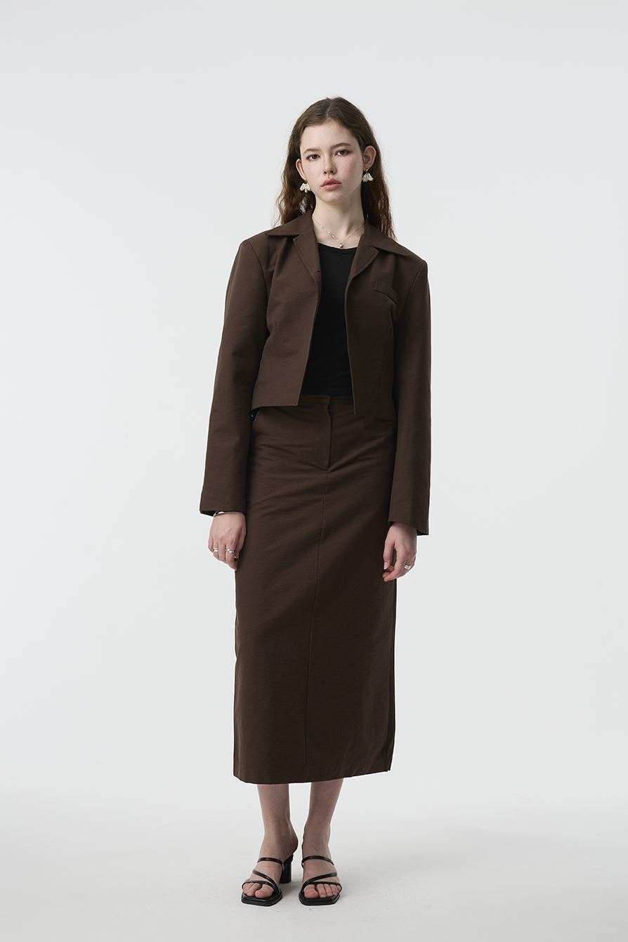 中長版長度帶來優雅沉穩氣質,後開衩細節則兼顧行走舒適度!