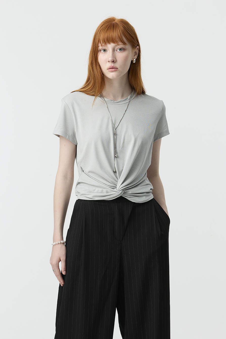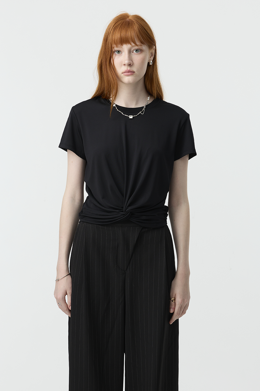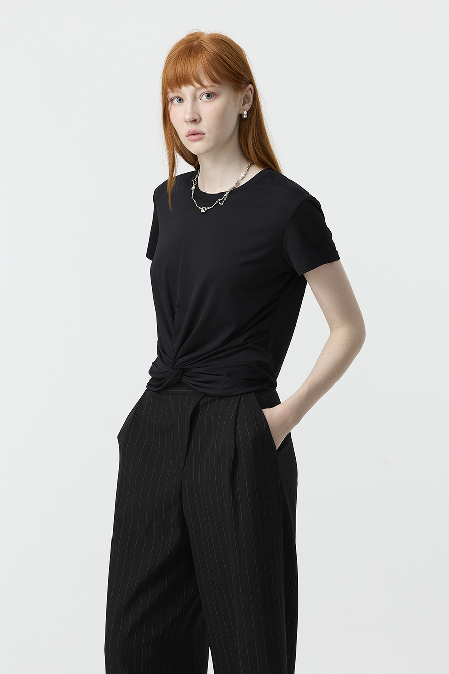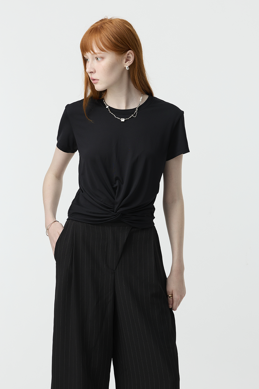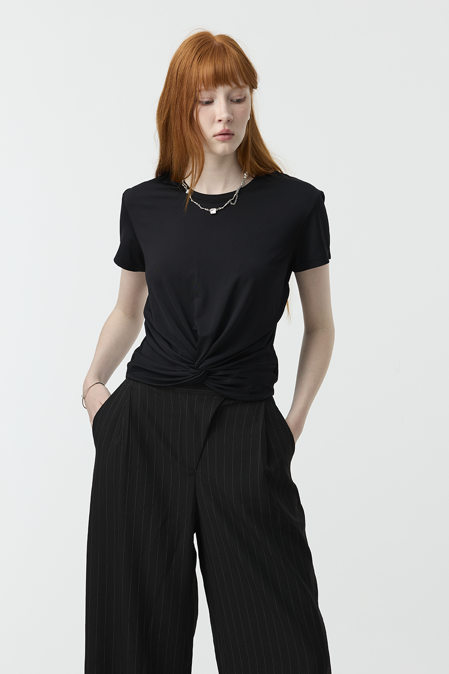 以簡約基底結合前結細節,賦予基本款T-shirt更多造型感!