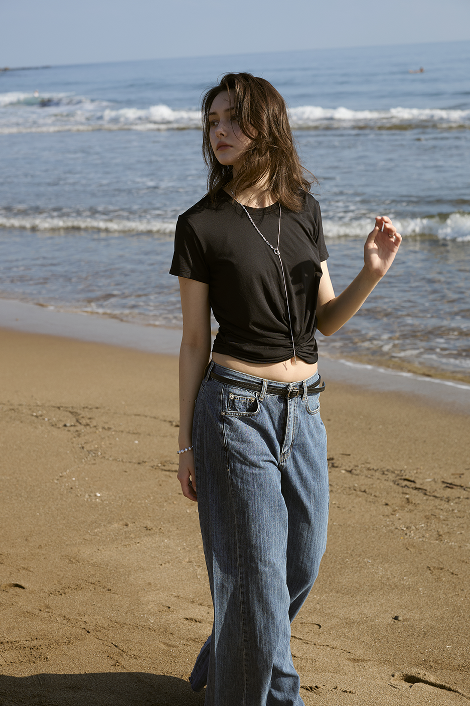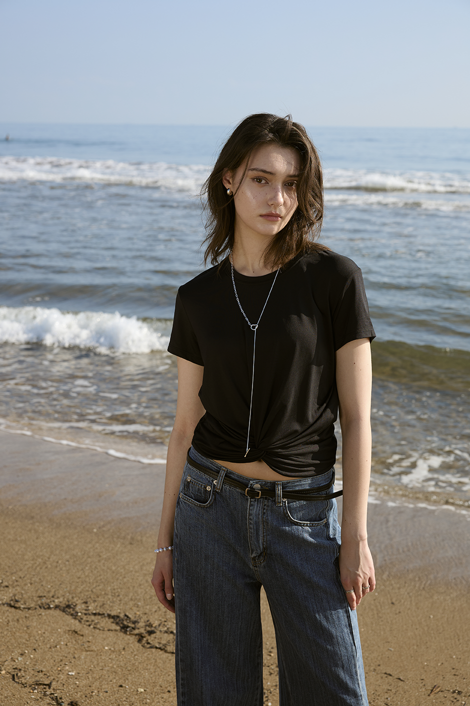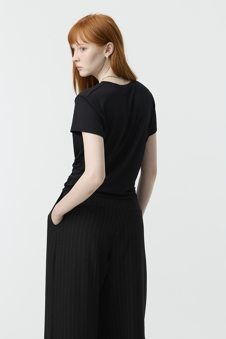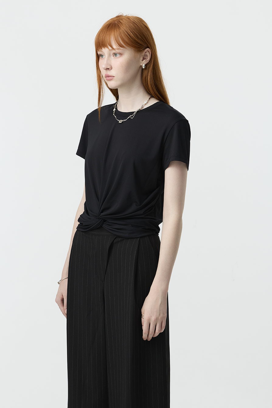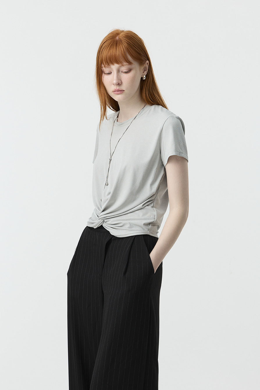 以簡約基底結合前結細節,賦予基本款T-shirt更多造型感!