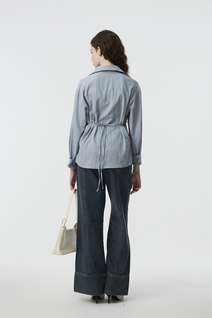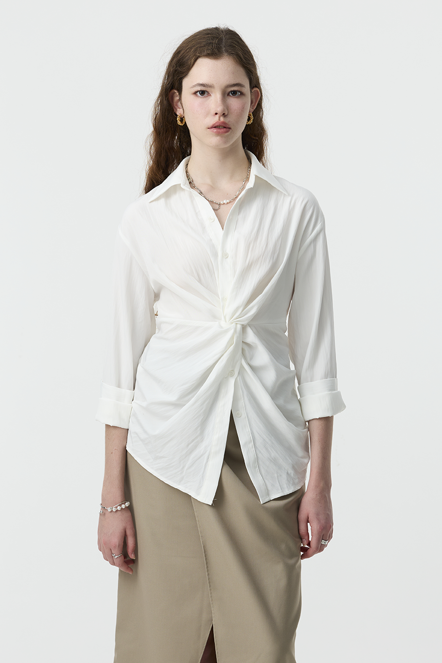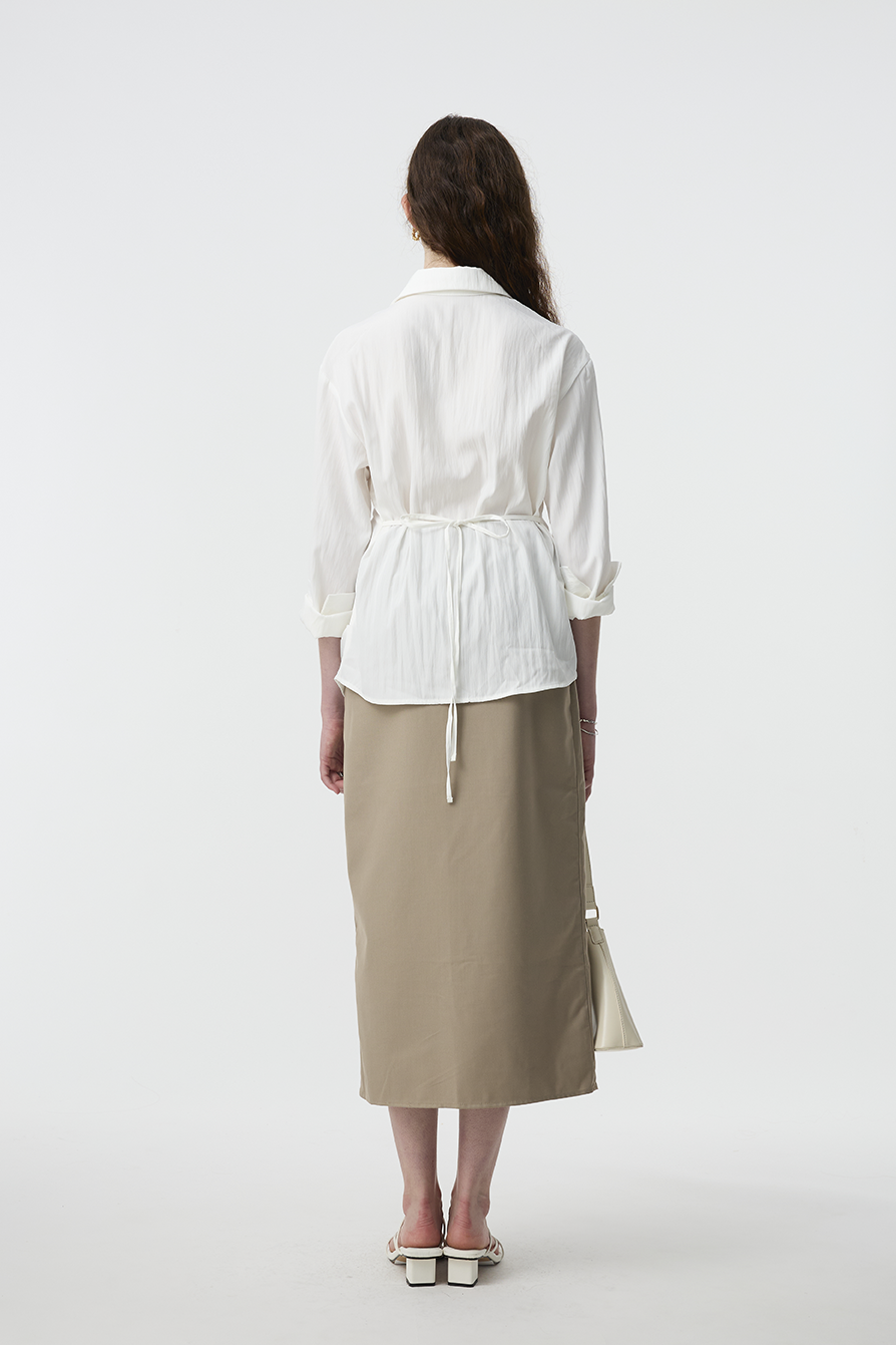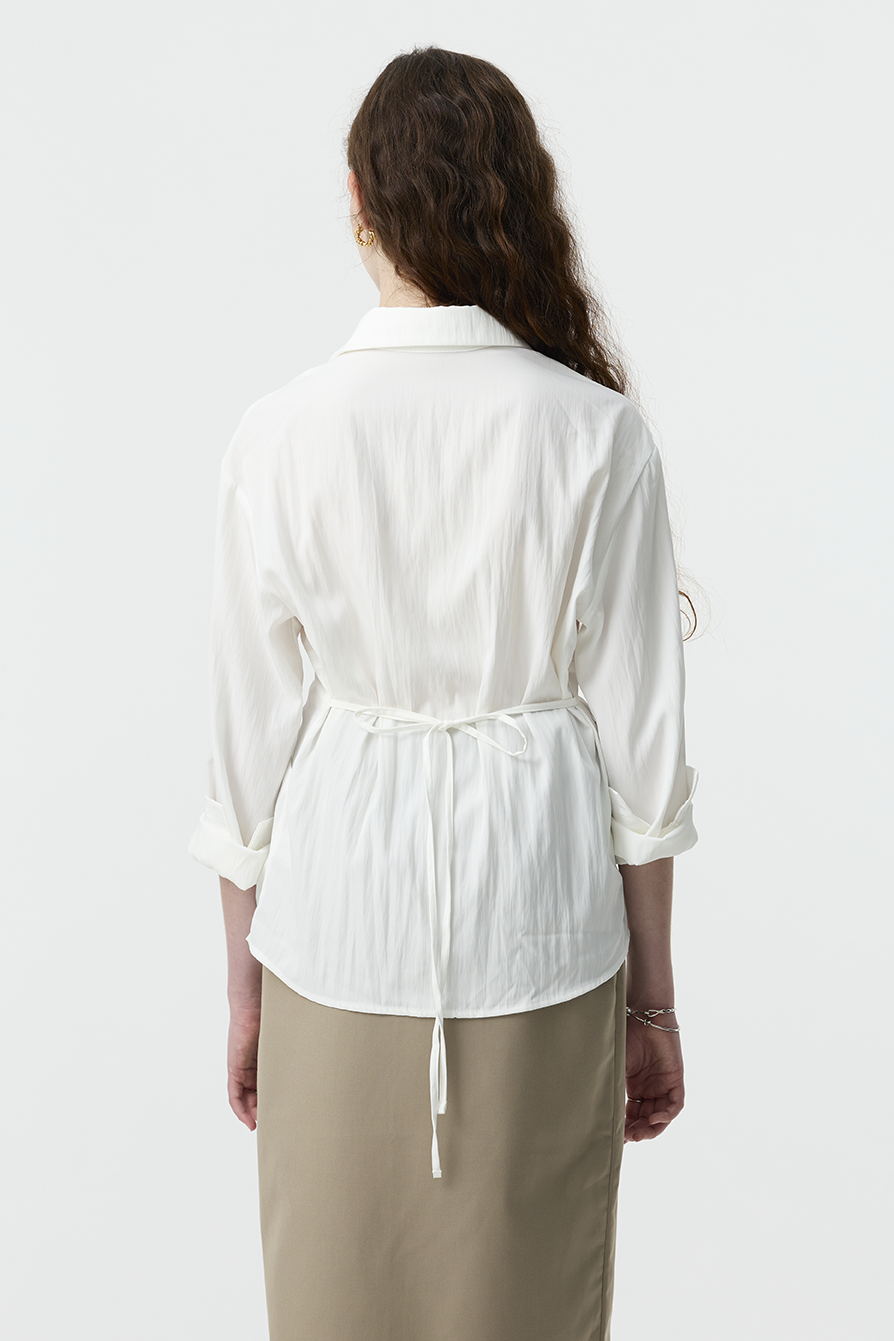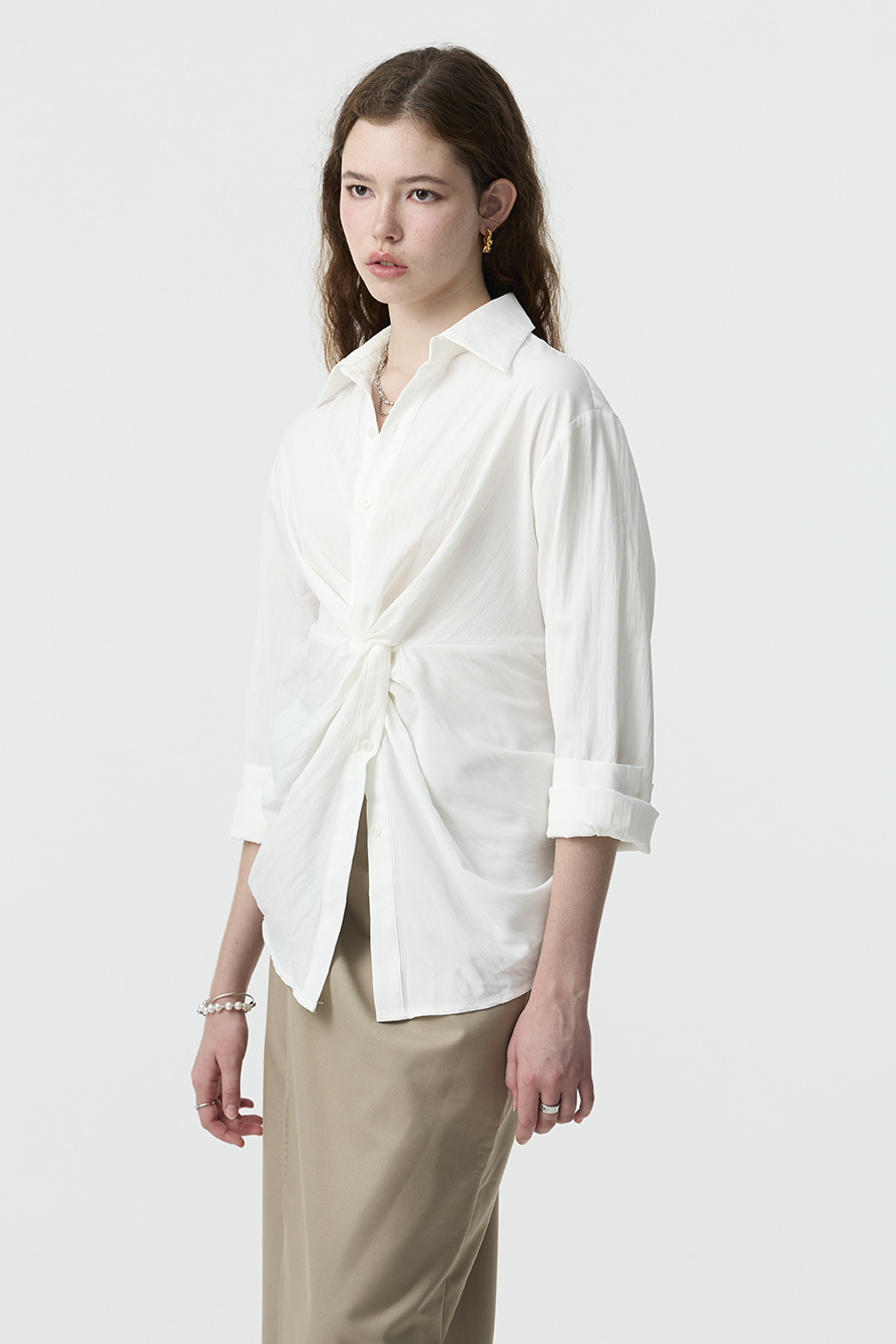 選用輕盈光澤面料,帶來適中的垂墜感與光影變化,輕鬆打造層次感。
