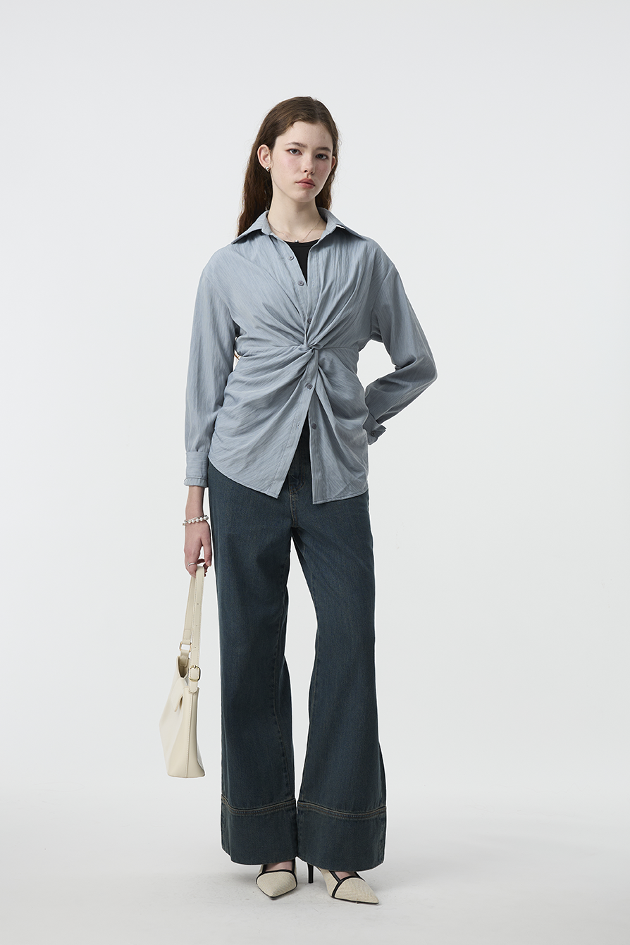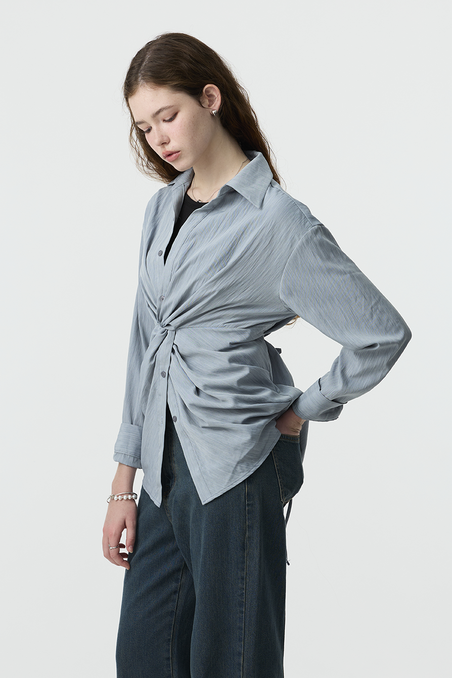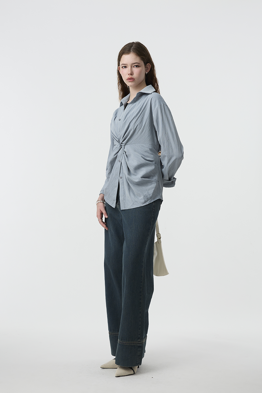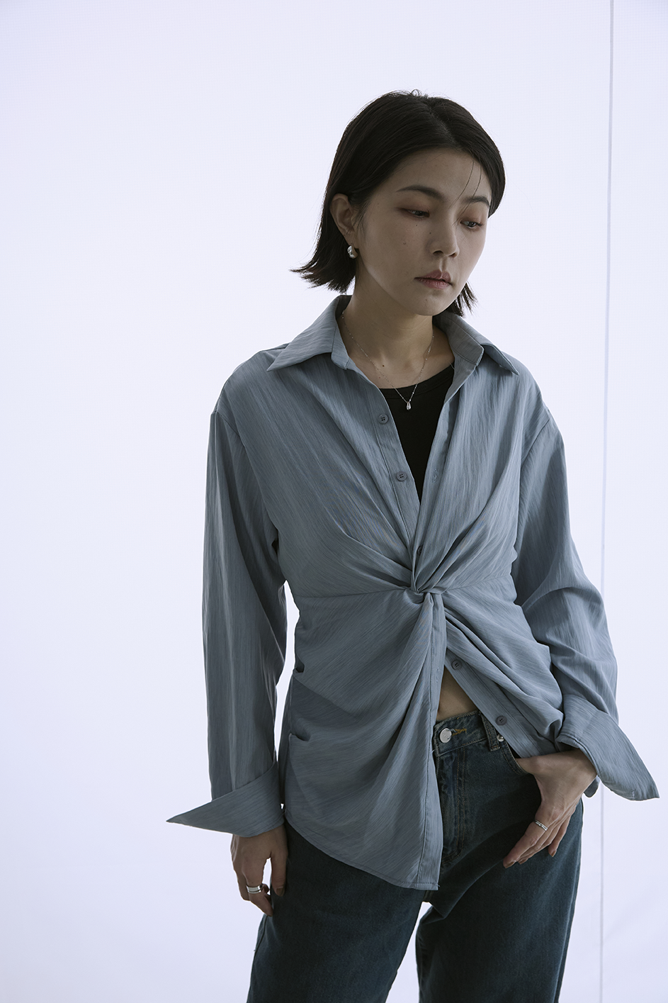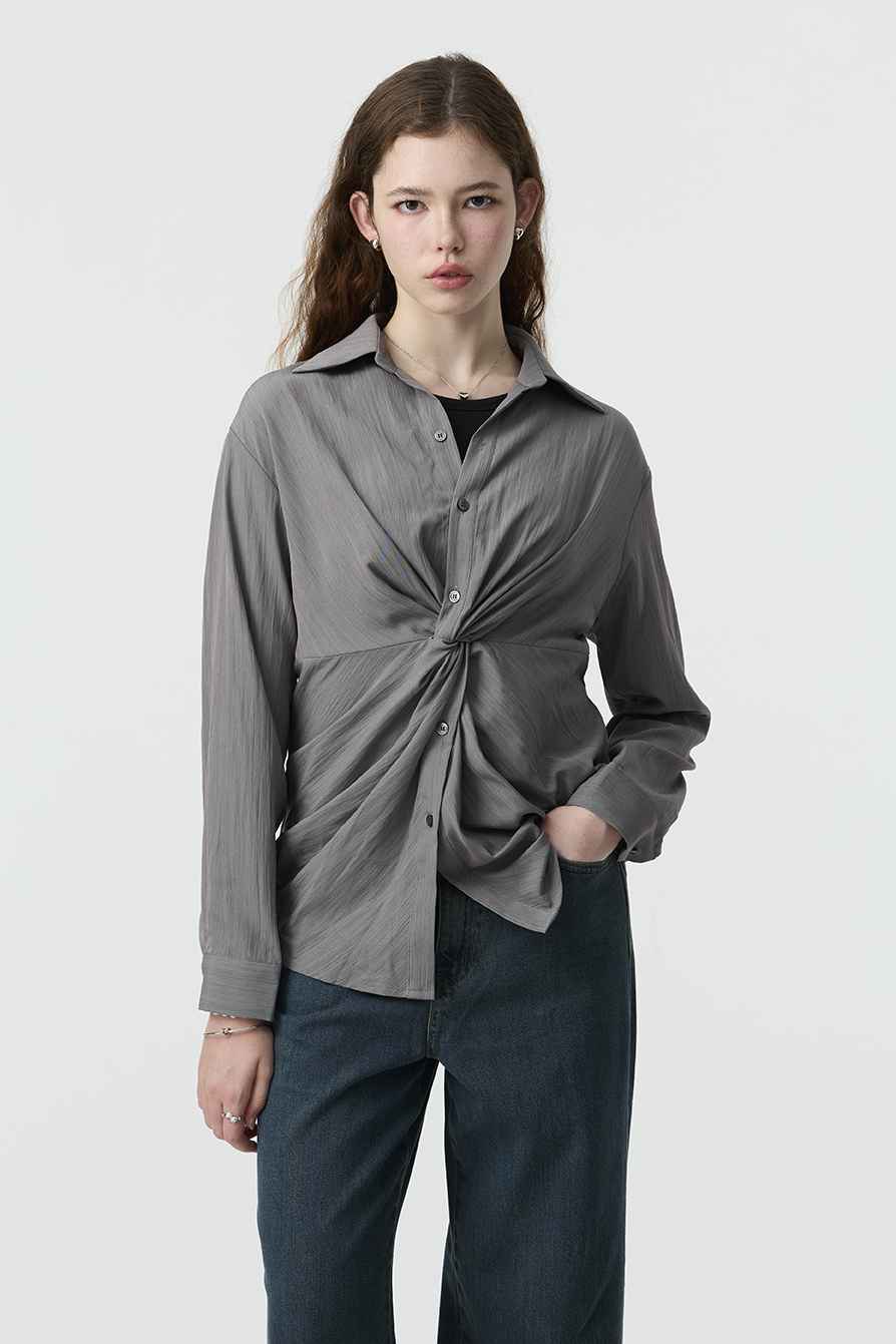 以俐落剪裁搭配前中扭結設計,巧妙修飾身形比例,展現低調卻獨特的時尚態度!
