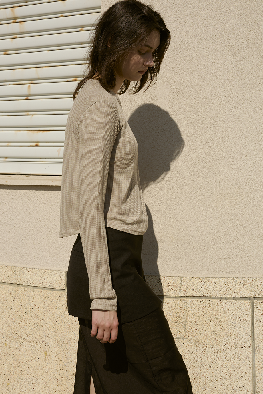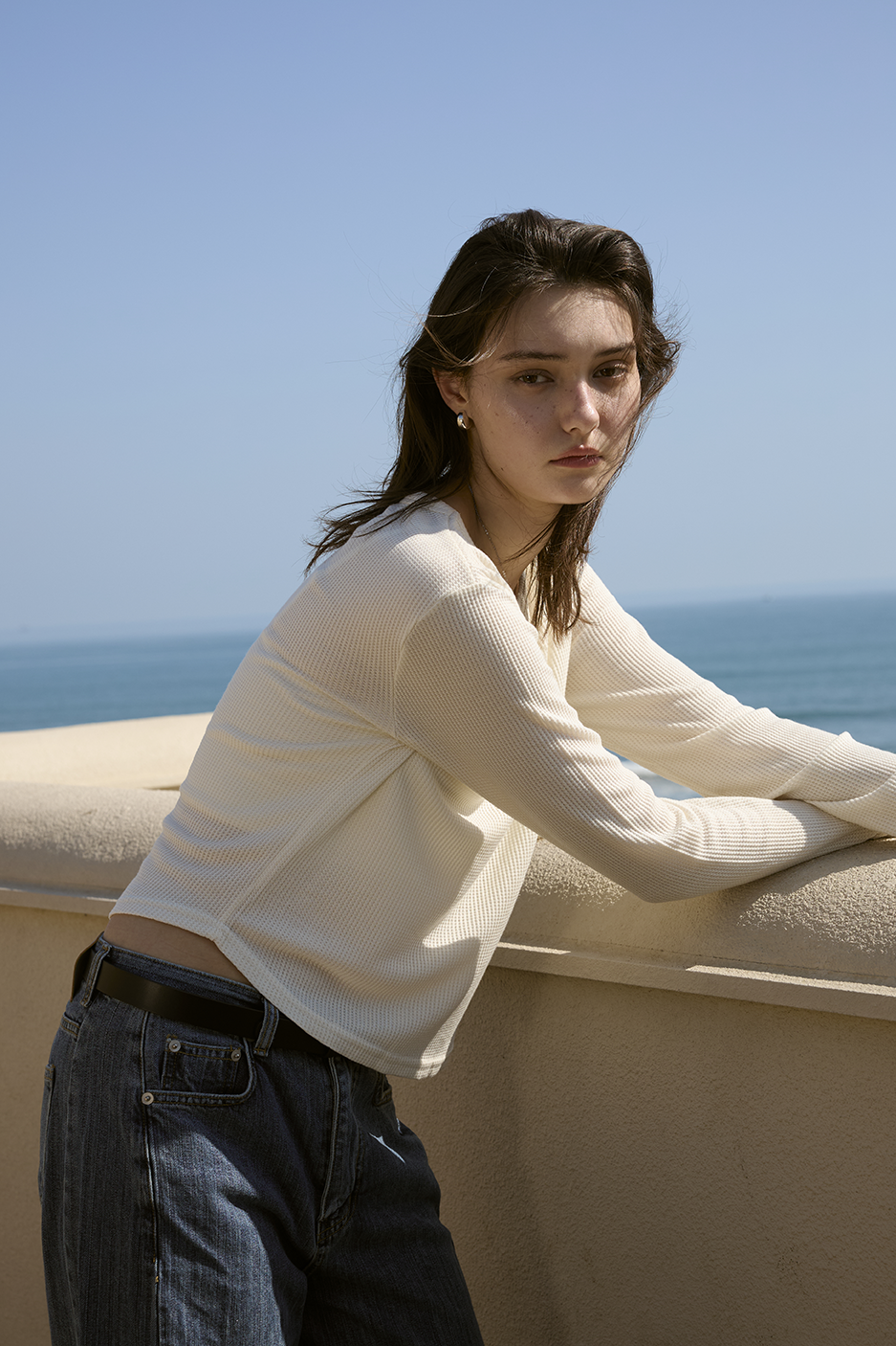 微短版剪裁修飾比例,搭配高腰下身即可拉長線條,舒適又俐落!