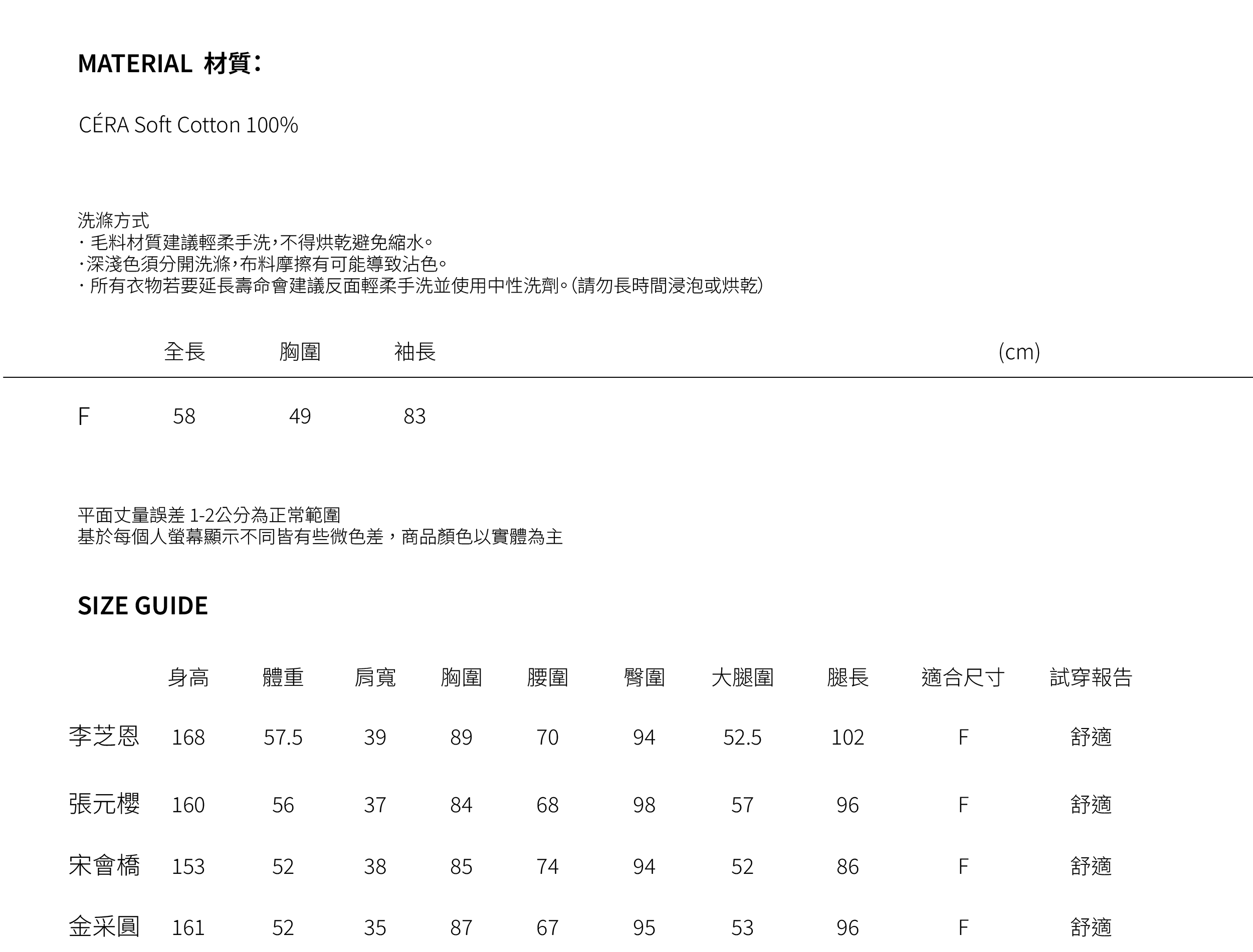 💛請告訴我們您的身型資訊!提供給您實穿照及尺寸建議💛