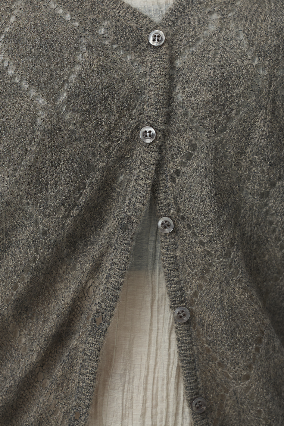 這件開襟衫以 高級羊毛混紡紗線 製成,