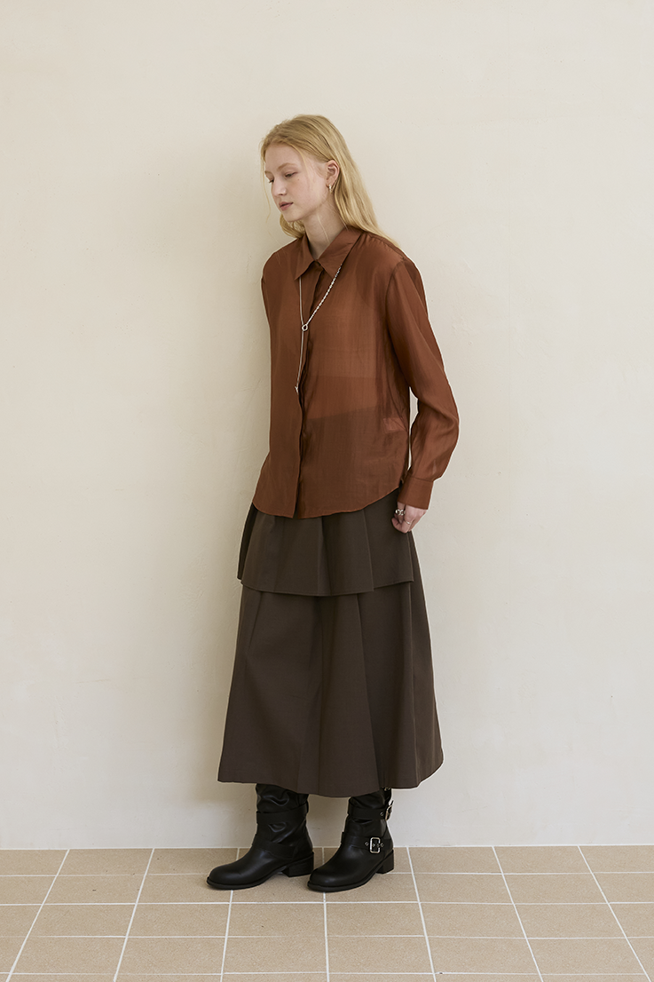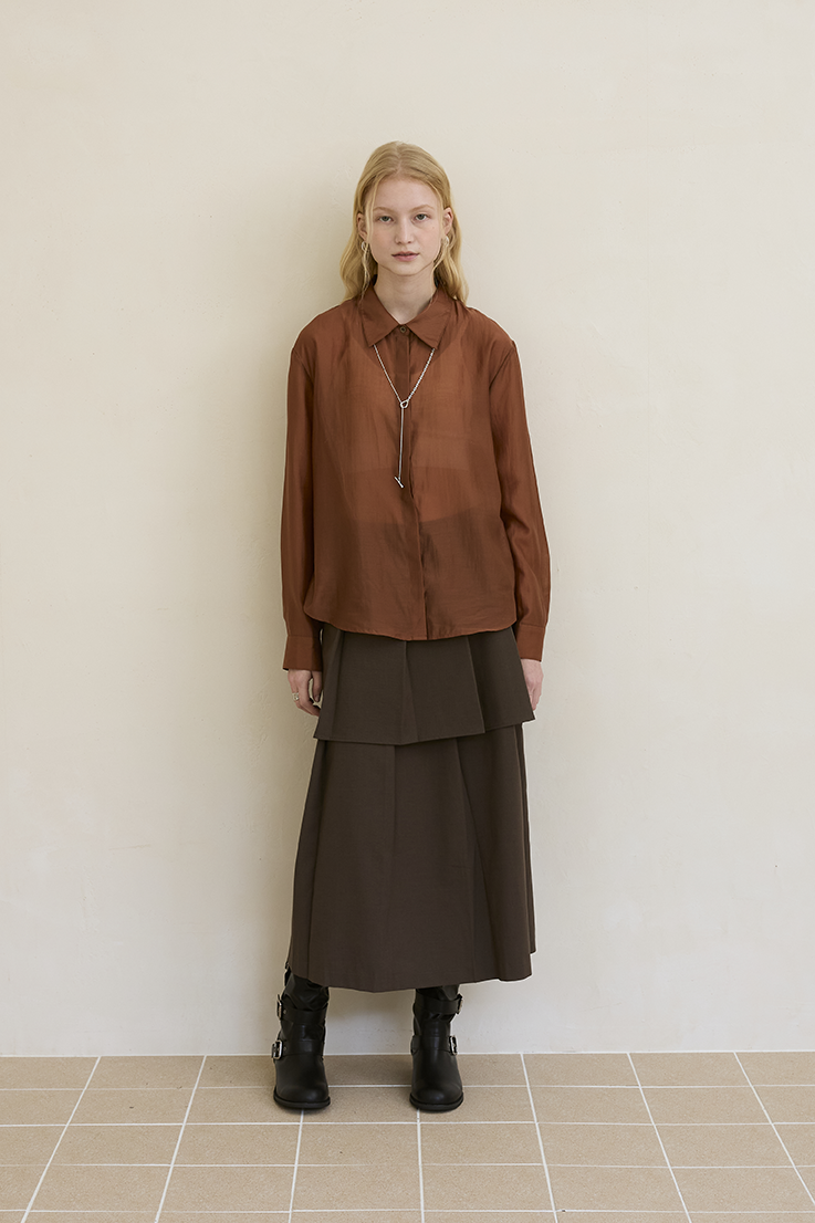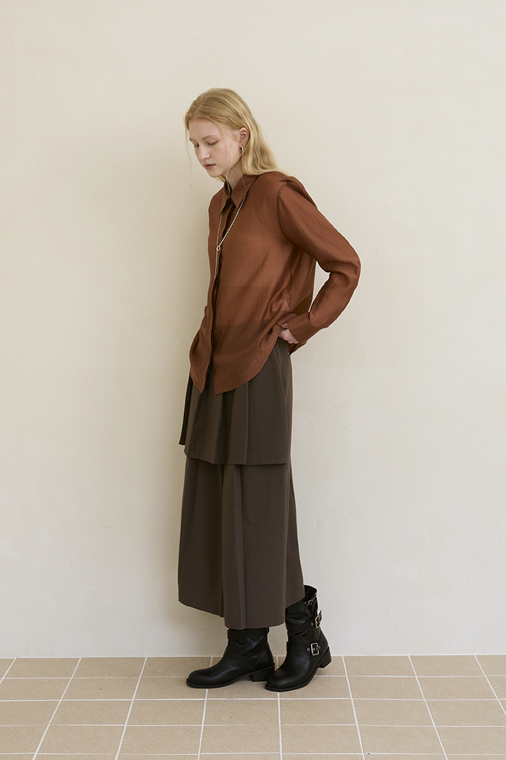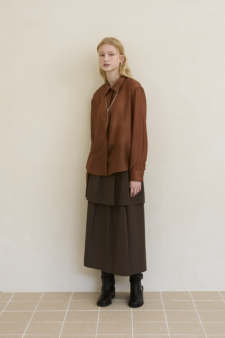 以 85% 緞光天絲 TENCEL™ 製成,呈現柔滑、細膩、帶微光澤的布面質感。布料垂度極佳,穿上後自然貼合身形,展現乾淨俐落的線條,不論單穿或作為層次襯件,都能讓整體造型更時髦。
