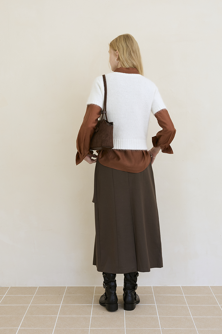 微墜的袖型與自然弧度的下擺,增添一抹溫柔的流線細節。搭配秋冬裙裝、寬褲或毛衣都非常適合!