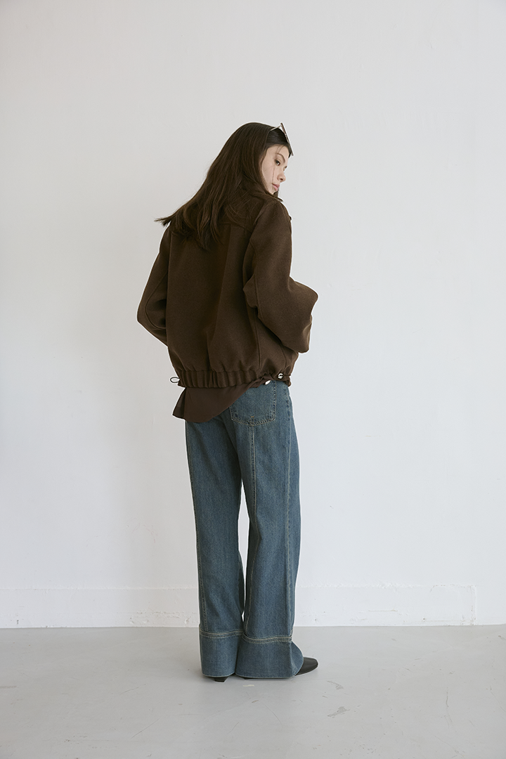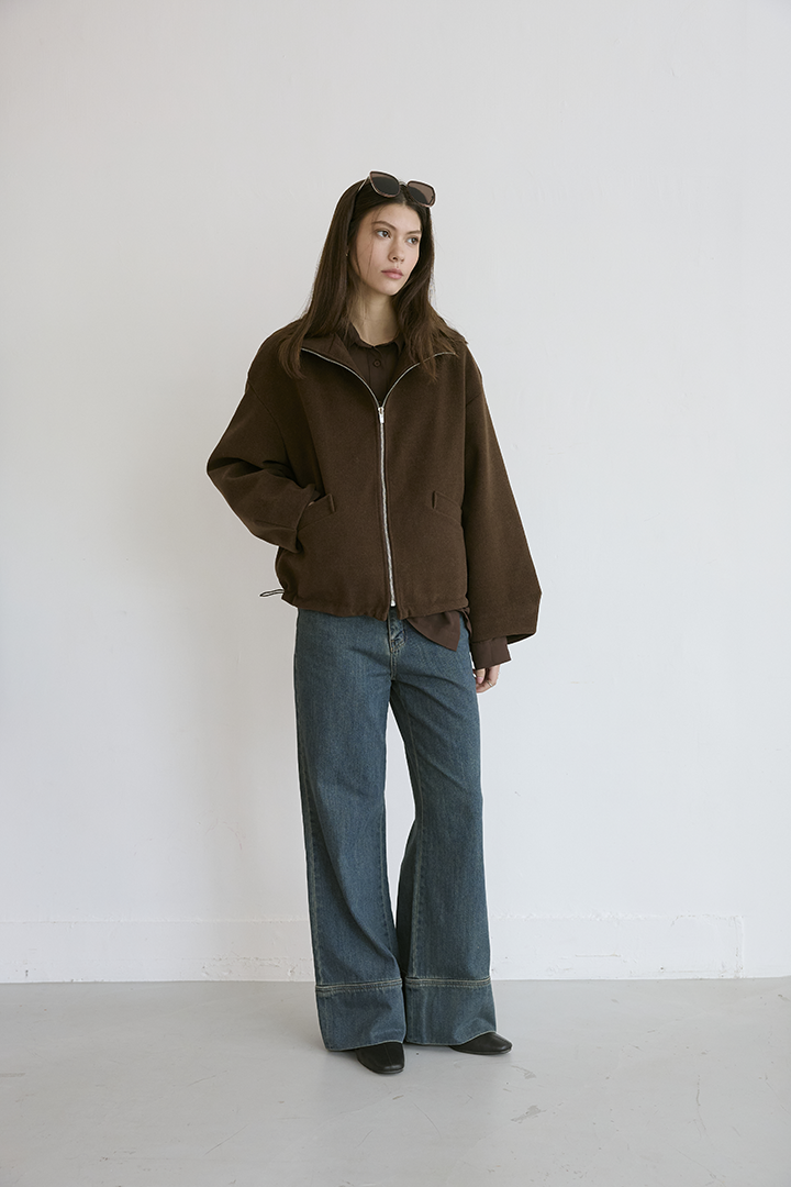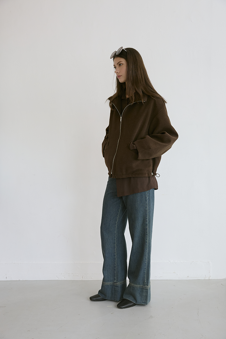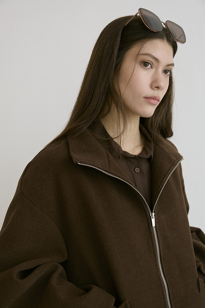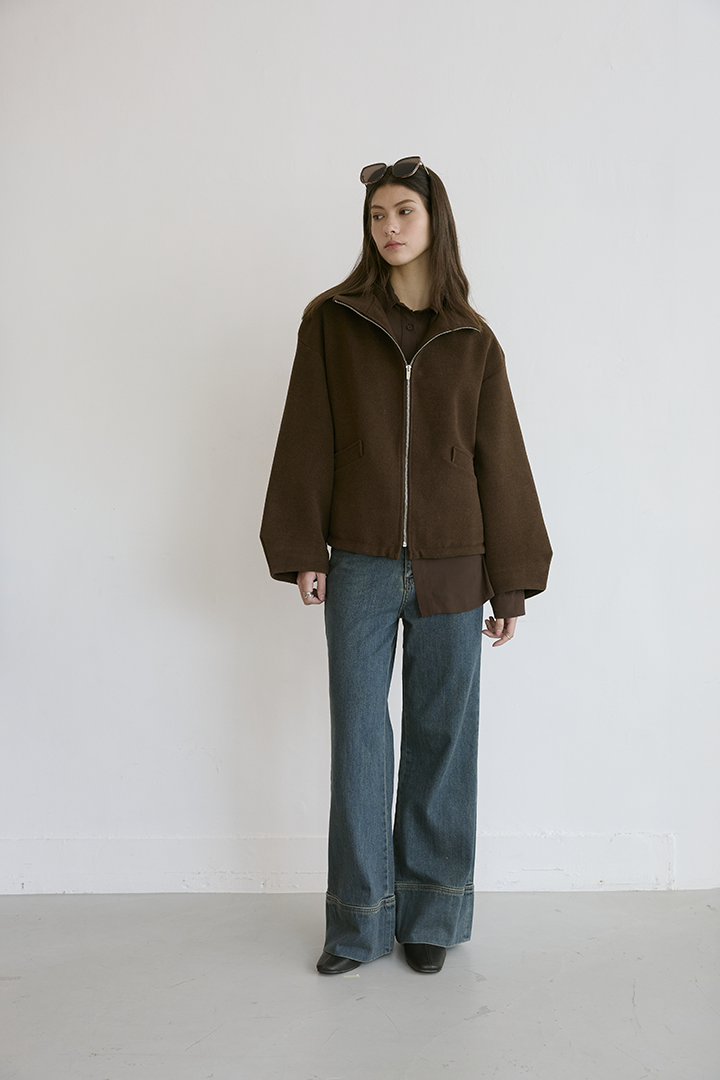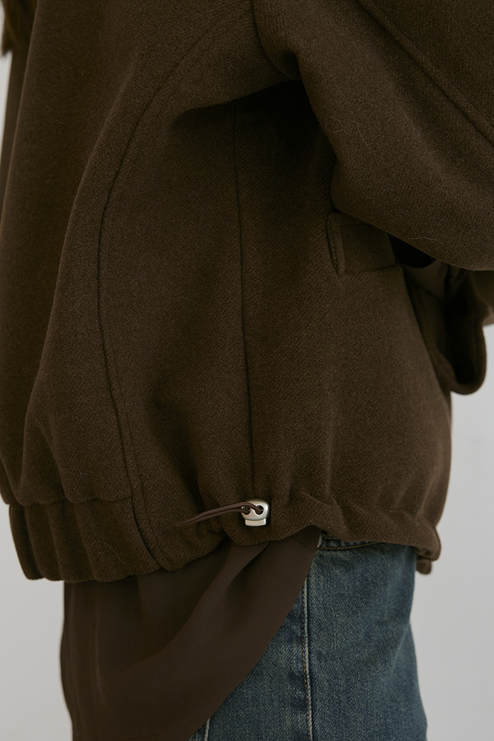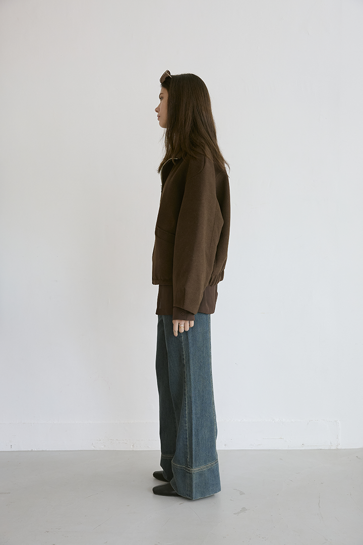 選用含羊毛的高質感混紡布料,觸摸手感紮實,穿上能明顯感受到布料的挺度與份量感,卻不顯厚重。
