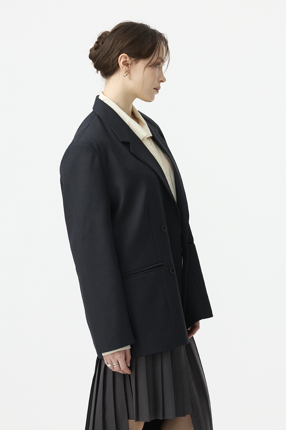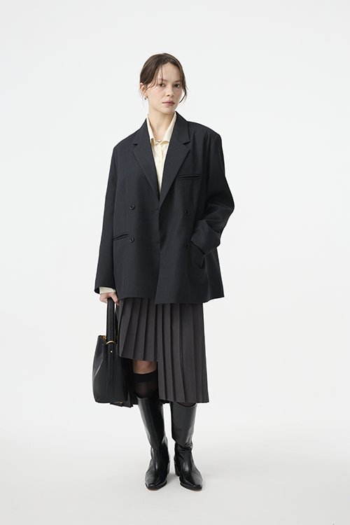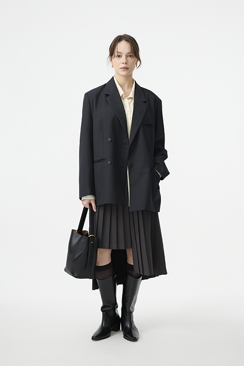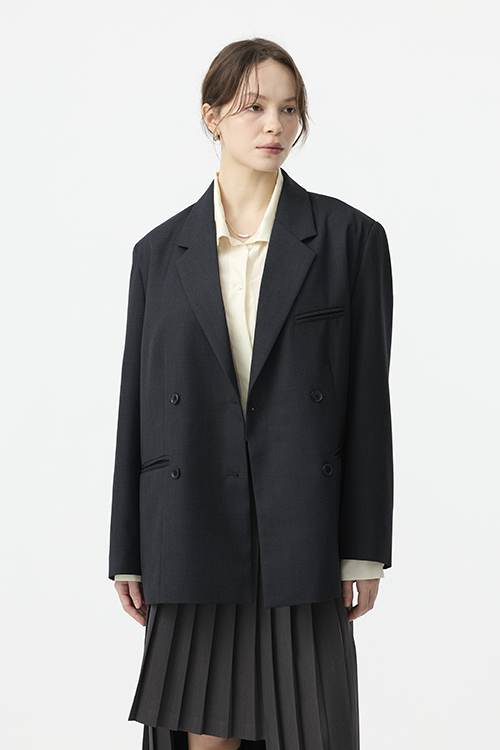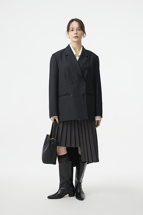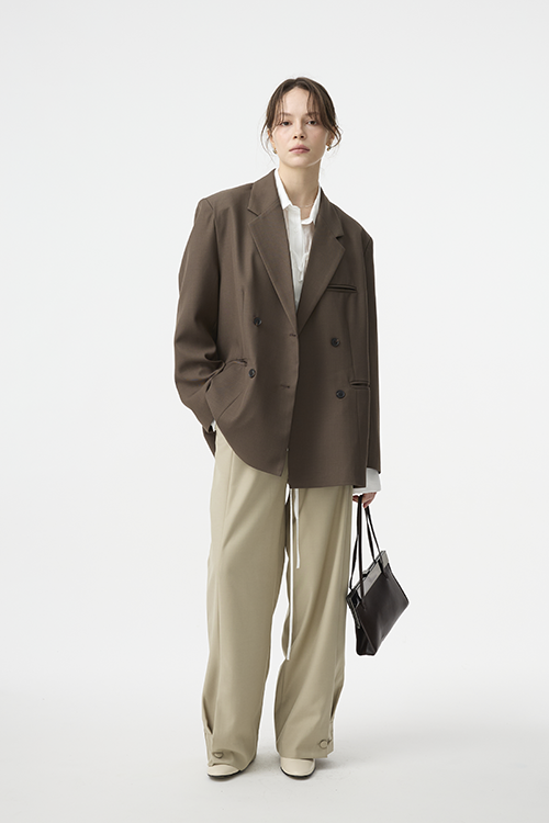 俐落翻領與雙排扣設計,延伸上半身比例,打造顯瘦輪廓。