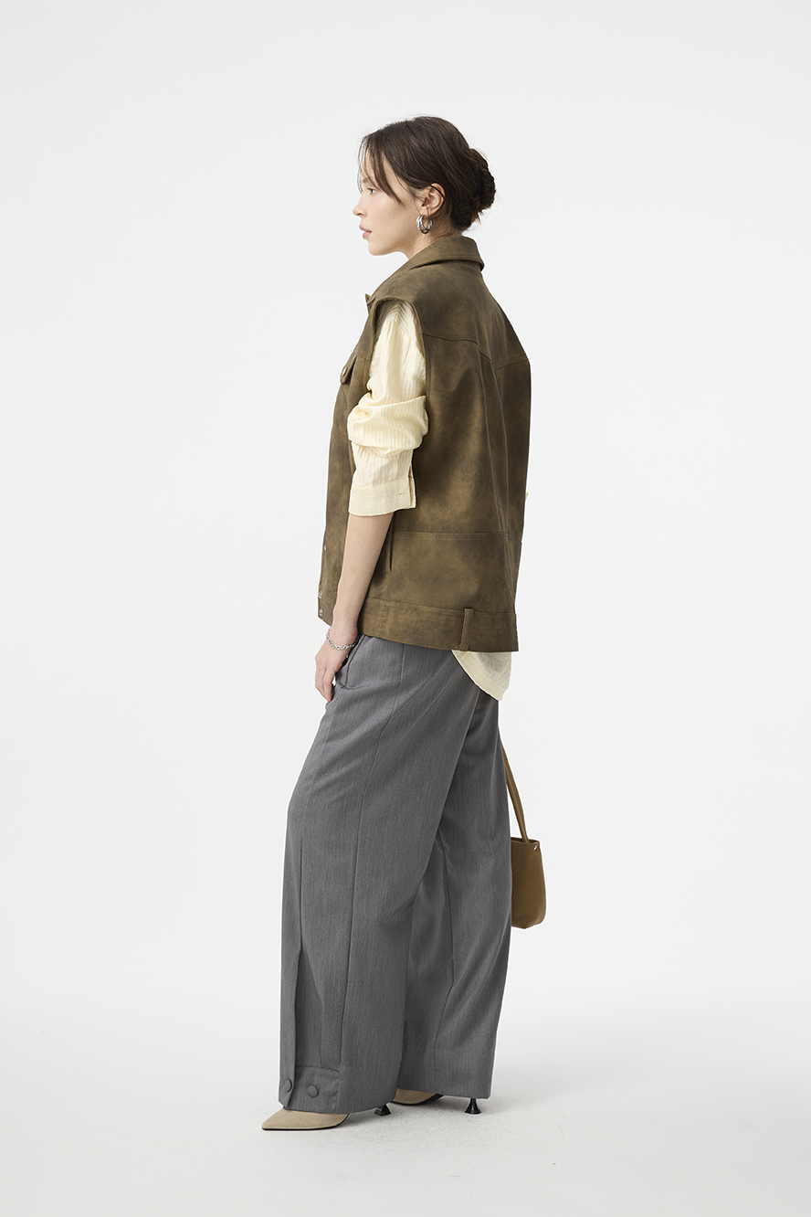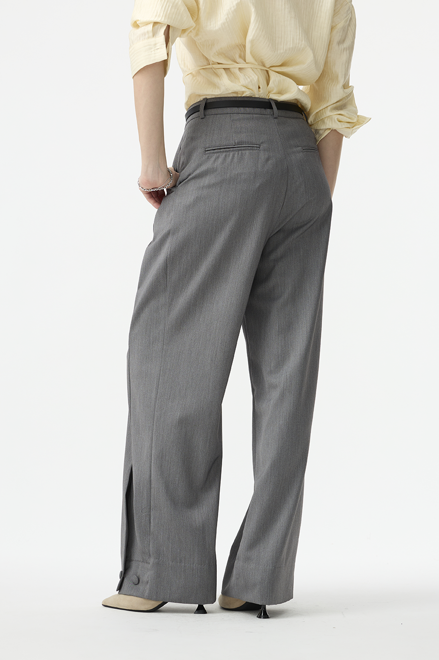 低調卻具有辨識度的設計亮點,為極簡西裝褲增添個性層次。