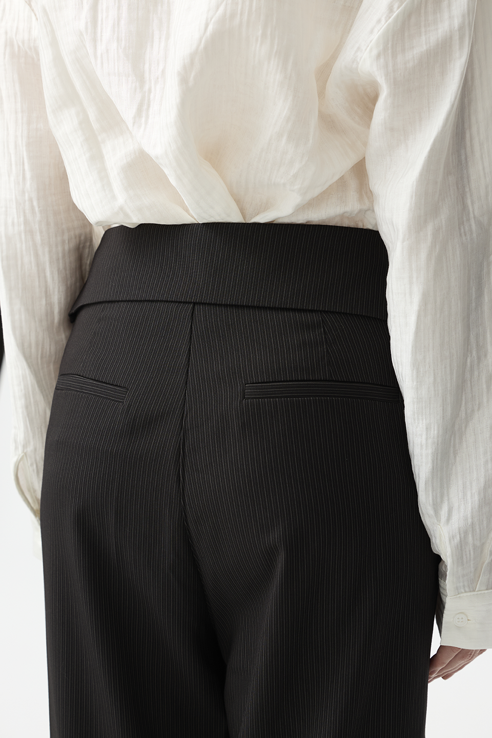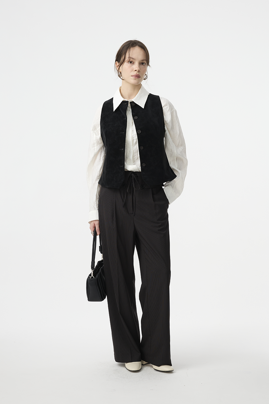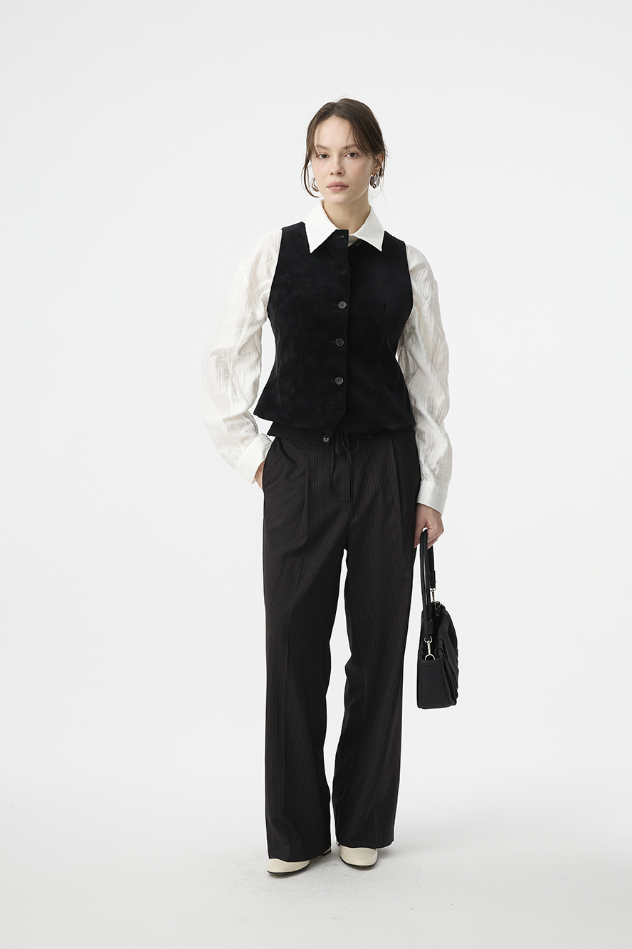 細緻直紋自然拉長腿部比例,有效修飾腿型,讓整體視覺更修長筆直。