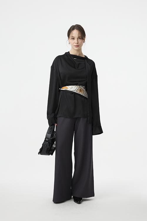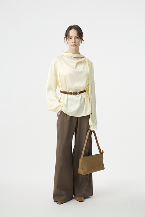 布料自然垂落,修順身形線條,讓整體視覺更乾淨流暢。