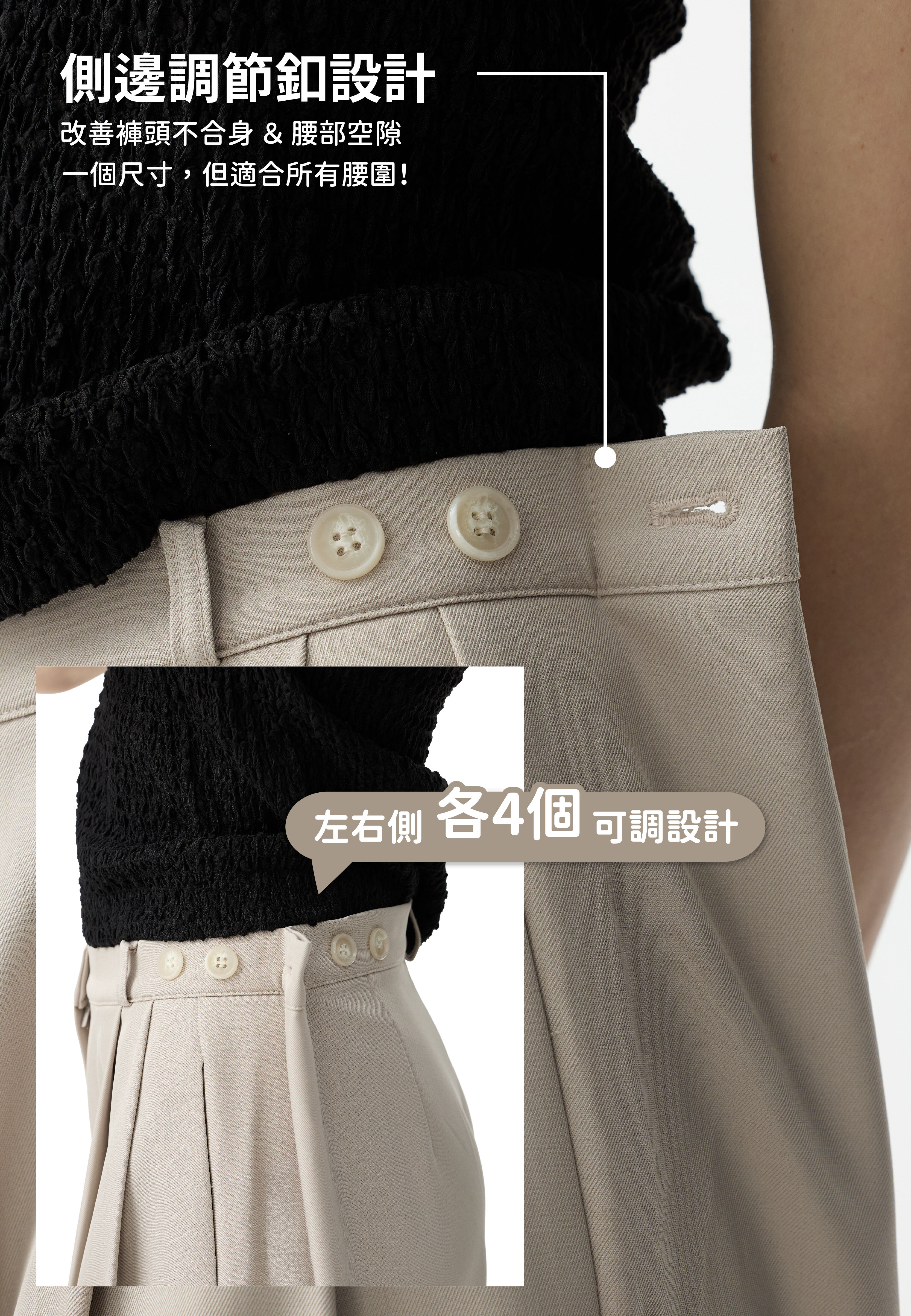 左右各4個可調設計,一個尺寸,但適合所有腰圍!,改善褲頭不合身與腰部空隙問題,打造俐落合身比例。