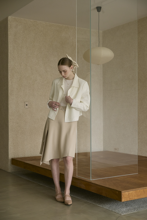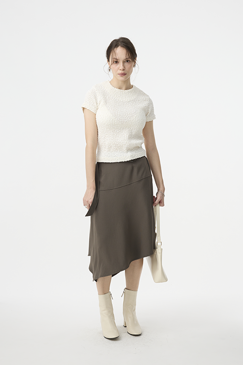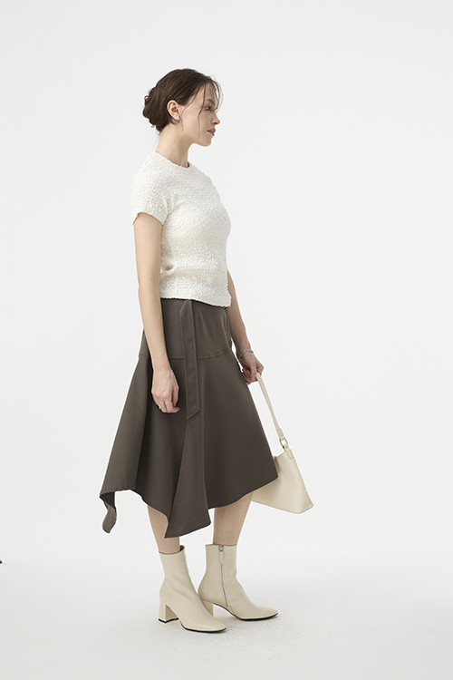 流線裙擺創造縱向延伸效果,改善下半身比例,讓整體更顯高挑。