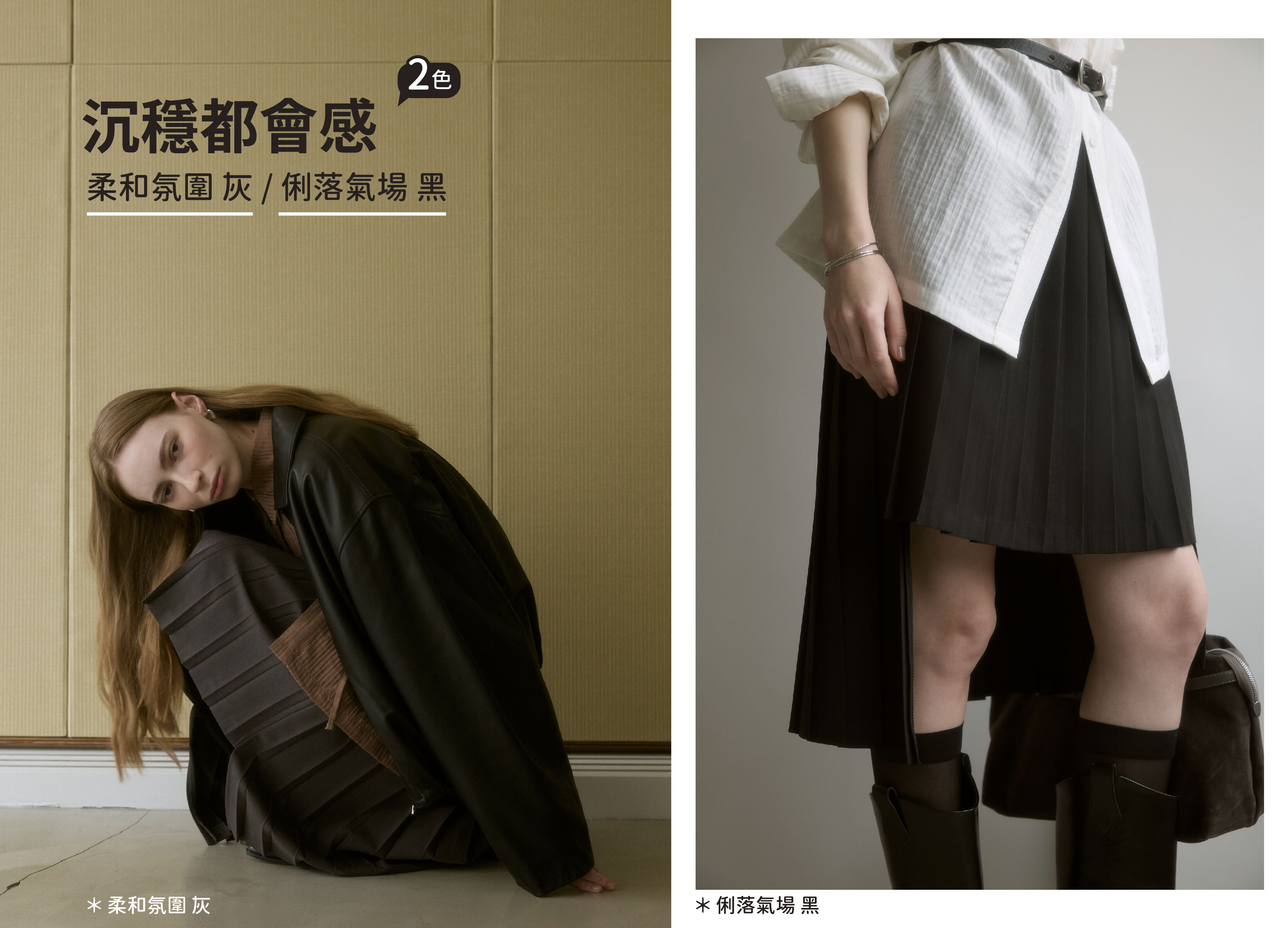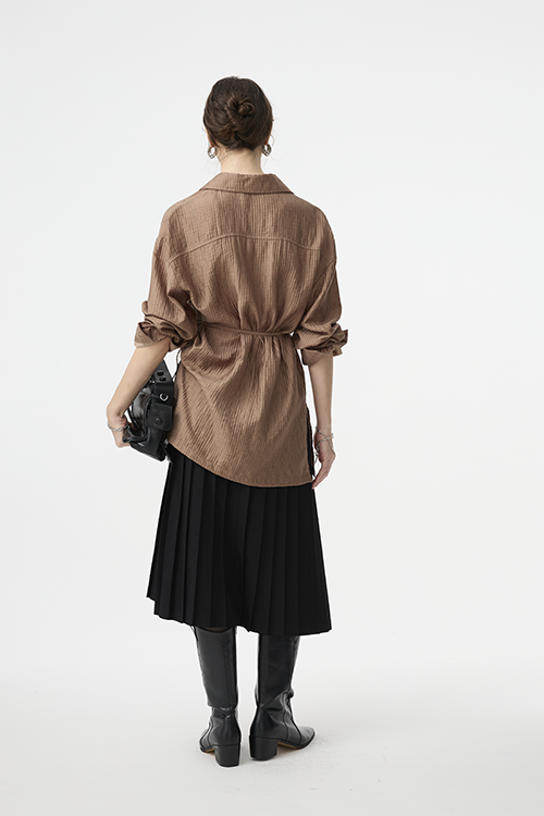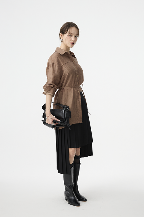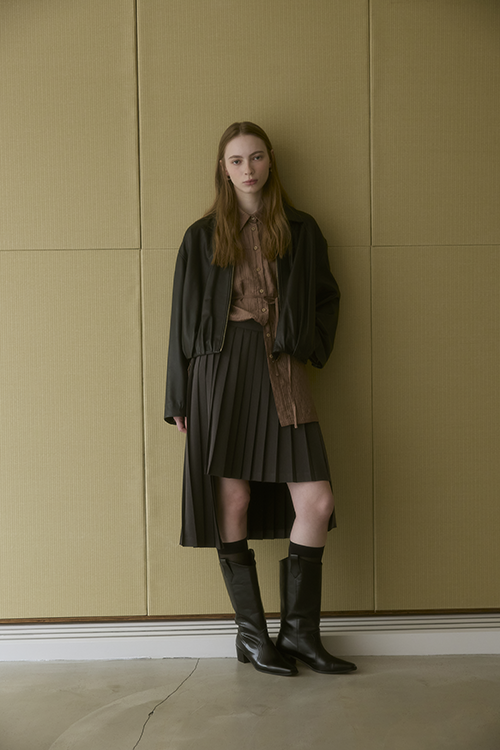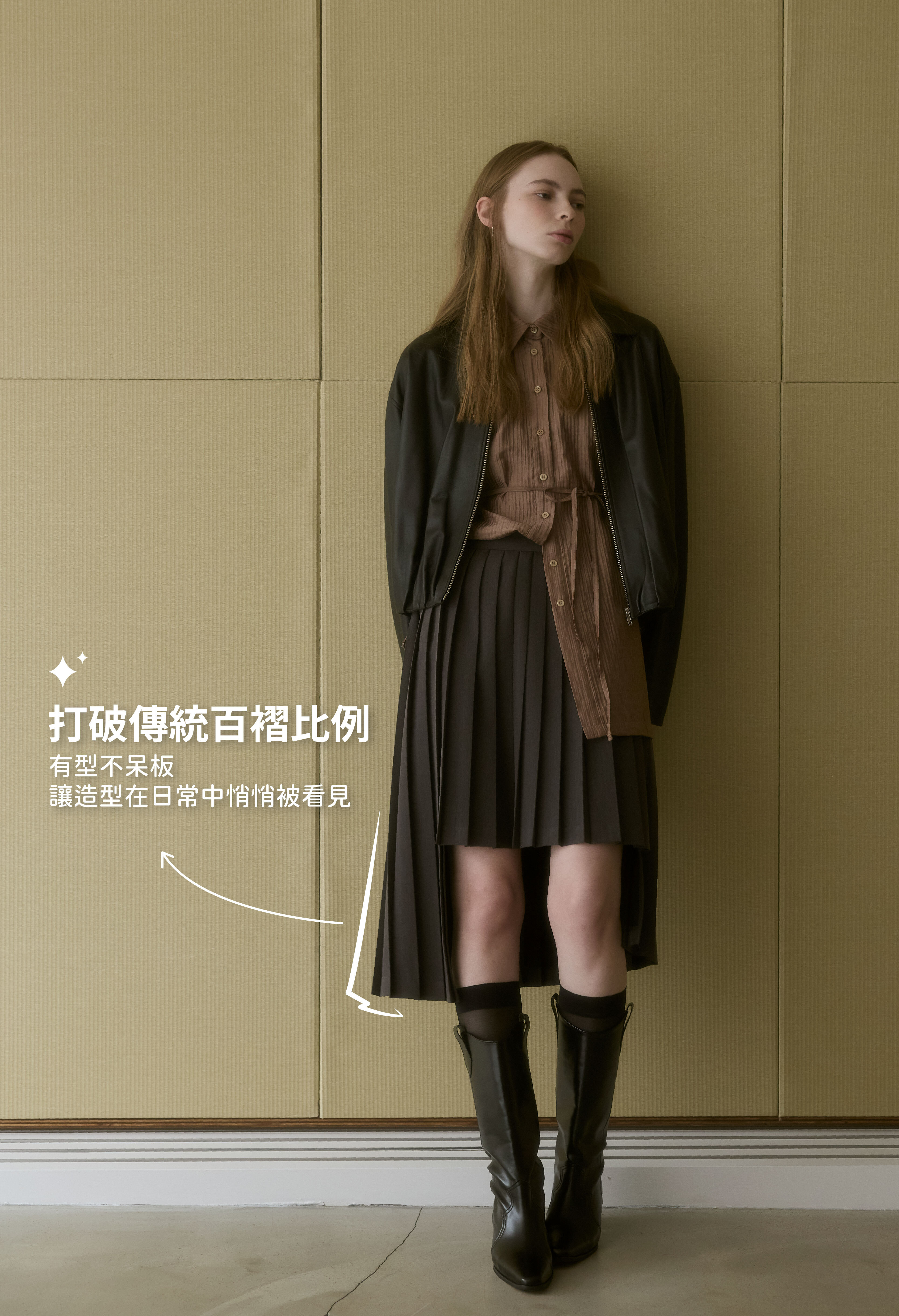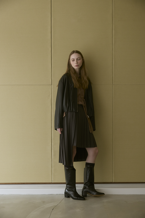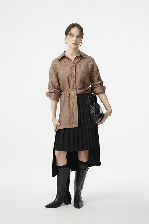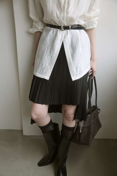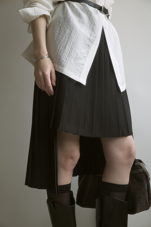 百褶自然展開,有效弱化臀腿肉感,讓腿部線條更俐落修長。