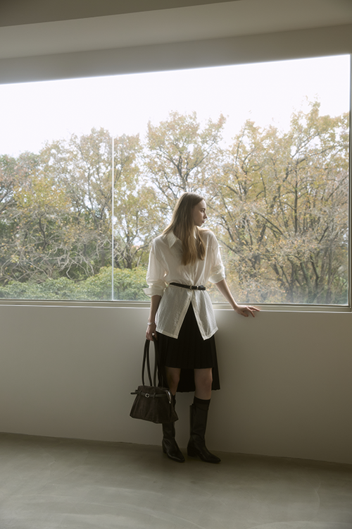 面料自然垂落,修順身形線條,維持輕盈與結構感。