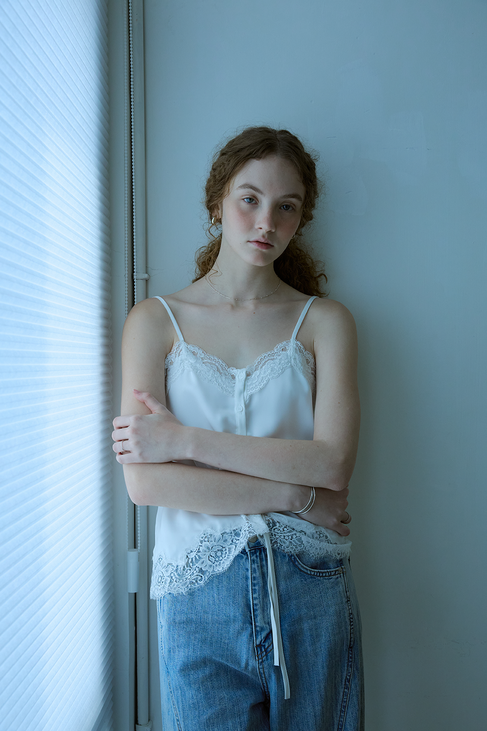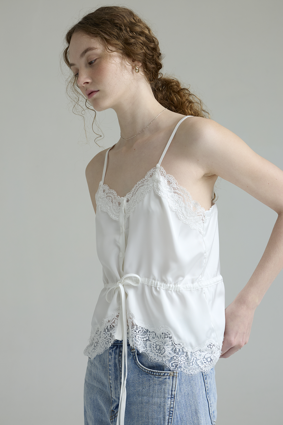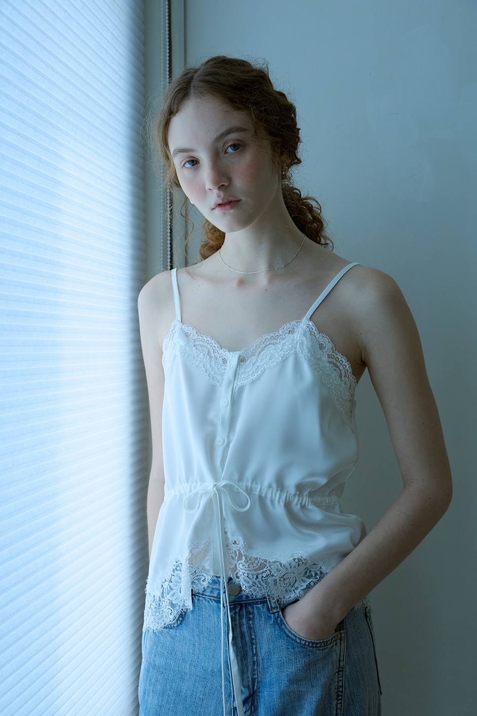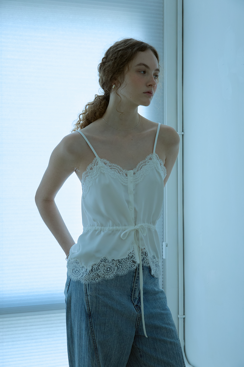 多層次穿搭核心:極具辨識度的外露蕾絲設計,非常適合作為西裝外套或針織衫內的層次點綴。