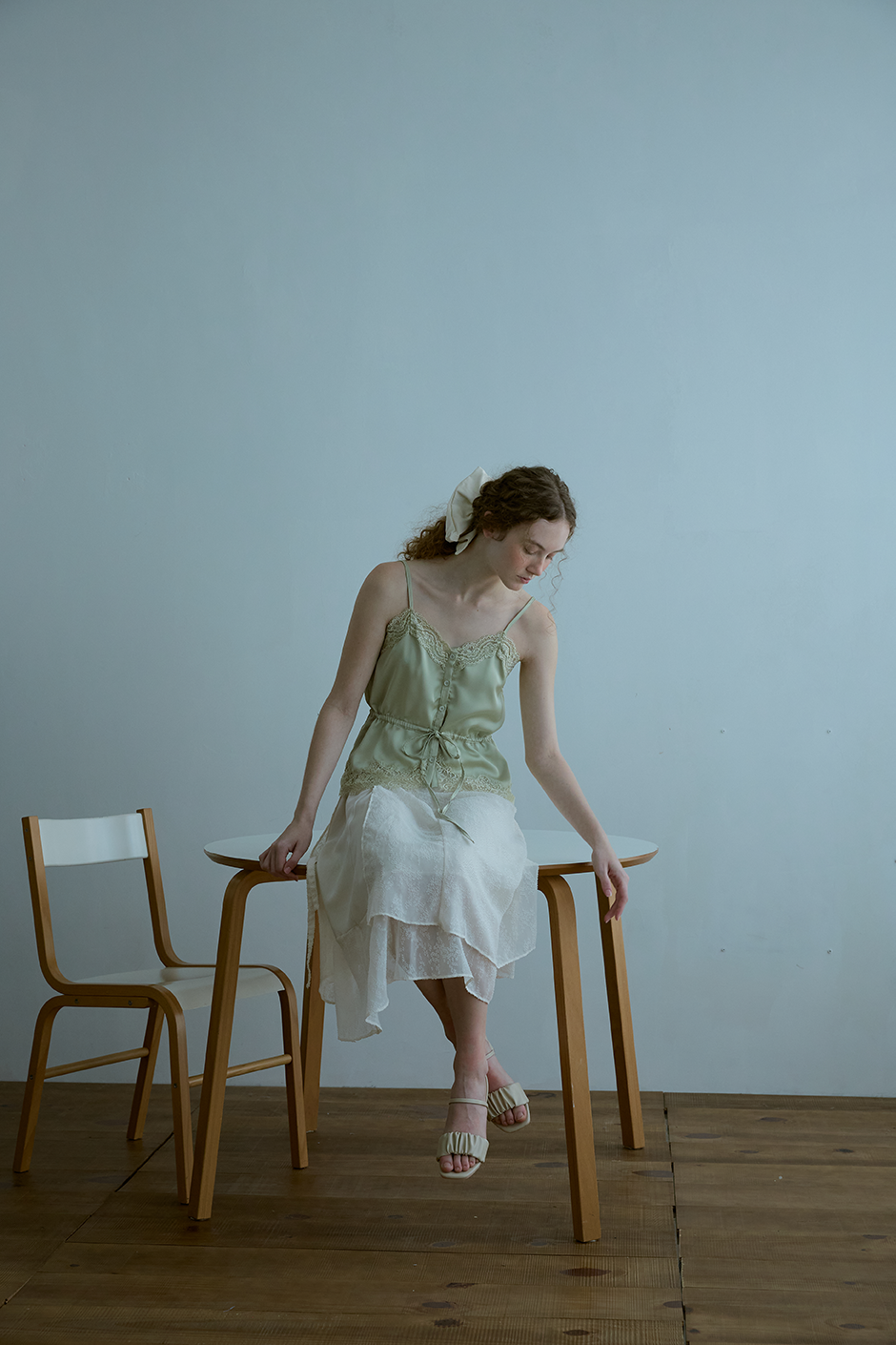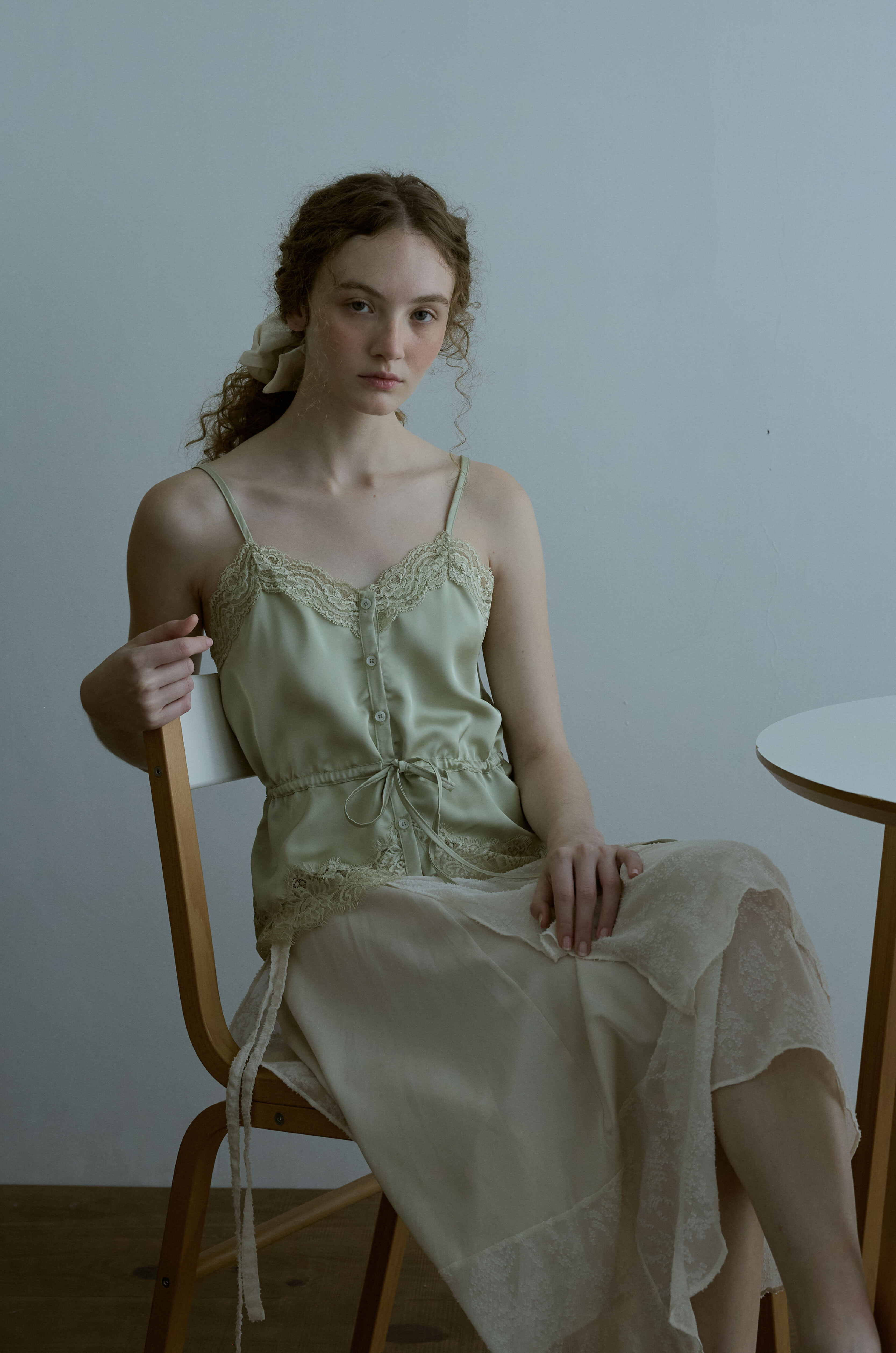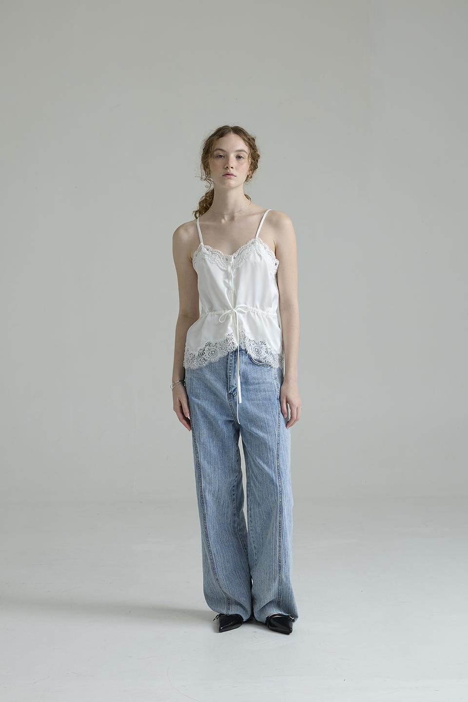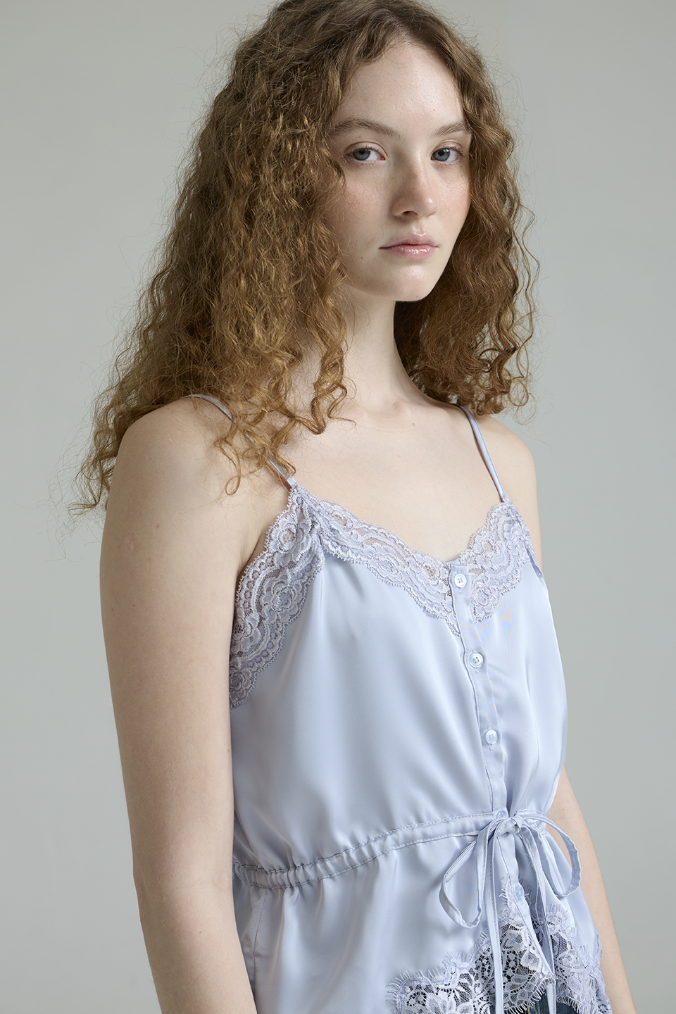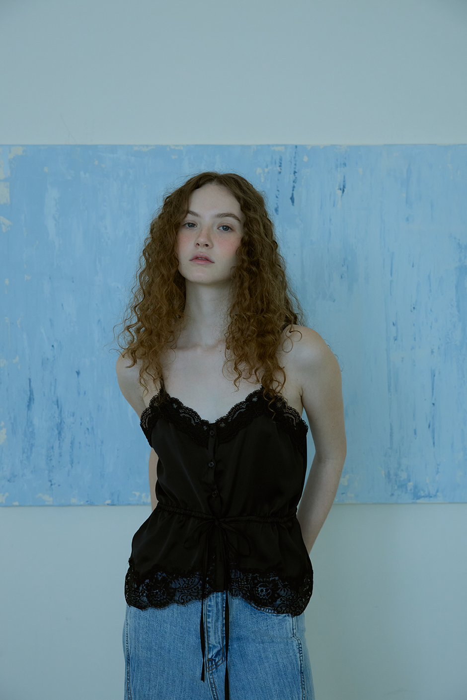 多層次穿搭核心:極具辨識度的外露蕾絲設計,非常適合作為西裝外套或針織衫內的層次點綴。