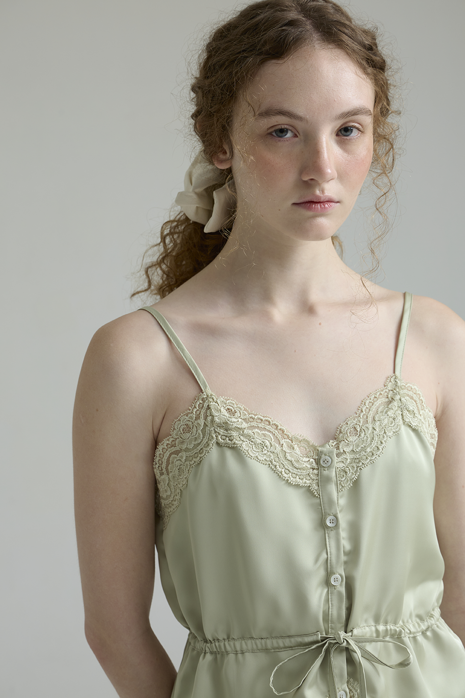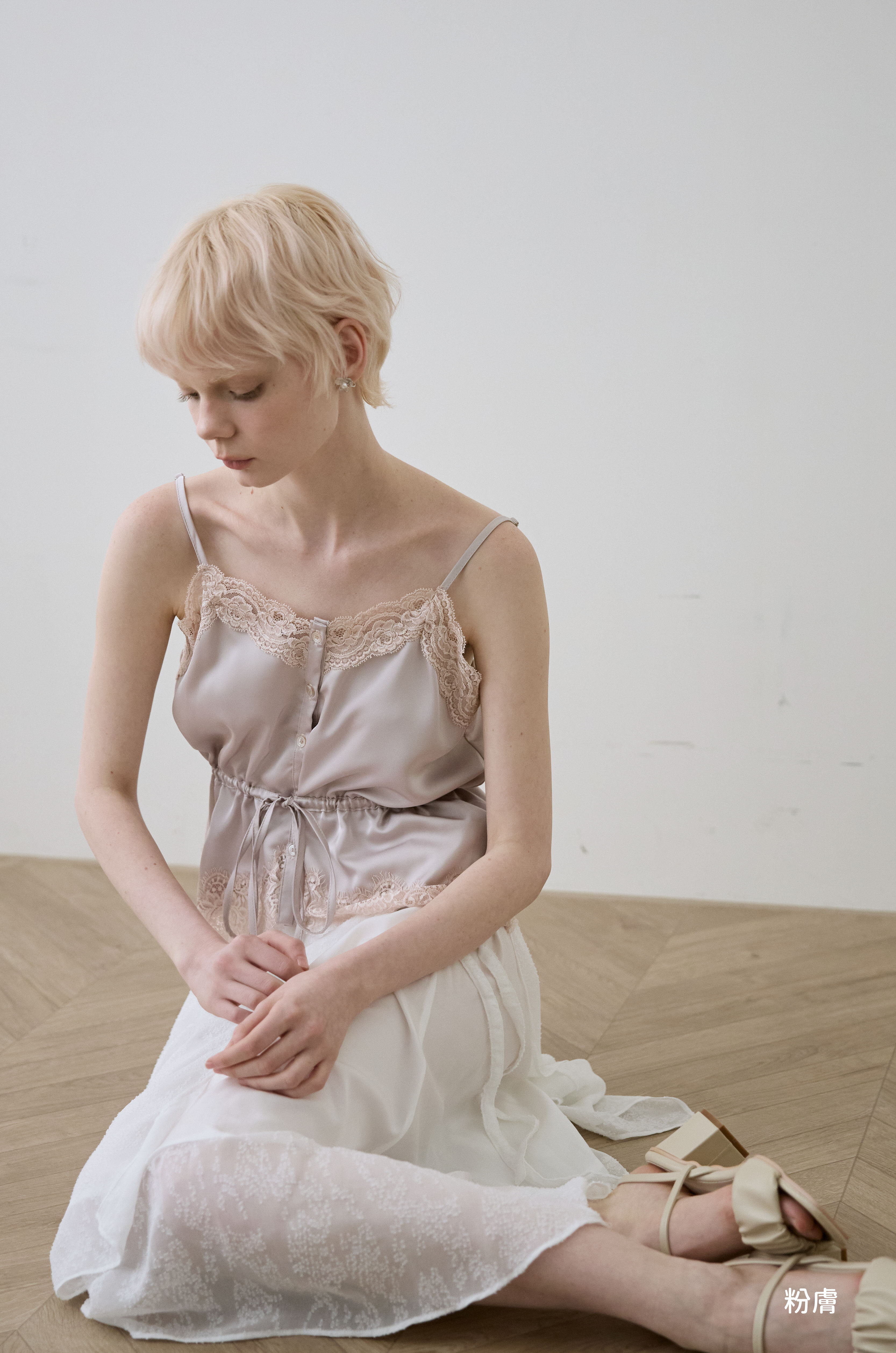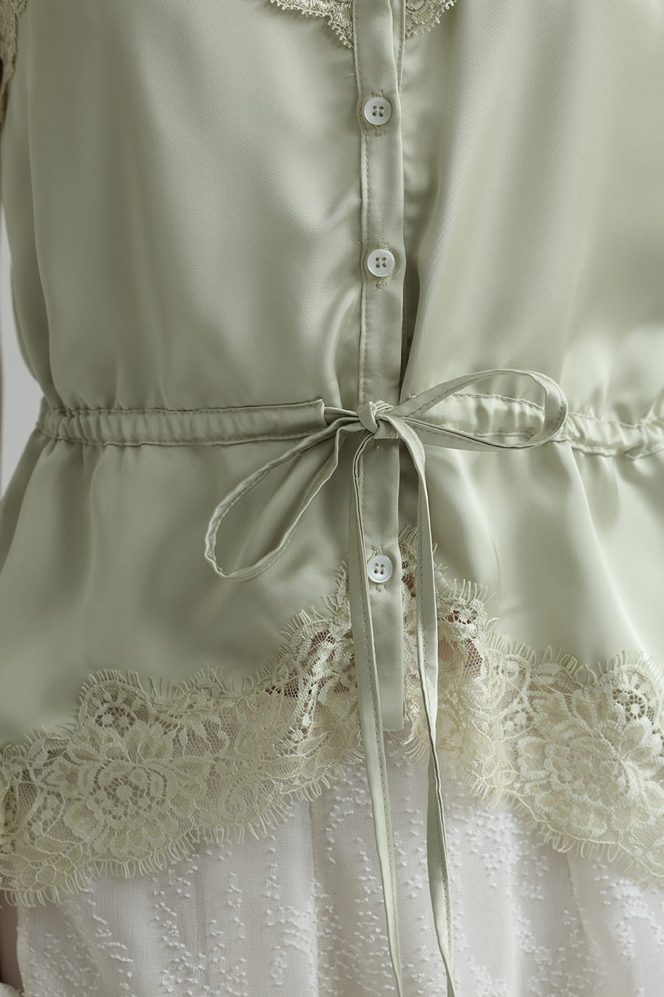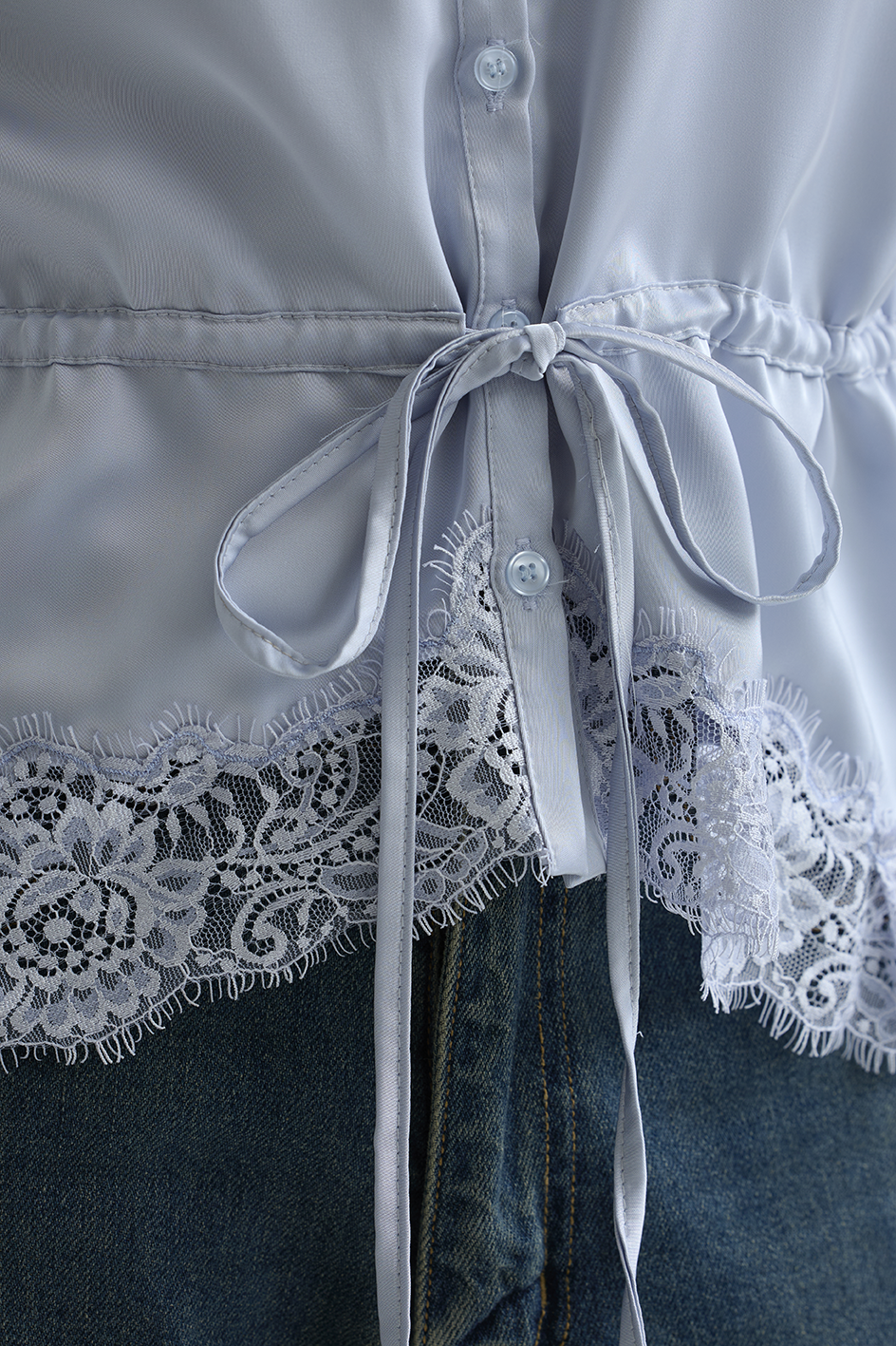 精緻蕾絲拼接:領口飾以立體刺繡蕾絲,透過微透視細節豐富層次。