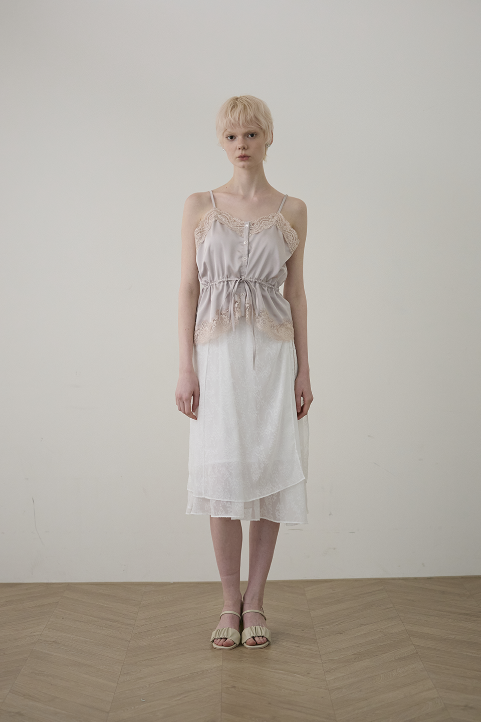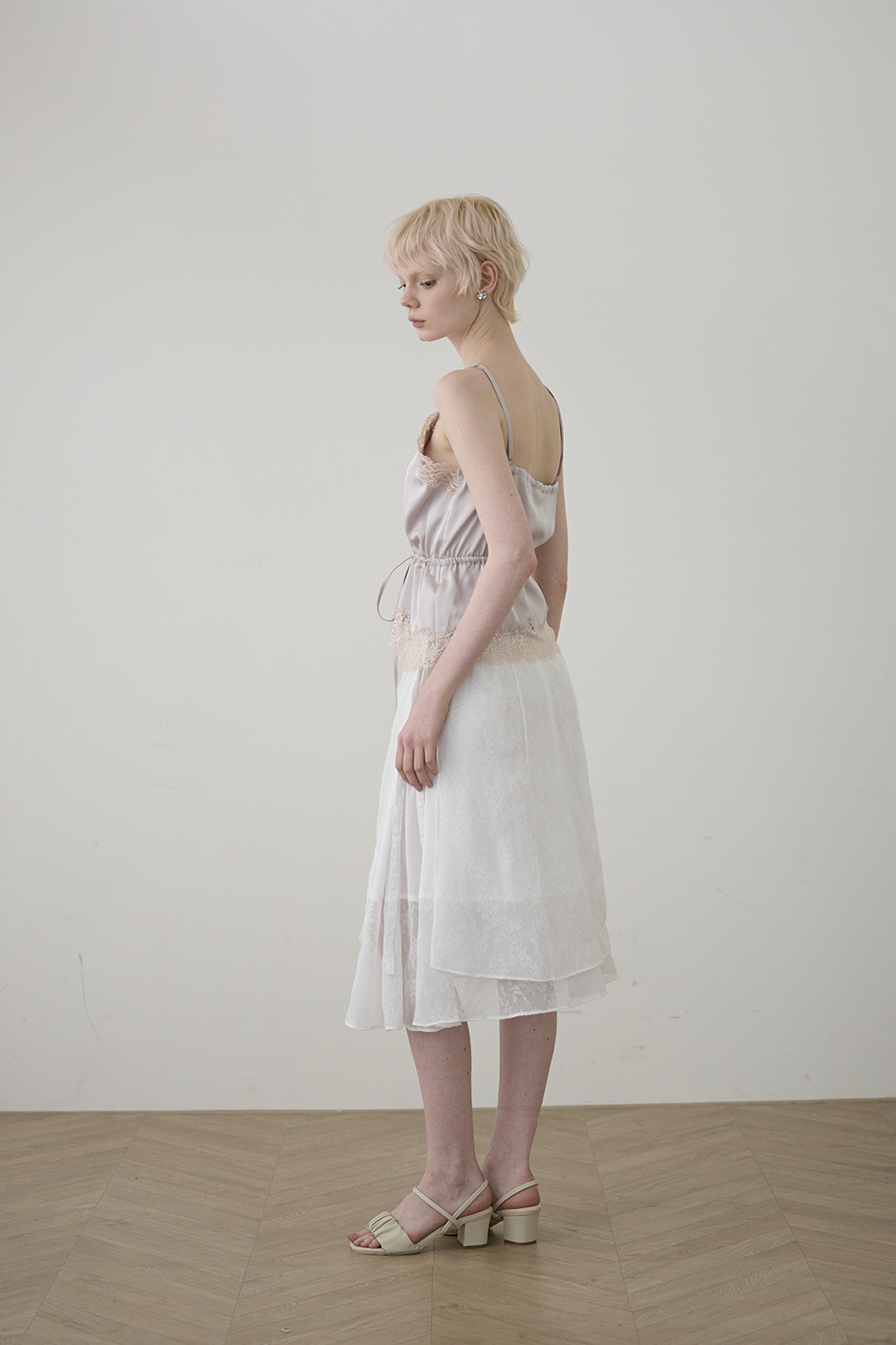 雙重材質對比:霧面蕾絲與亮面緞光的完美交織,在視覺上產生高級的光影律動。