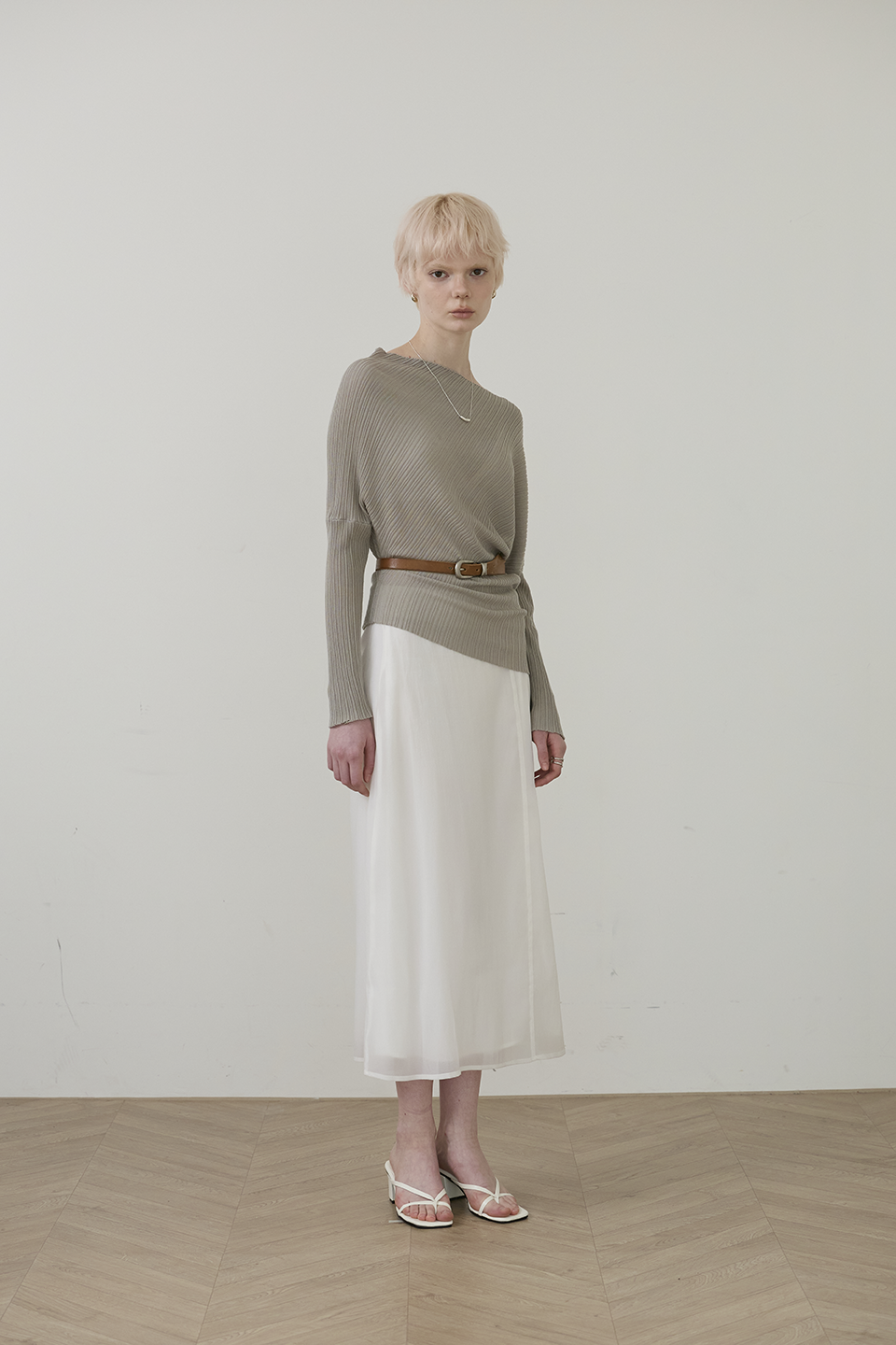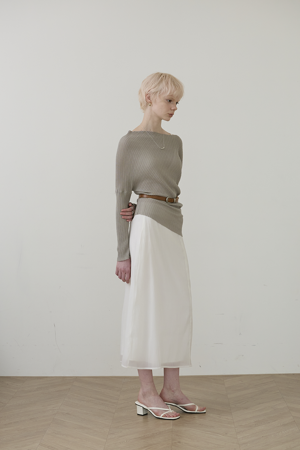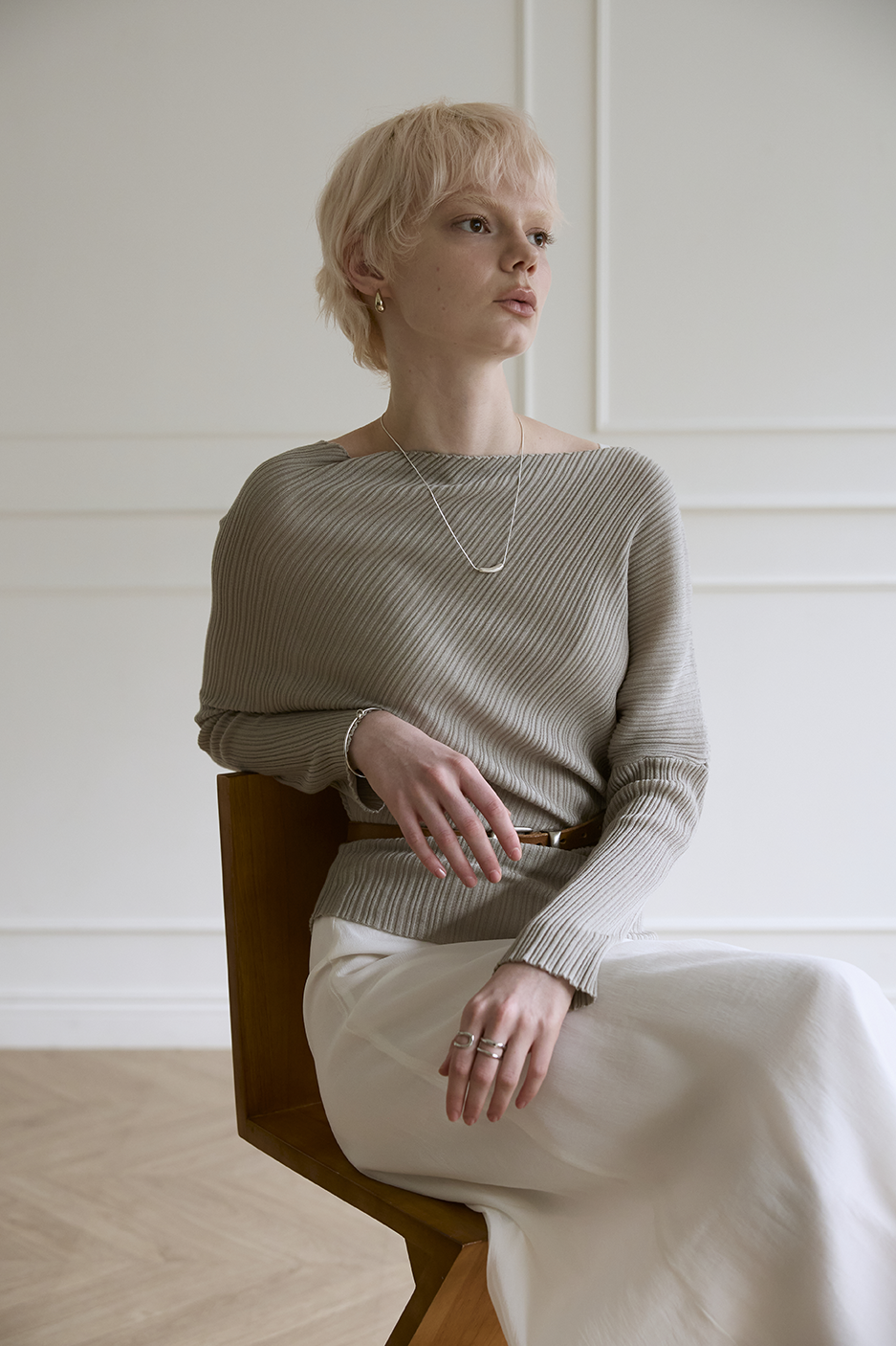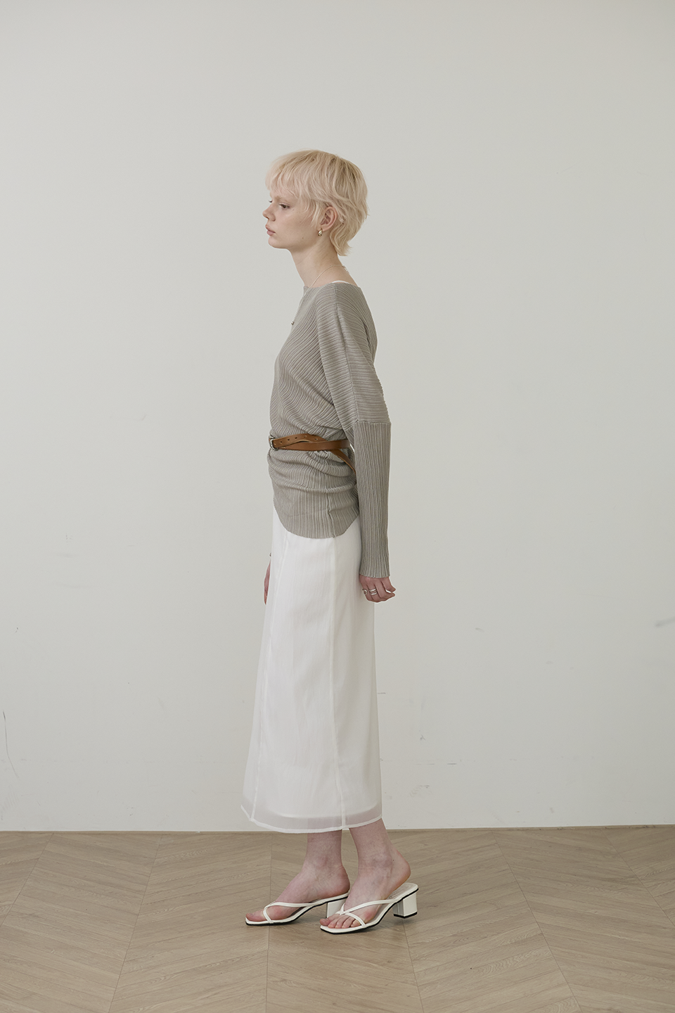柔性垂墜線條: 布料順勢貼合身形,形成不刻意的立體層次,優雅包覆身體曲線。