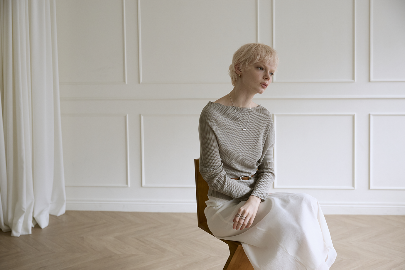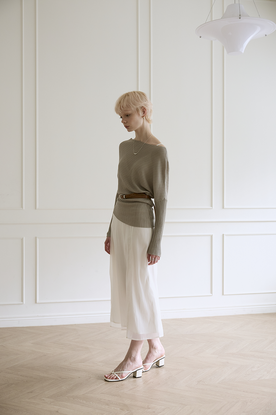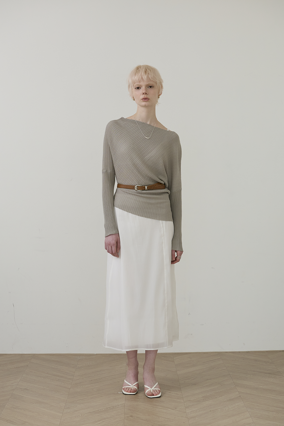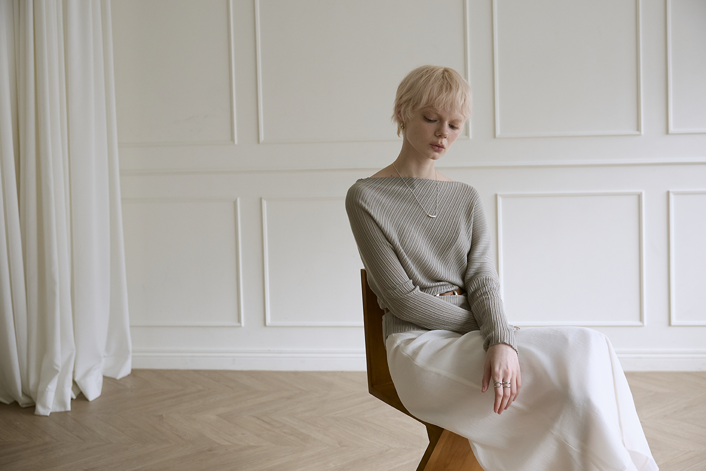 柔性垂墜線條: 布料順勢貼合身形,形成不刻意的立體層次,優雅包覆身體曲線。