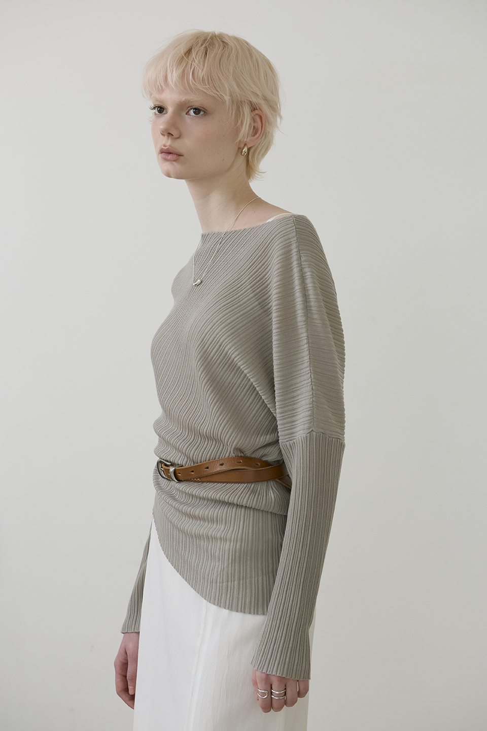 以柔和流動的線條,重新定義春夏針織上衣的結構美學!這是一款兼具「修飾比例與輕盈體感」的設計單品,透過不對稱剪裁與細緻羅紋肌理,在視覺上自然塑形、延展身型。