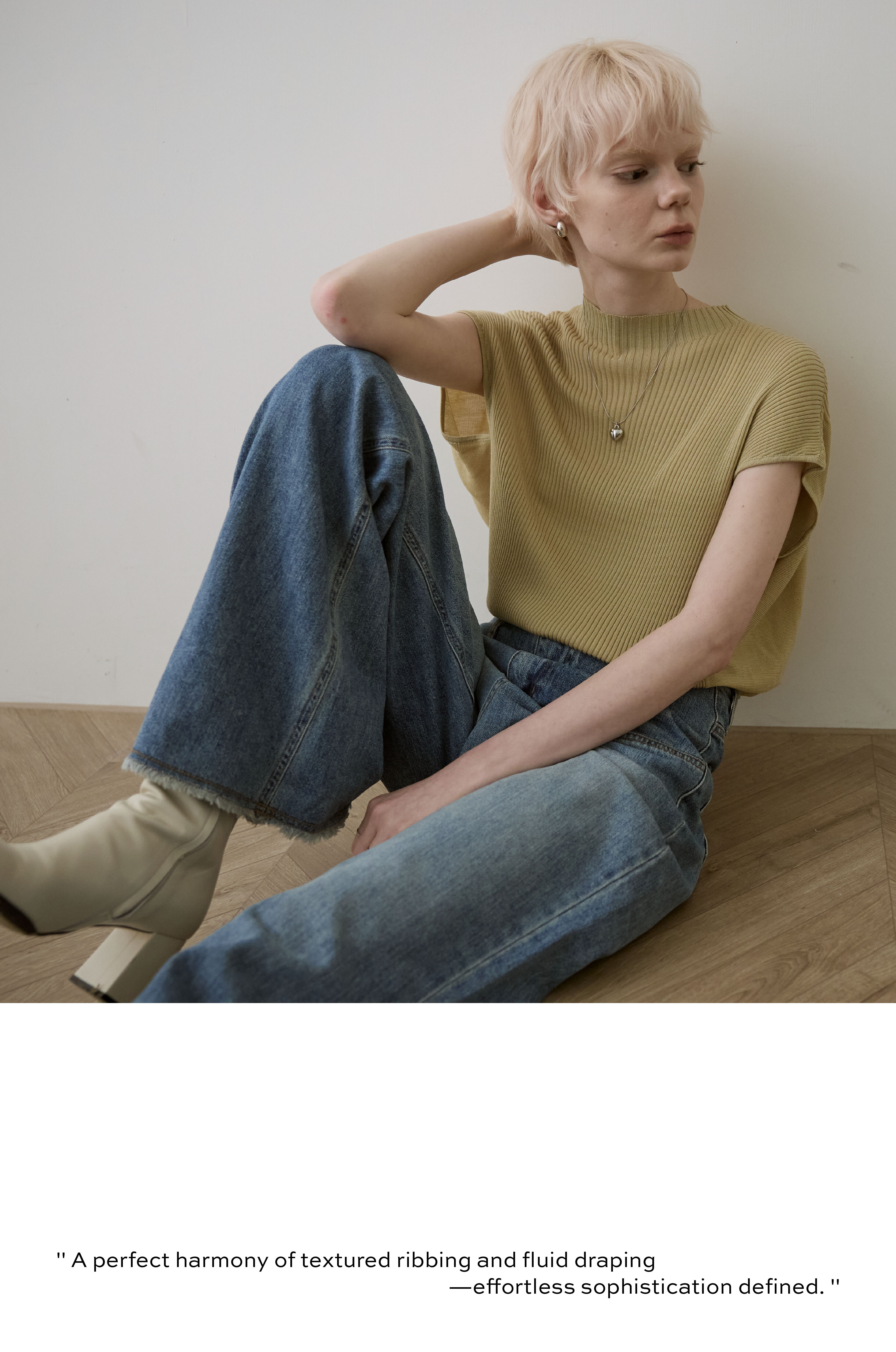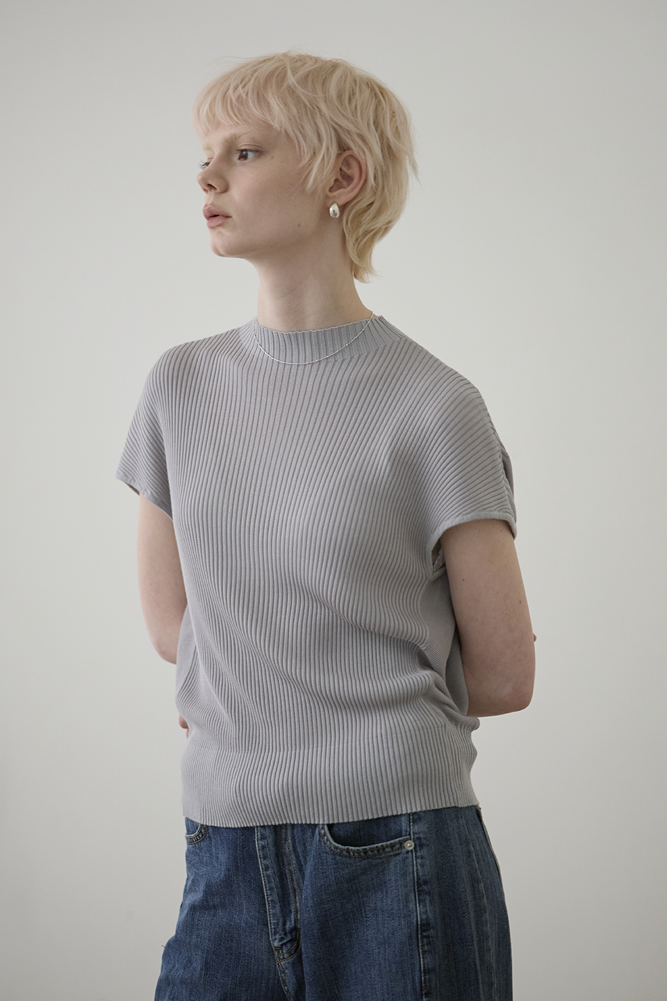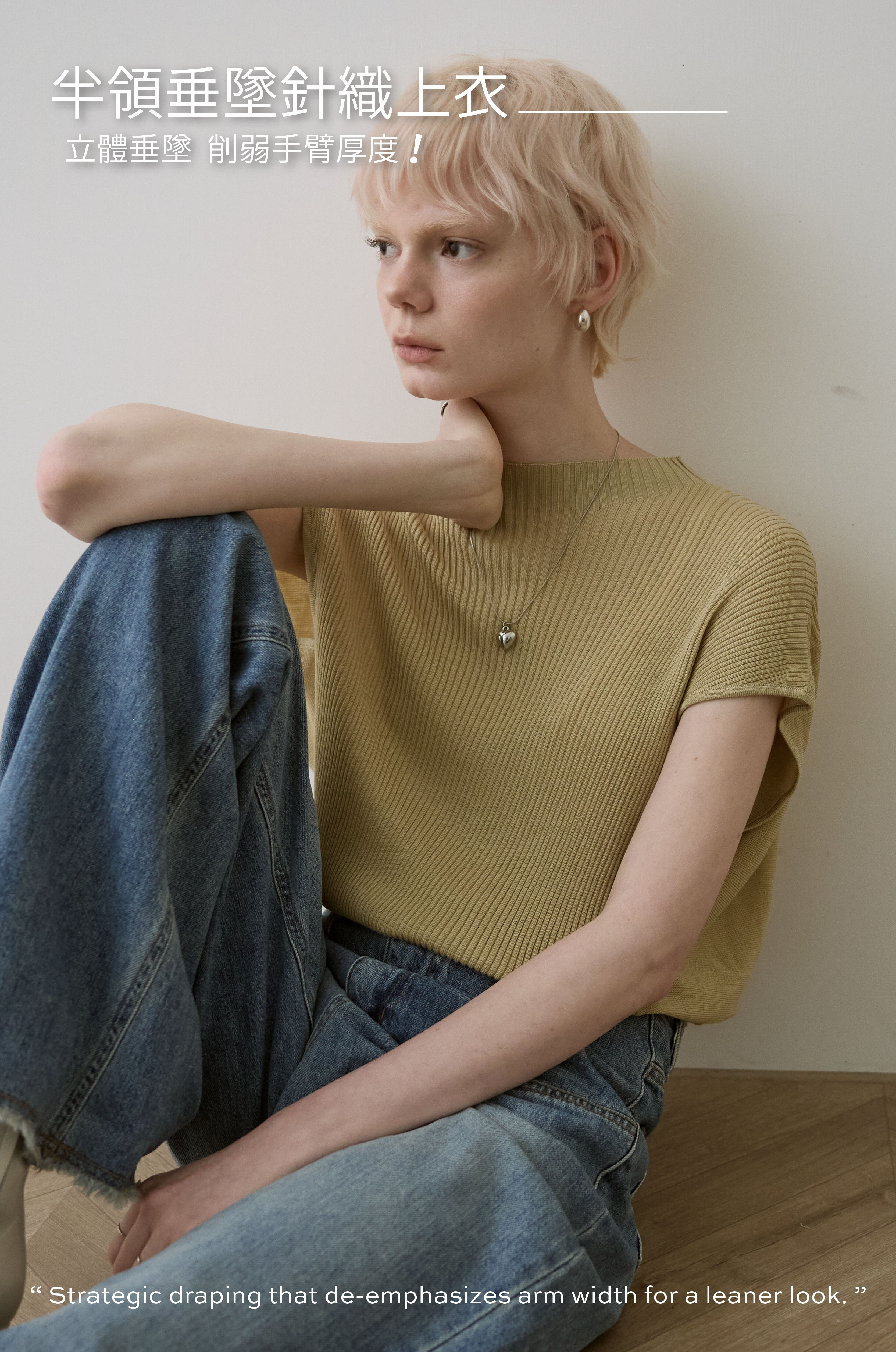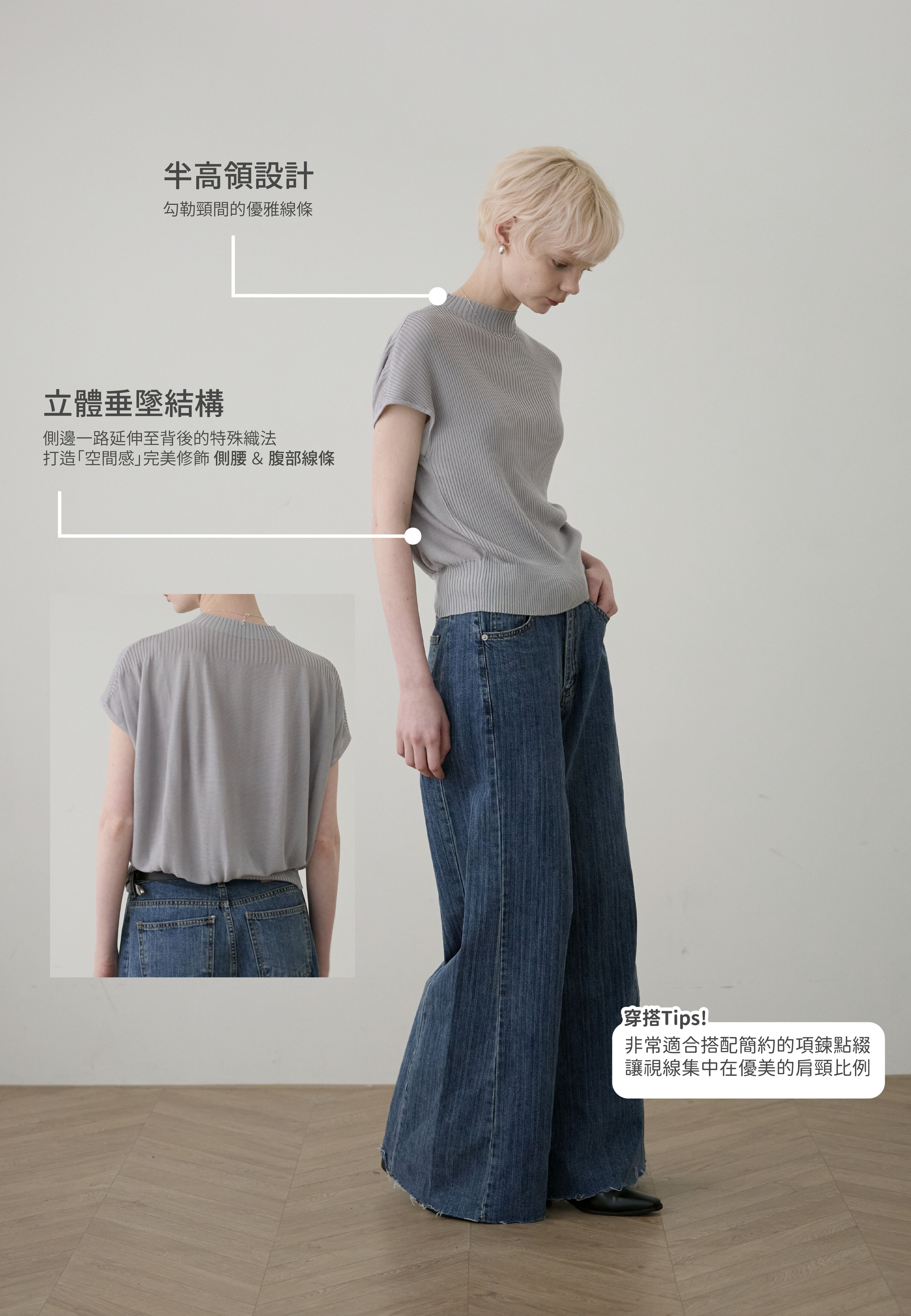 於細膩織紋中,感受一份不經意的知性從容。這款針織上衣透過半高領與側邊立體垂墜結構,在身體與布料之間創造出完美的修飾空間。它是衣櫃裡最全能的質感底色,用最輕盈的質地,雕塑出最自信的日常。