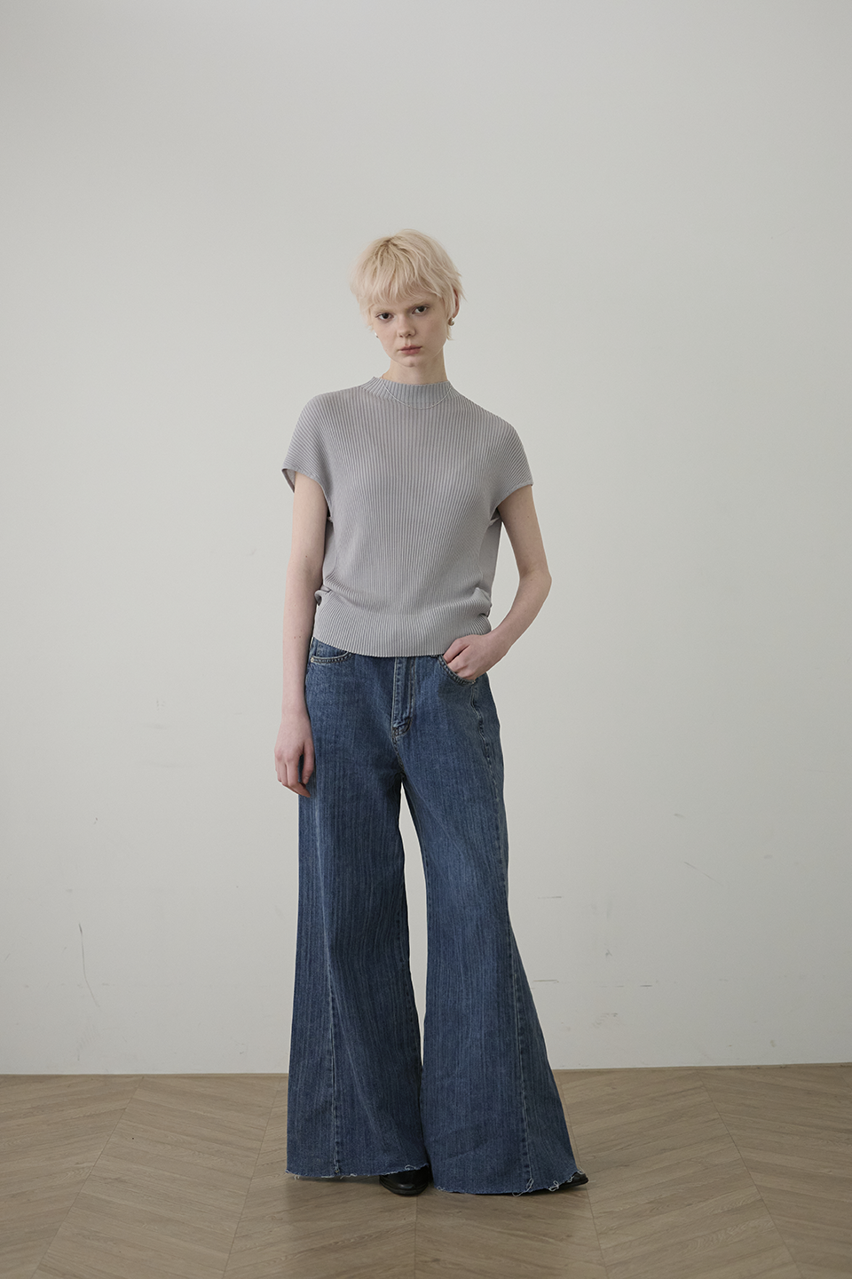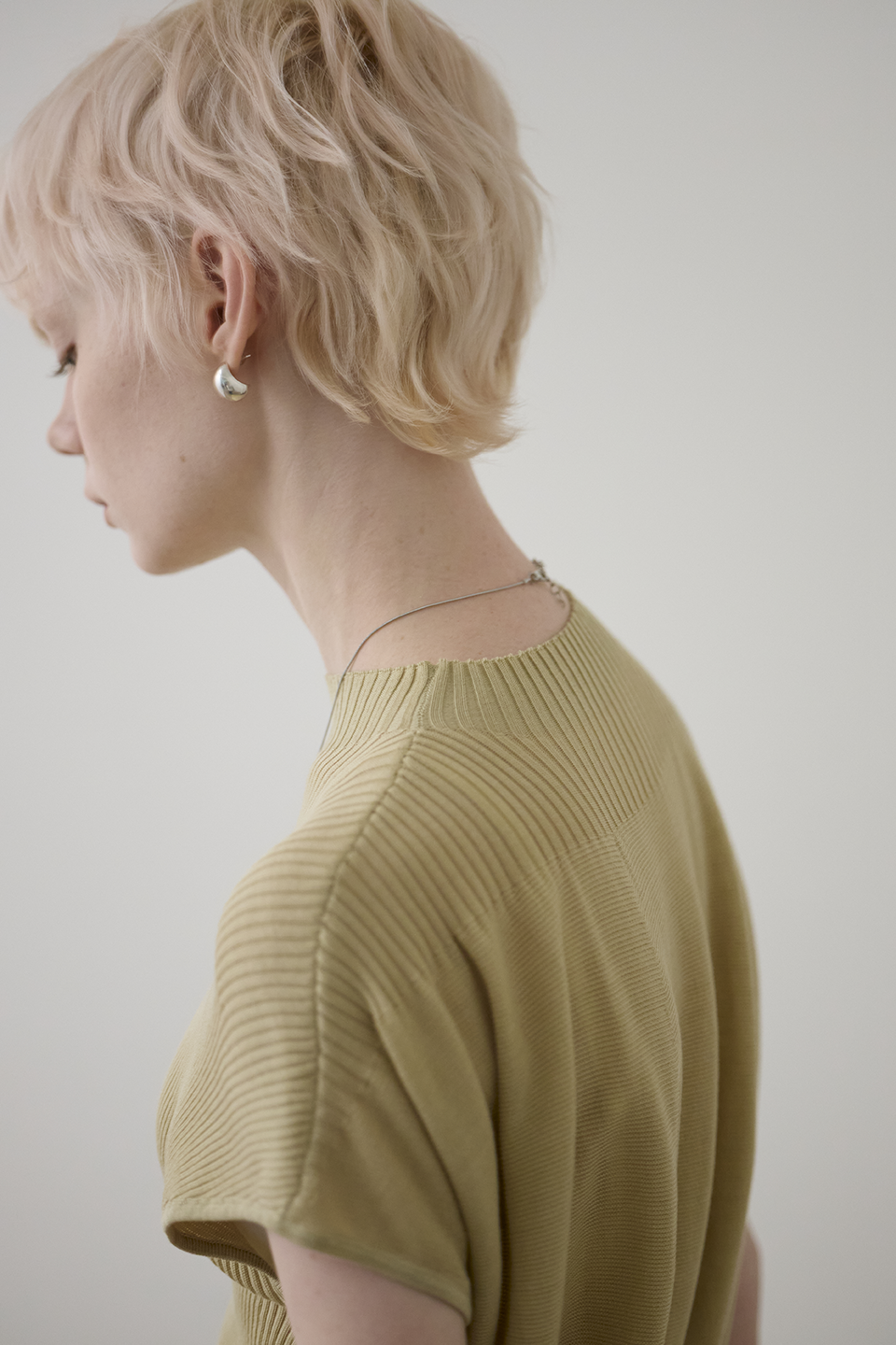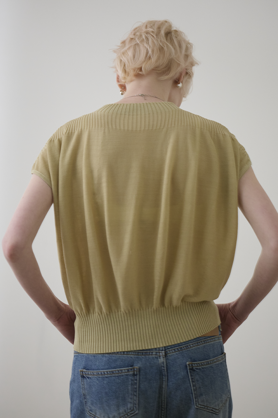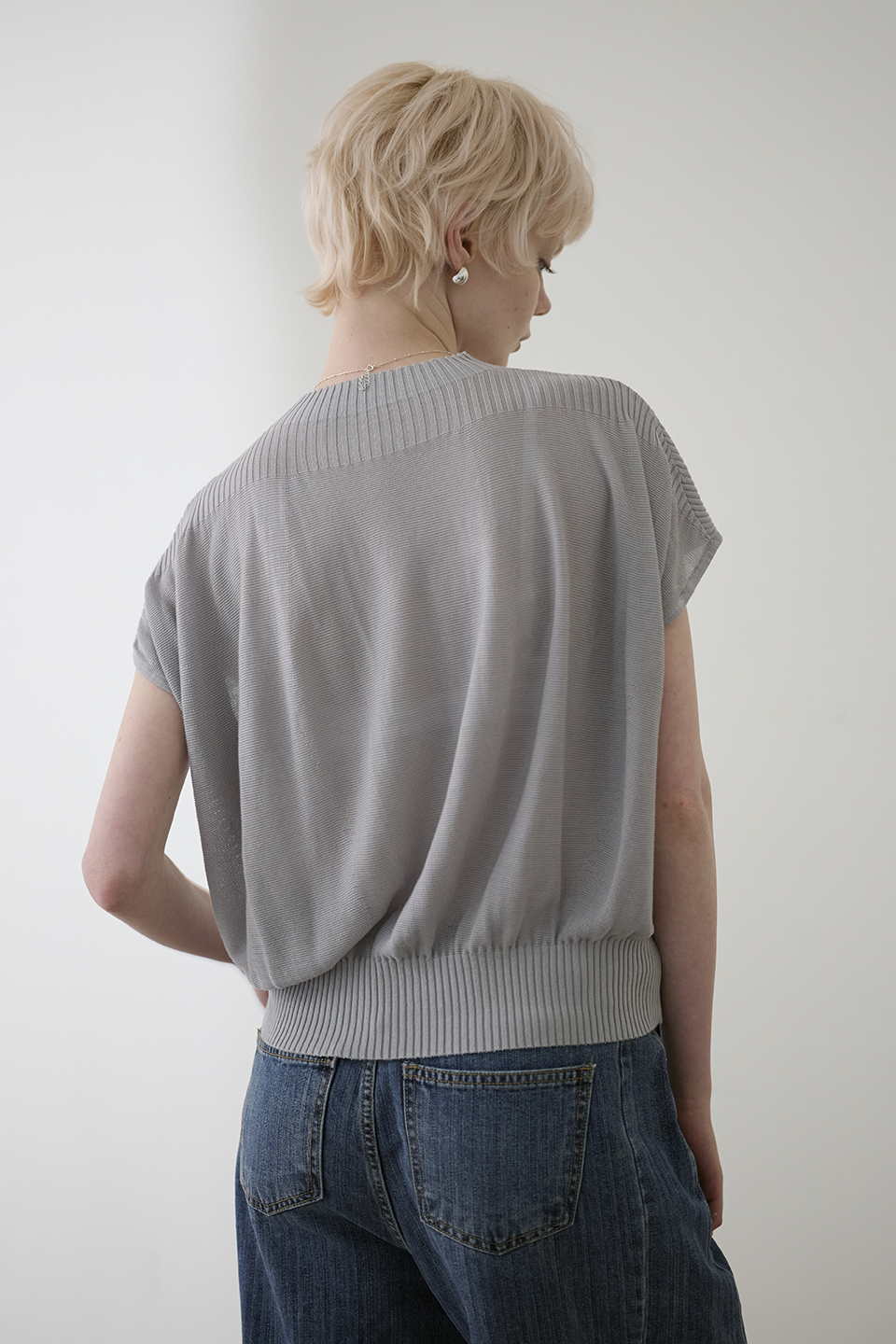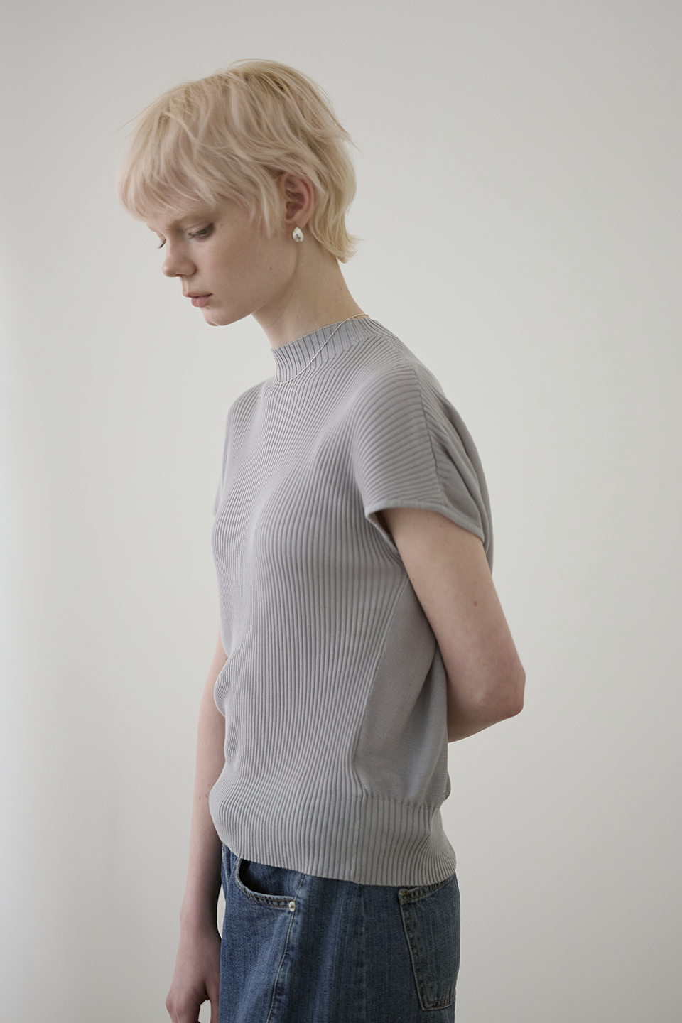 於細膩織紋中,感受一份不經意的知性從容。這款針織上衣透過半高領與側邊立體垂墜結構,在身體與布料之間創造出完美的修飾空間。它是衣櫃裡最全能的質感底色,用最輕盈的質地,雕塑出最自信的日常。