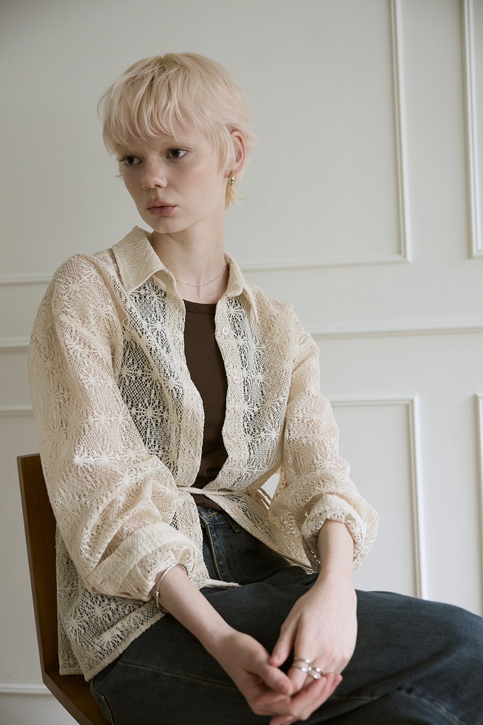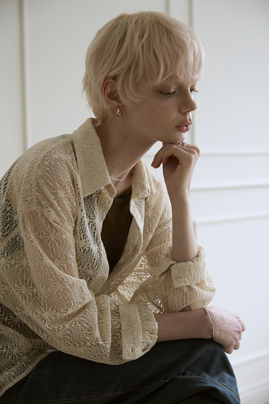 CÉRA蕾絲超柔軟蕾絲!將細膩蕾絲與結構襯衫融合,一款介於「柔美與俐落之間」的層次單品。